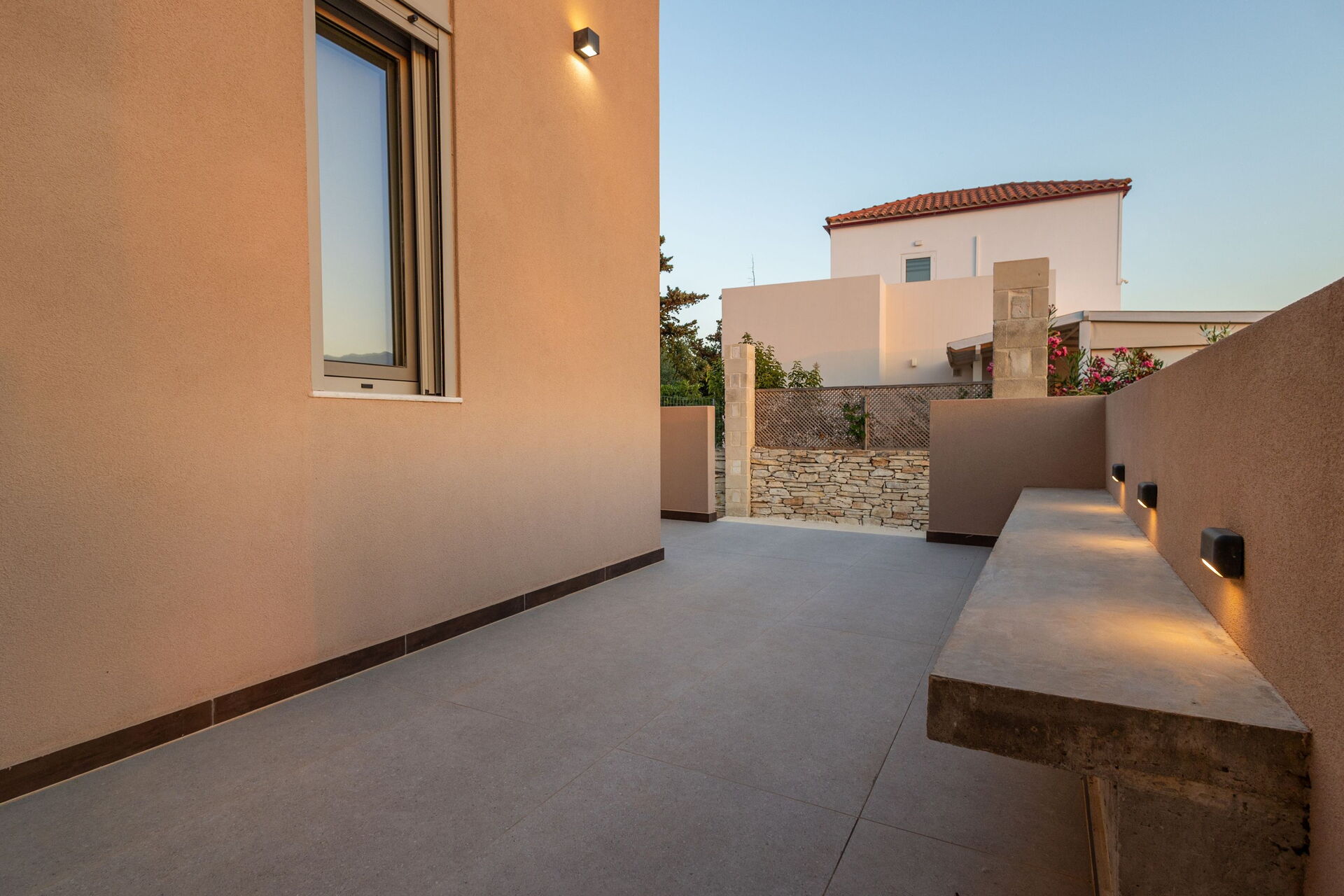 Distances : Almyrida (commerces de tous types et plage de sable) à 2 km, Vamos à 6 km, Vrisses à 10 km, Georgioupoli (commerces de tous types et plages) à 15 km, La Canée à 28 km, aéroport à 33 km, lac de Kournas à 20 km, Réthymnon à 39 km, Héraklion à 119 km, le célèbre Palais de Cnossos à 120 km.