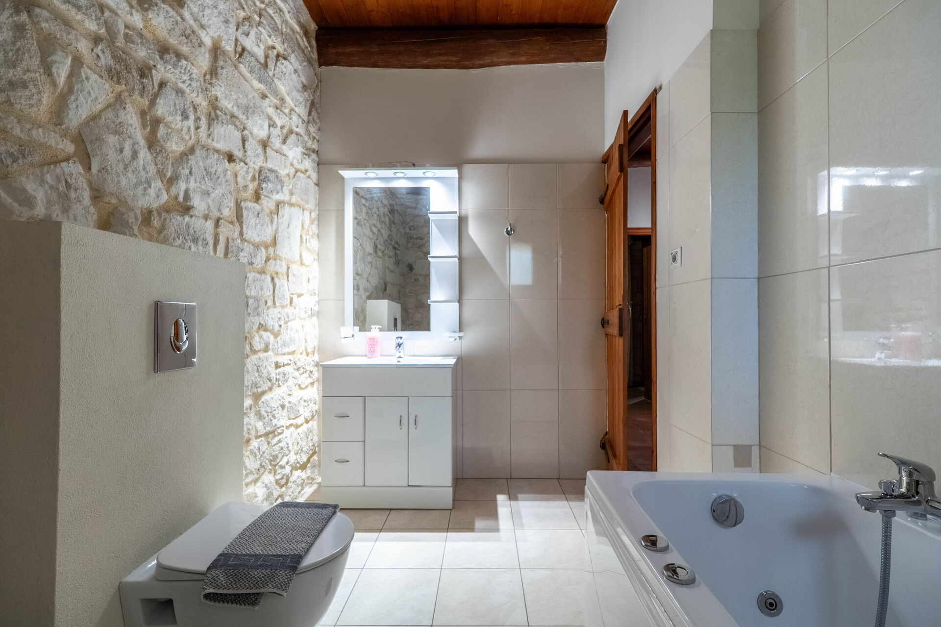 Fantastisk hus med alle faciliteter. Dejlig pool og have, 3 soveværelser, 3 badeværelser, alting skinnende rent. Beliggenheden er god, tæt på lille landsby som har alt hvad man har brug for, købmand, taverna og is. Sødt værtspar, der havde sørget for velkomstpakke med brød, mælk, frugt mm. Rengøring under opholdet. Alt perfekt til en god ferie.