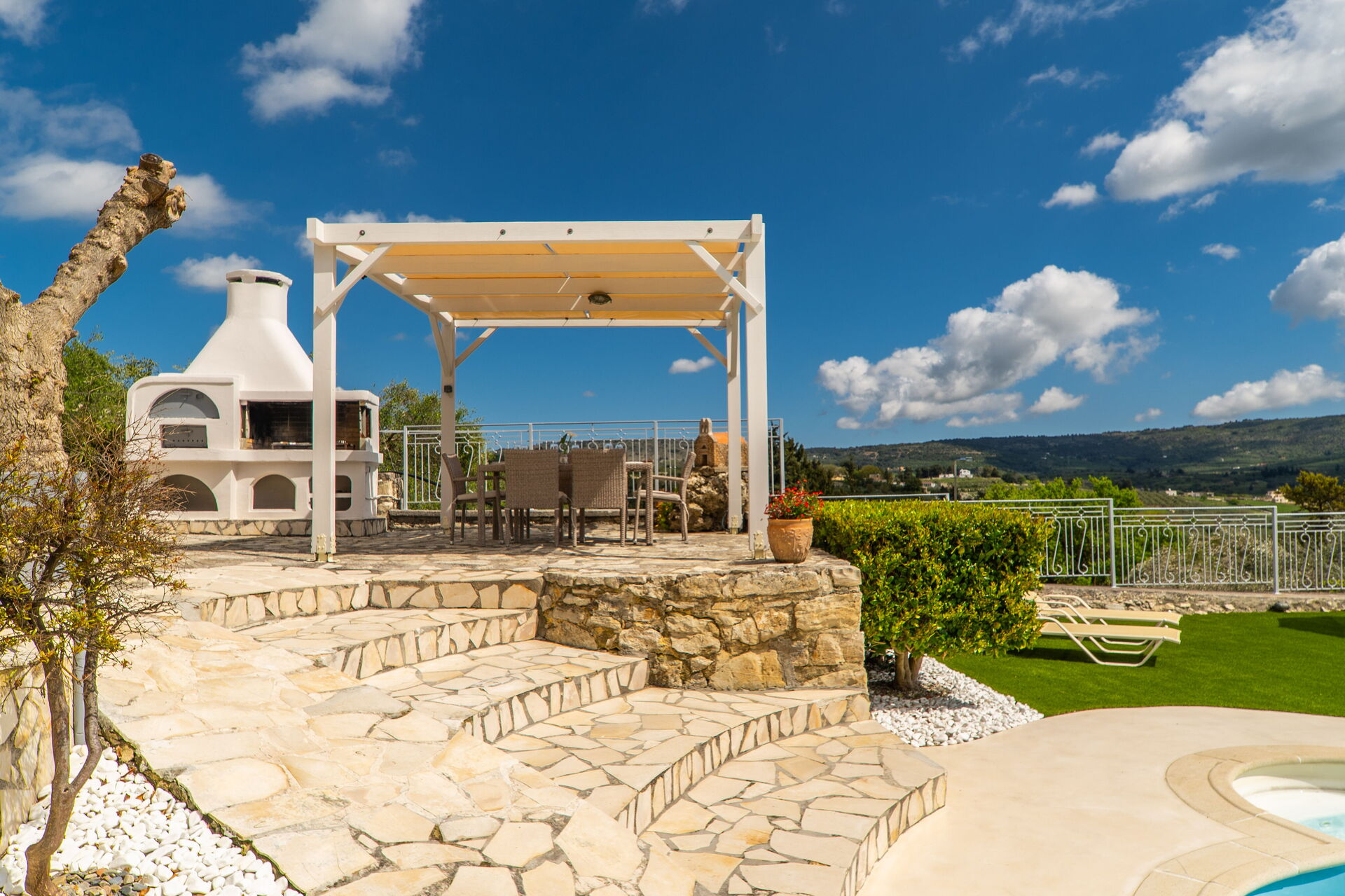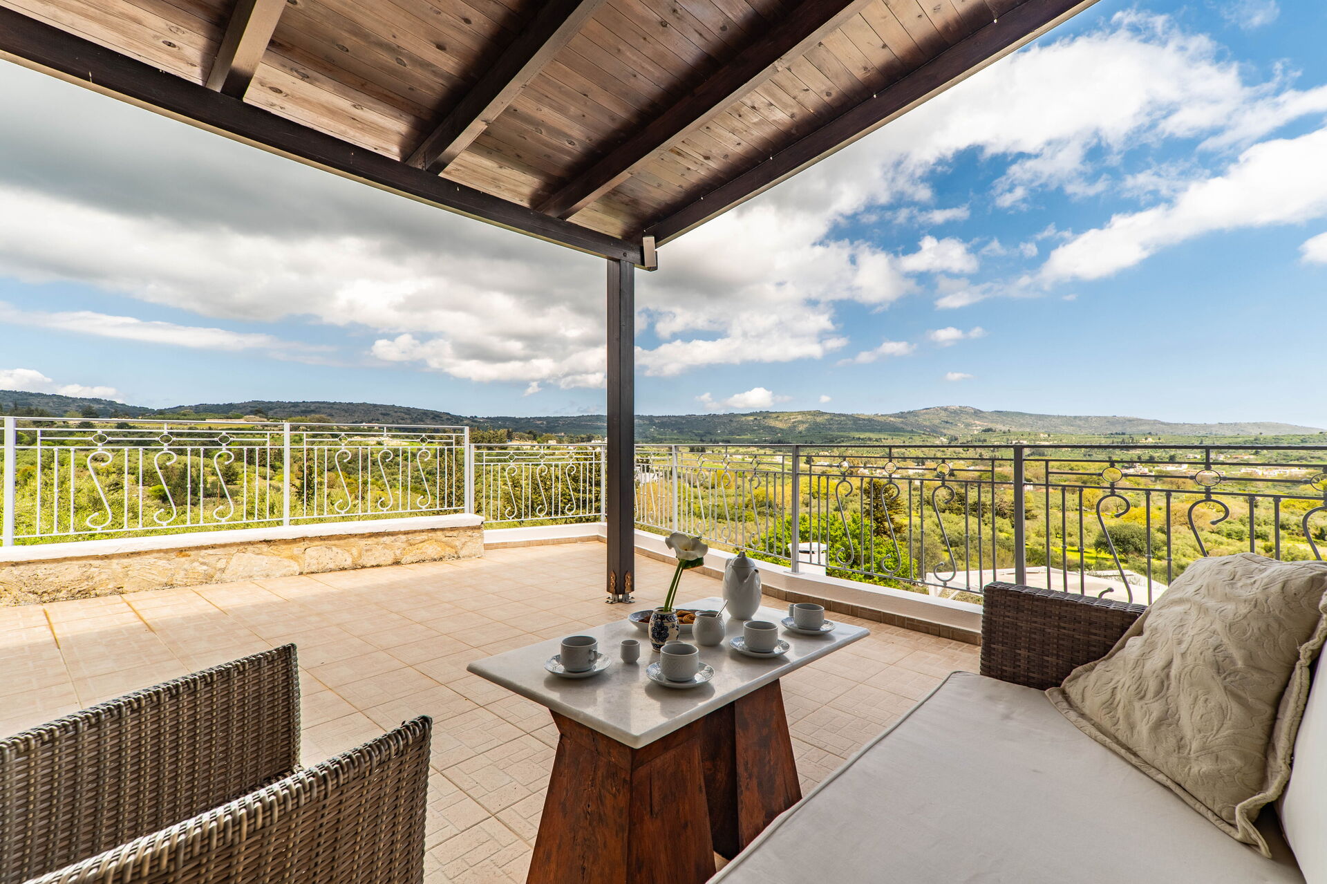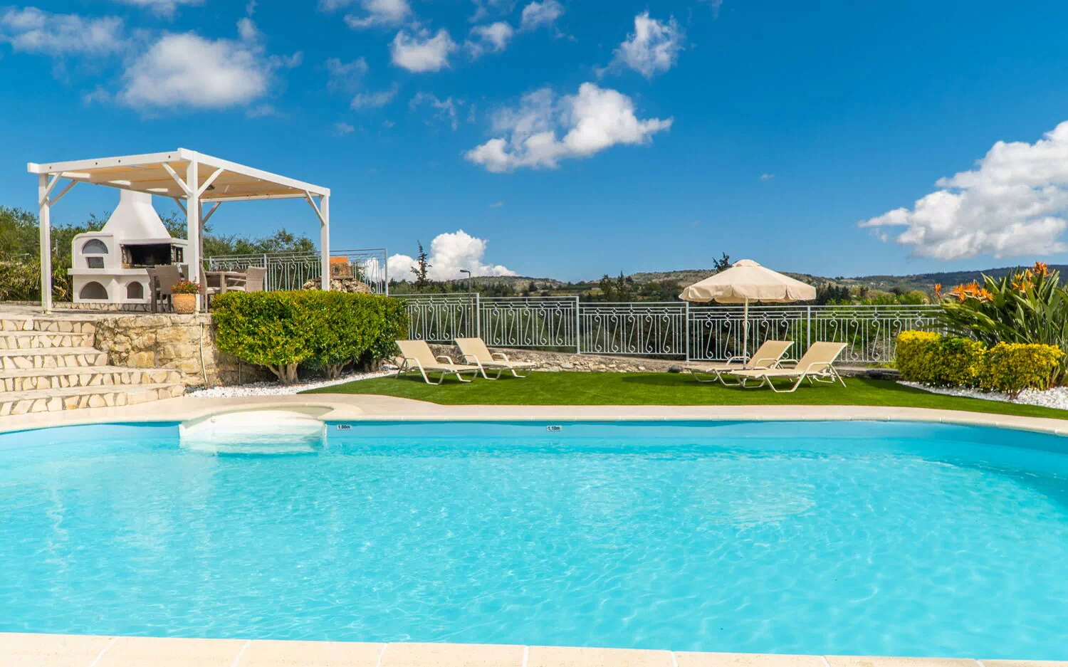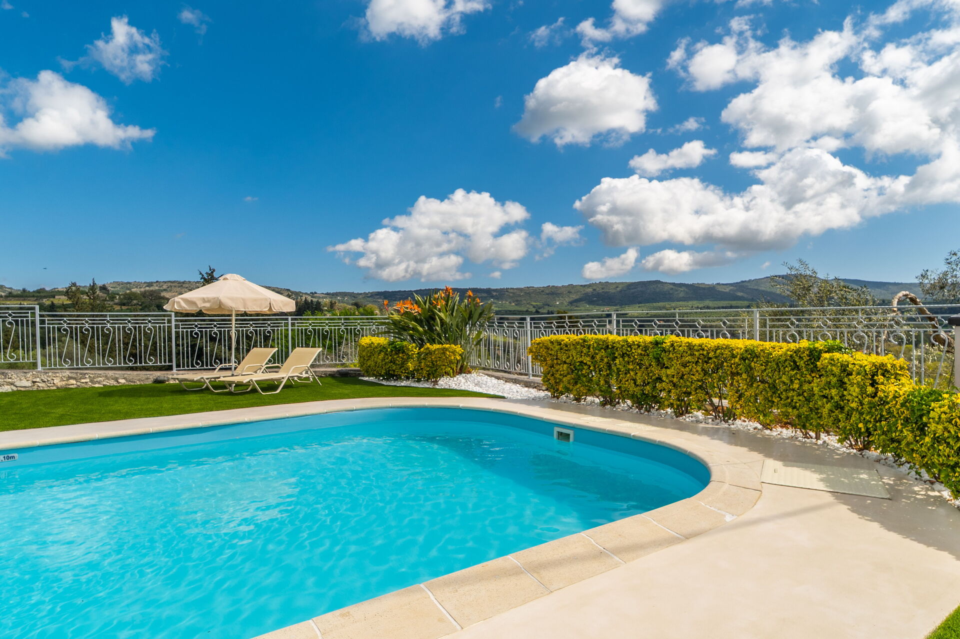 La piscine offre une vue sur la campagne et les collines environnantes: les oliveraies, les cyprès et les arbustes du maquis méditerranéen seront le cadre idéal pour vivre des moments inoubliables sous le soleil de la Grèce.
