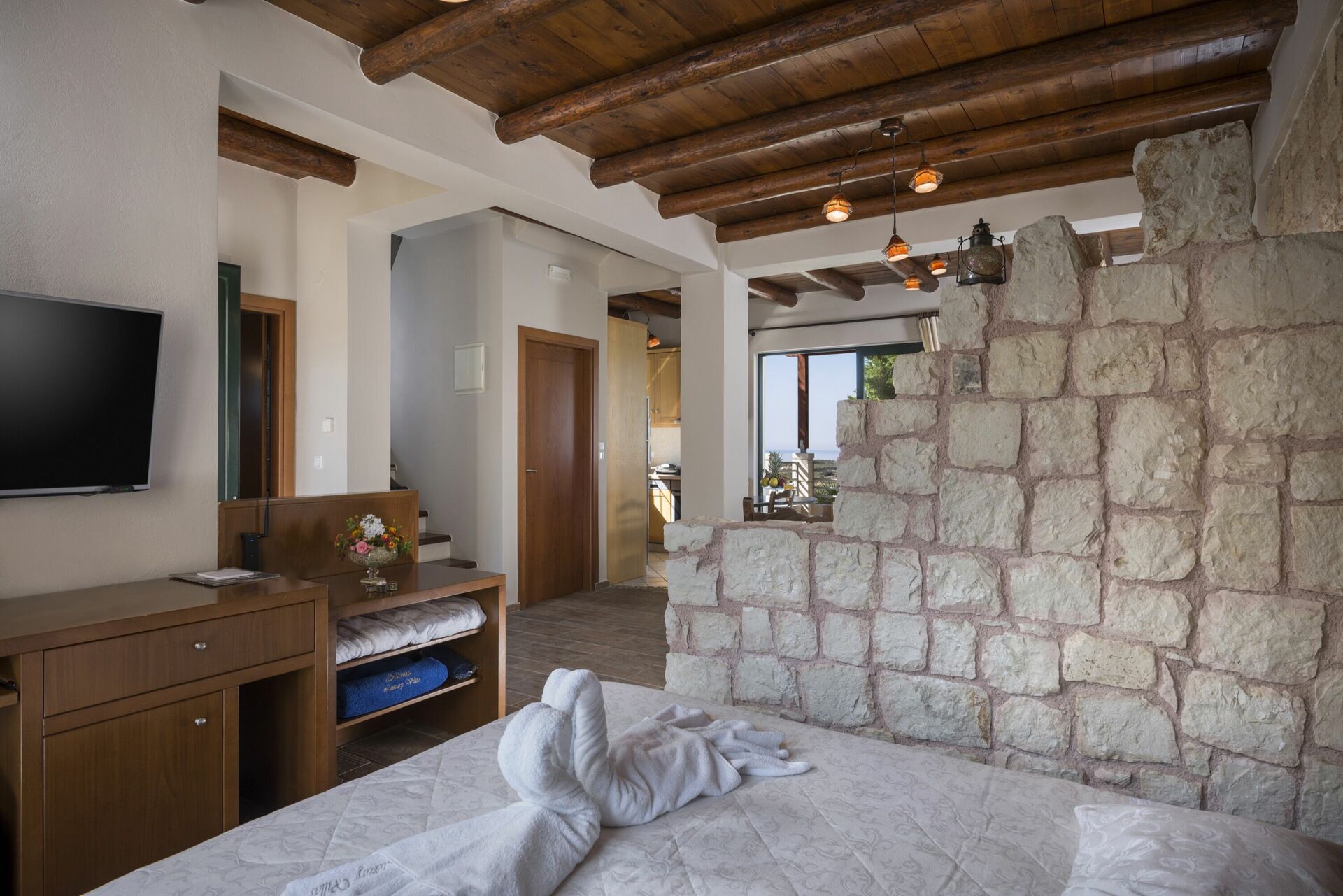 Villa Myrtia dispose de 2 chambres à coucher et peut accueillir jusqu'à 7 personnes dans un cadre confortable et panoramique. La villa se développe sur 2 niveaux avec accès sur de grande vérandas idéales pour le petit déjeuner ou admirer le paysage avec vue sur la mer.