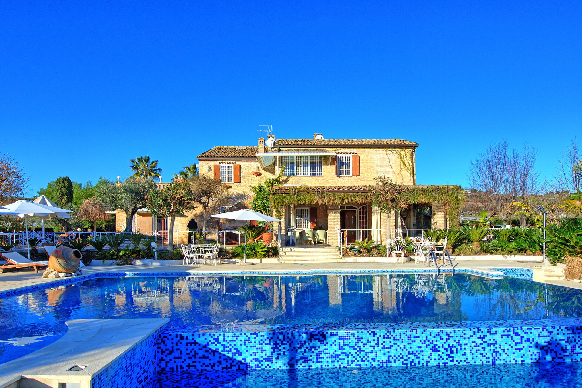 Io mio marito e quattro amici oltre al nostro bellissimo ed enorme cane abbiamo passato in questa meravigliosa Villa in Abruzzo, a due passi dal mare, una fantastica settimana di relax. La piscina è enorme e ben progettata. Il giardino curato e pieno di piante. Gli ambienti esterni vari e conviviali. Abbiamo utilizzato anche il camino a legna esterno e il bbq a gas. Gli spazi interni sono di grandi dimensioni e tutti climatizzati. Le attrezzature sono variegate, dai materassini per la piscina alle affettatrici al doppio frigorifero.
