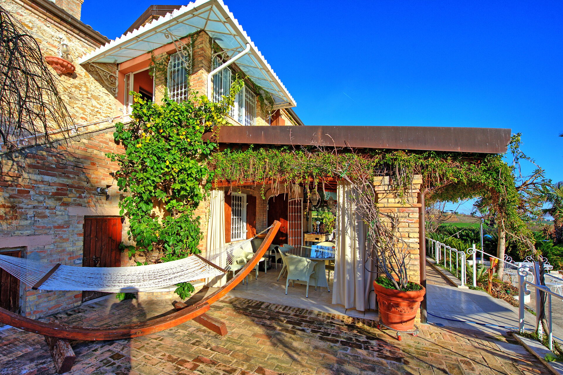 Villa Vittoria est une villa indépendante confortable et accueillante située à la frontière entre les Abruzzes et les Marches: étant située à seulement 7 km de la mer, vous pourrez partir à la découverte des beautés de ces deux régions italiennes peu connues et pourtant extrêmement fascinantes. Grâce à ses 4 chambres, elle peut accueillir confortablement jusqu’à 8/10 personnes et chaque pièce, aussi bien intérieure qu’extérieure, est conçue pour passer d’agréables vacances en compagnie: les grandes salles communes et les beaux espaces extérieurs vous permettront de vous détendre et de profiter de la beauté de cet endroit.