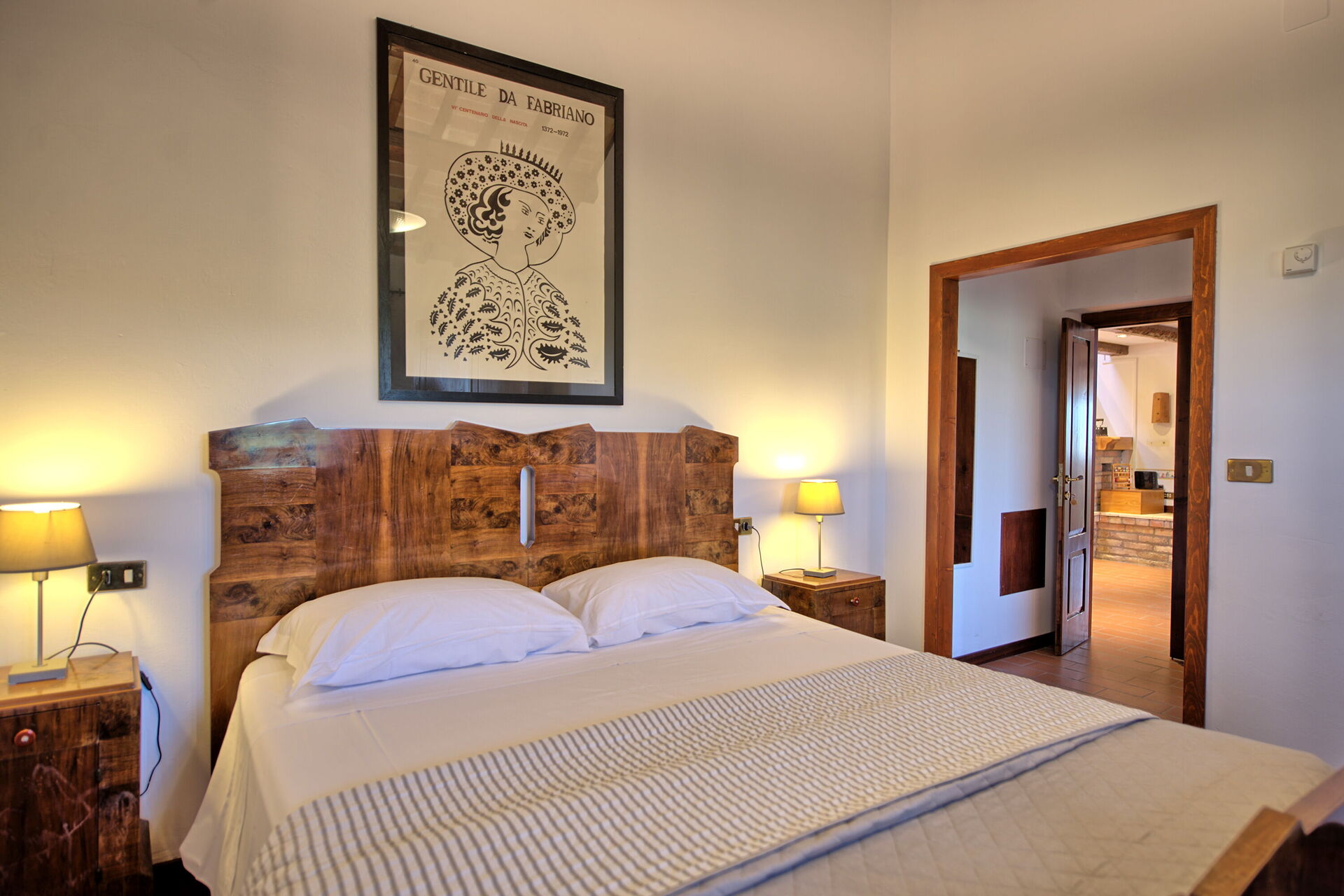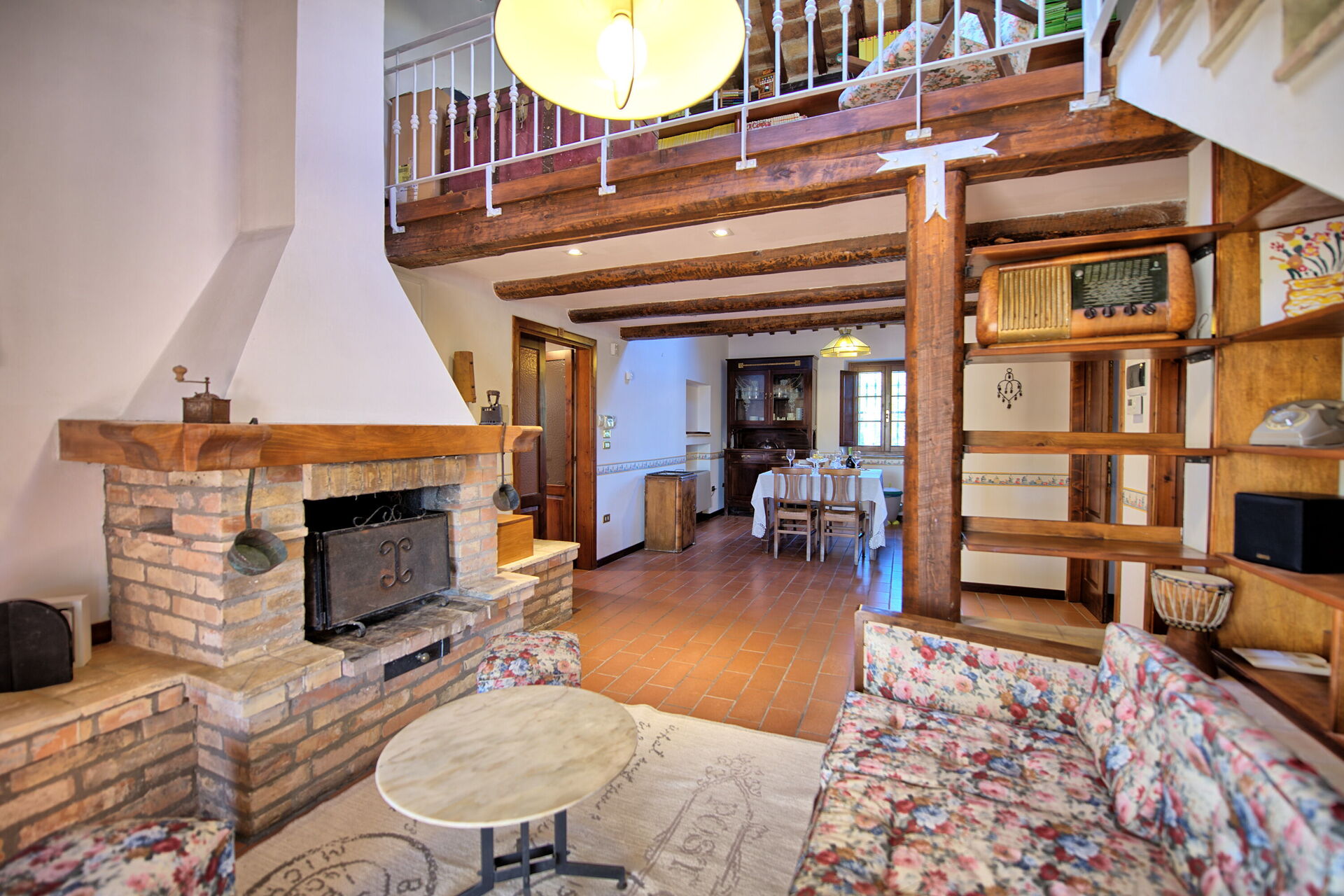 Premier étage (également accessible depuis l’extérieur): cuisine avec coin repas avec cheminée et accès à la mezzanine avec séjour, 2 chambres doubles chacune avec salle de bain privée avec douche, chambre double, salle de bain avec douche, chambre avec canapé-lit double et lit double situé dans la mezzanine. Depuis les deux dernières chambres se trouve un accès à une terrasse commune panoramique.