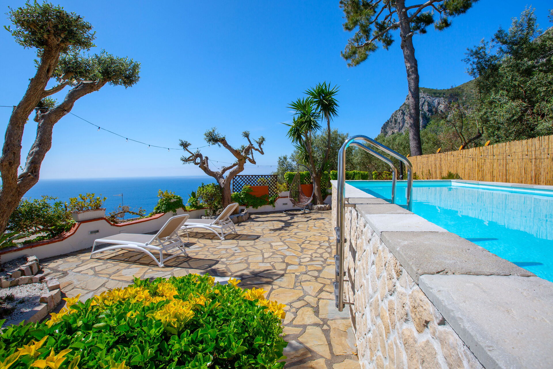 Comme toutes les maisons de la Côte, elle se trouve à différents niveaux et de chacun niveau, vous pouvez admirer une vue fantastique: un espace extérieur bien soigné (composé de terrasses pavées) dispose d'une piscine à l'usage exclusif des hôtes et d'espaces équipés pour prendre des bains de soleil et manger en plein air.