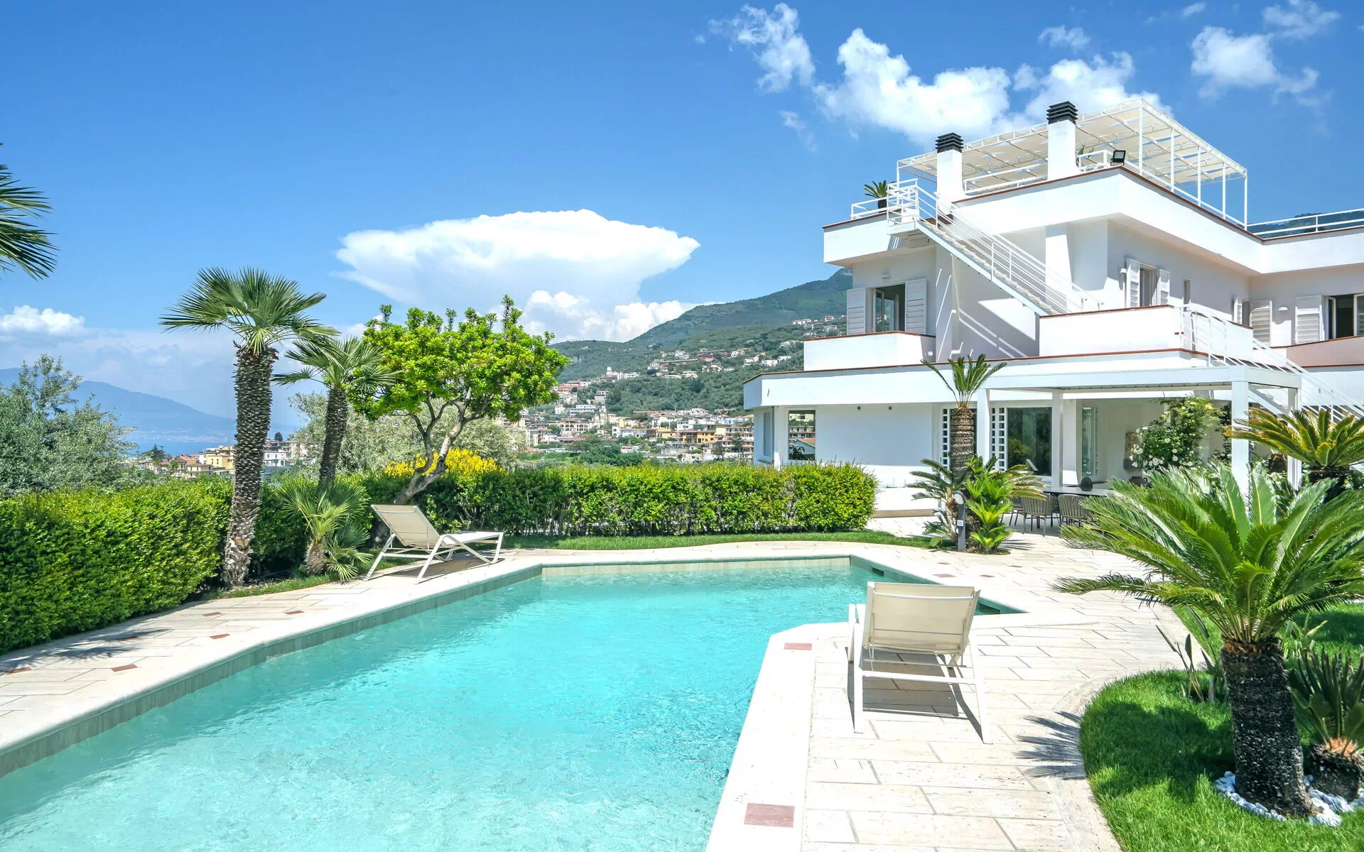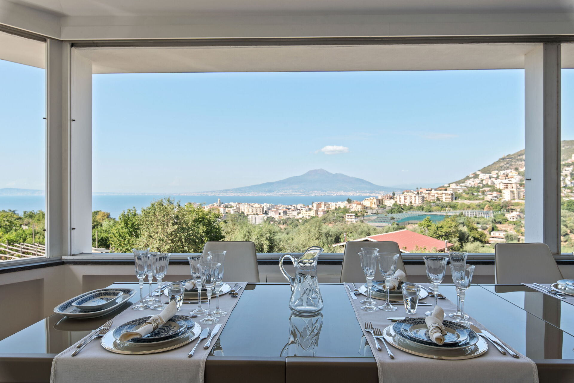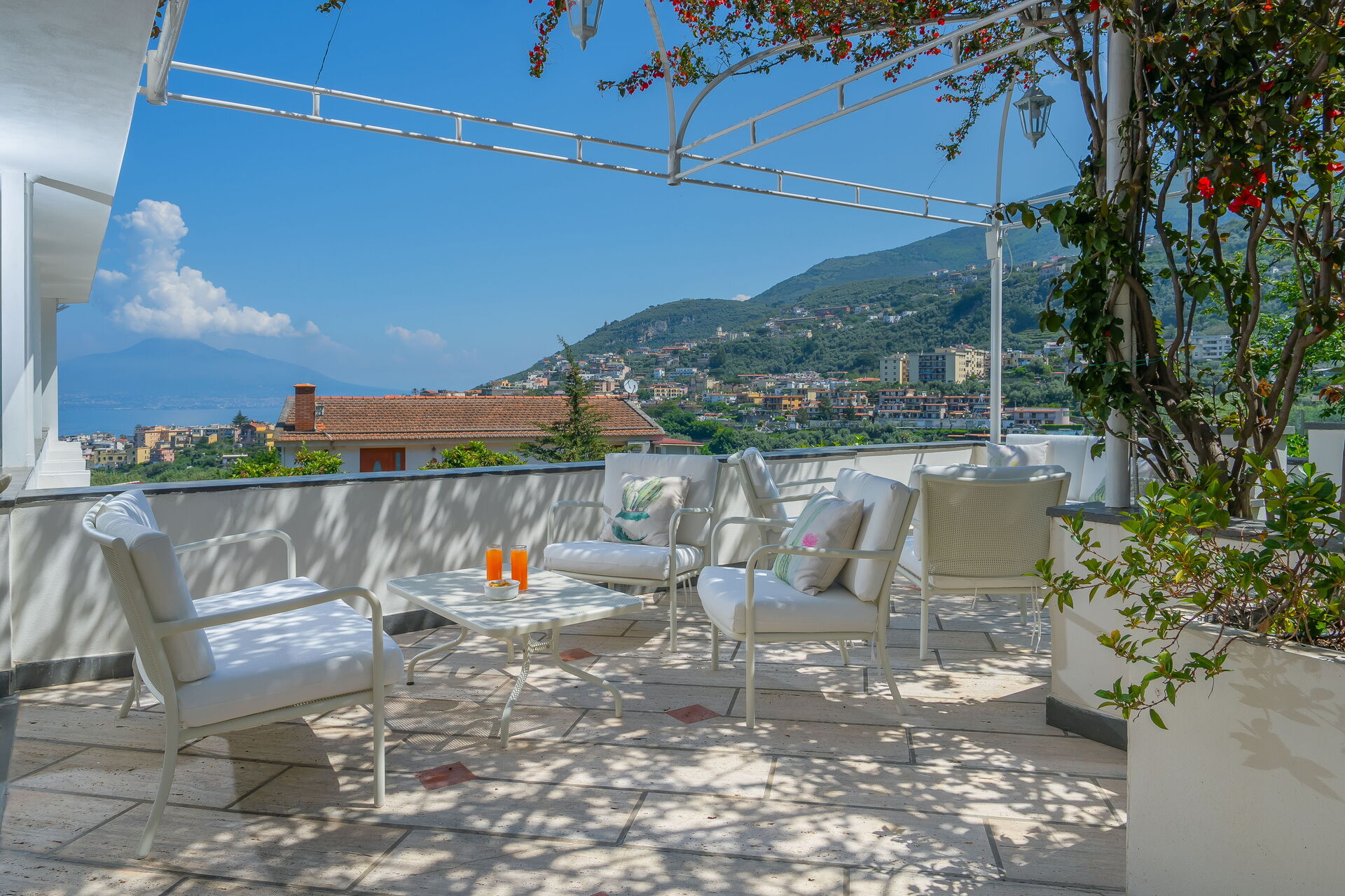 Depuis cette importante villa à louer sur la côte, vous pourrez admirer le golfe de Naples, le splendide Vésuve et être à proximité de certains des endroits les plus beaux et les plus célèbres du monde tels que Sorrente, Positano et Amalfi. La ville de Seano, avec ses magasins variés, est à moins d'un kilomètre, tout comme la mer et la liaison ferroviaire très pratique appelée "Circumvesuviana" qui relie Naples à Sorrente.