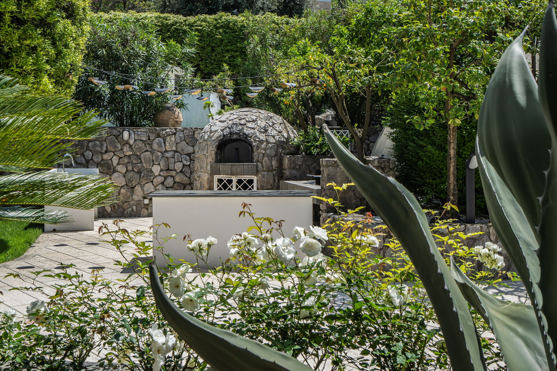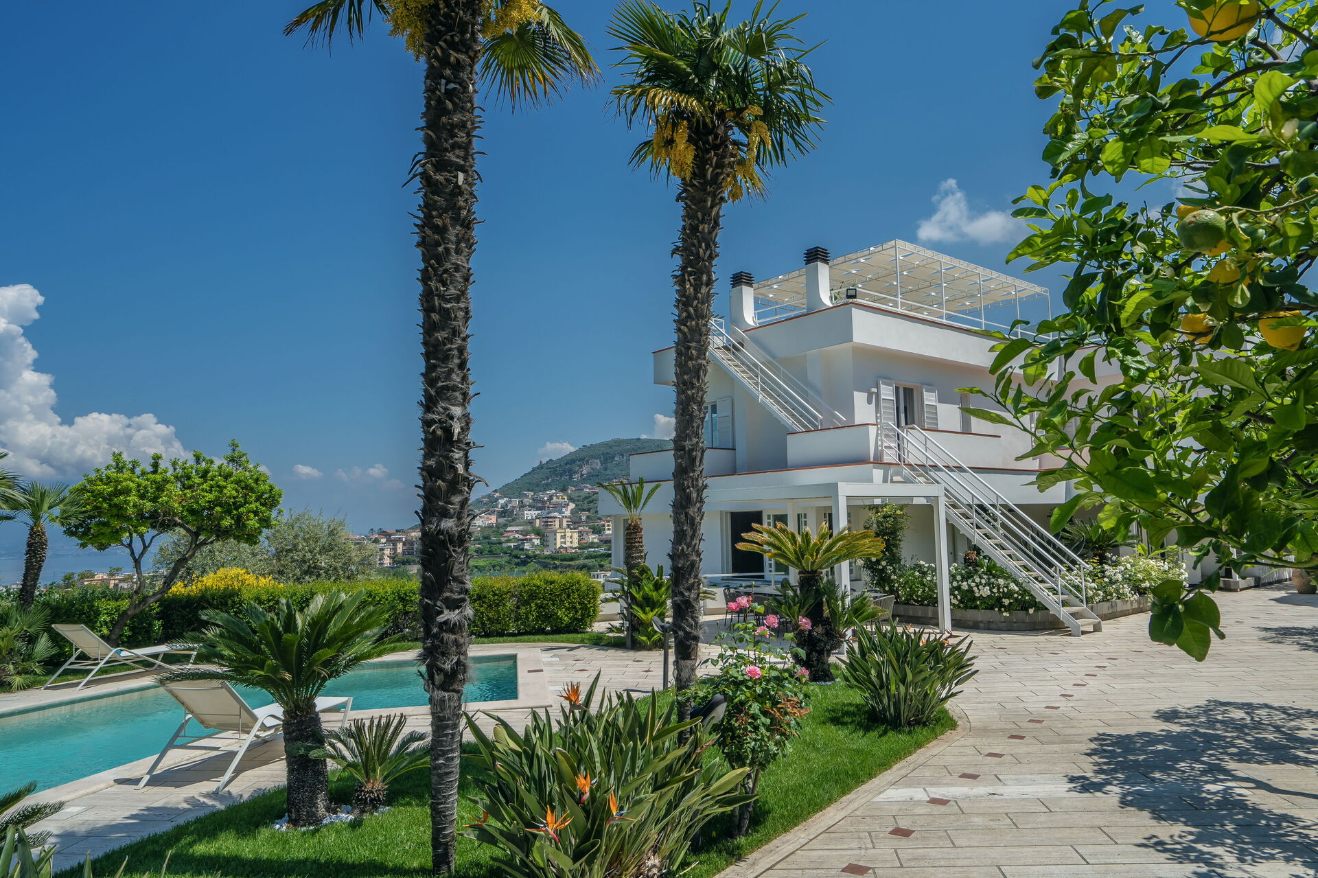 L'accès à Villa Antonietta se fait par un jardin luxuriant rempli de citronniers, de pamplemousses, de bananiers et de palmiers.