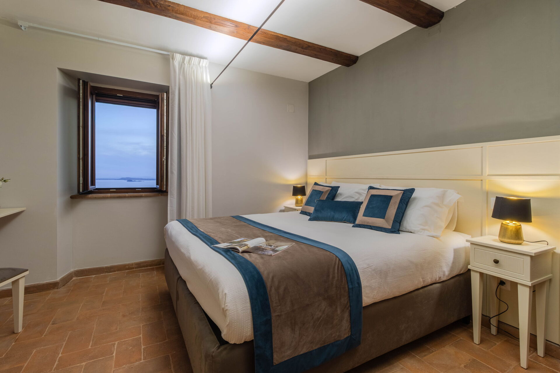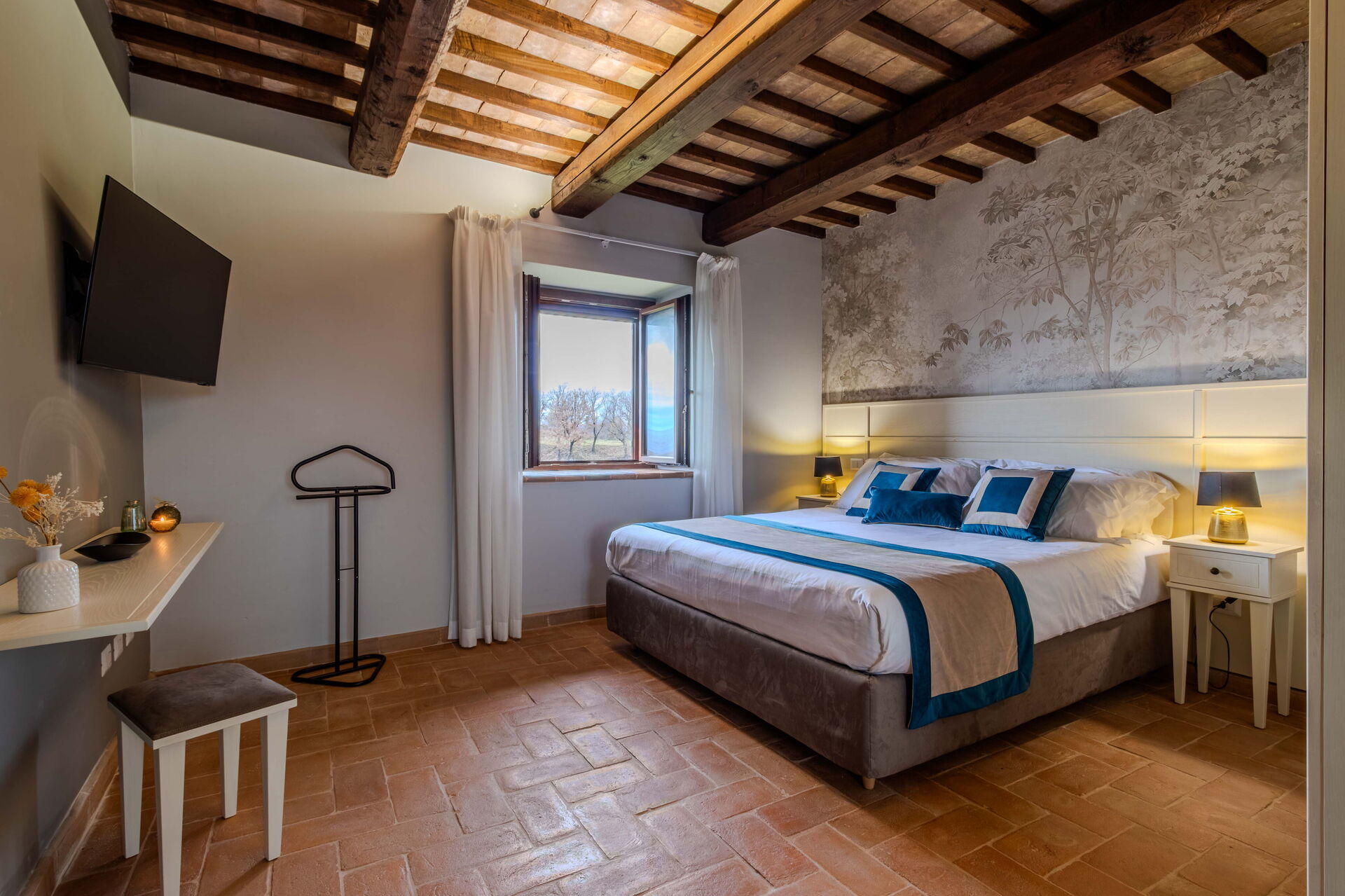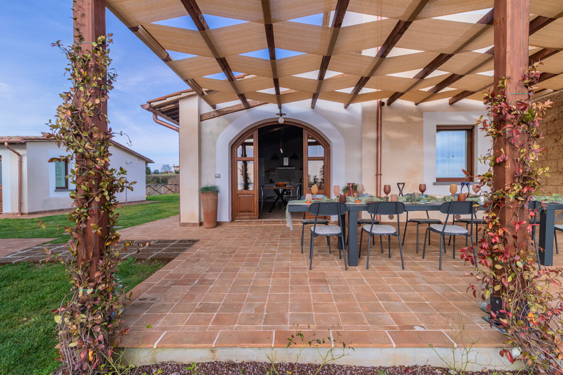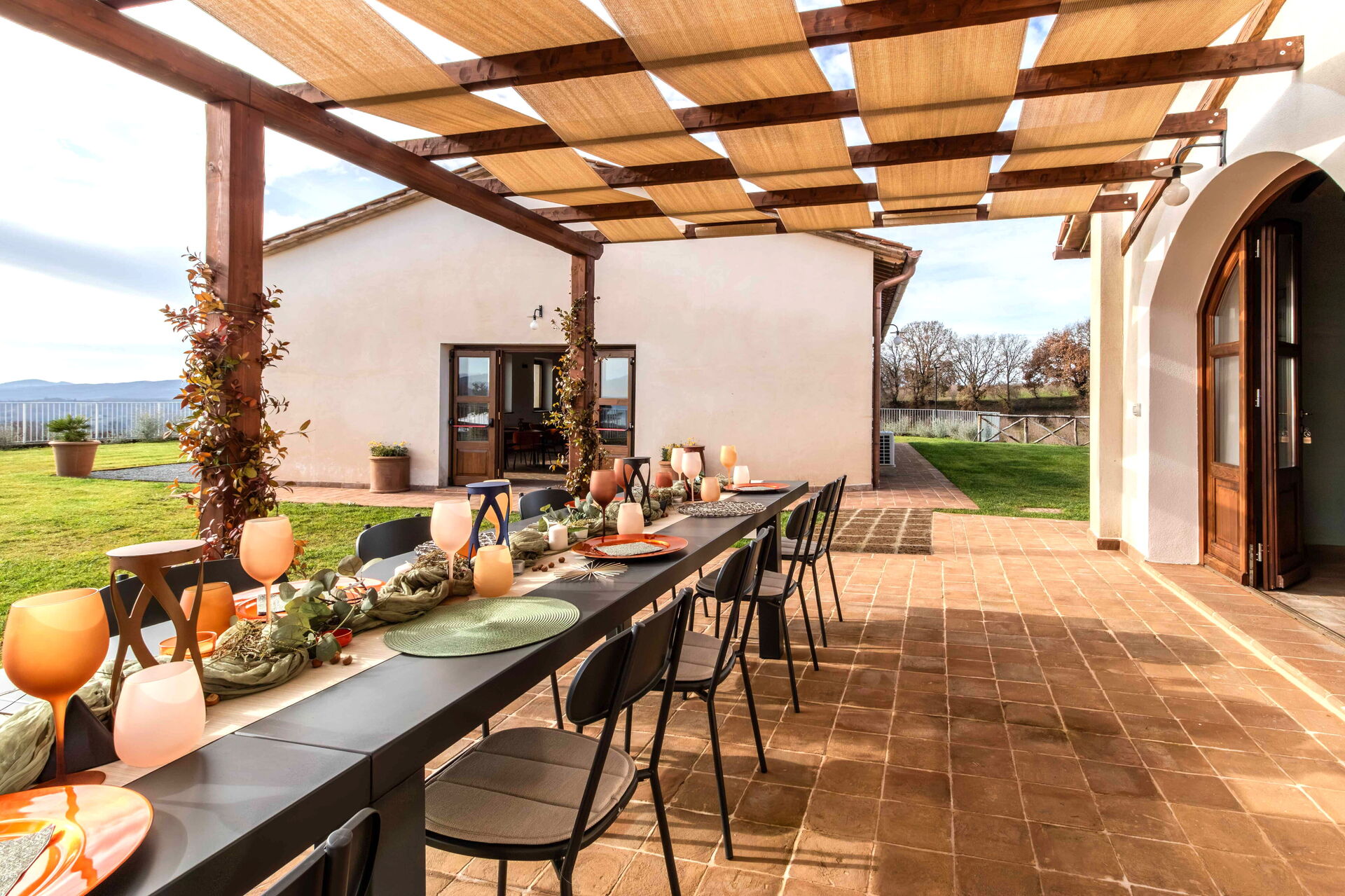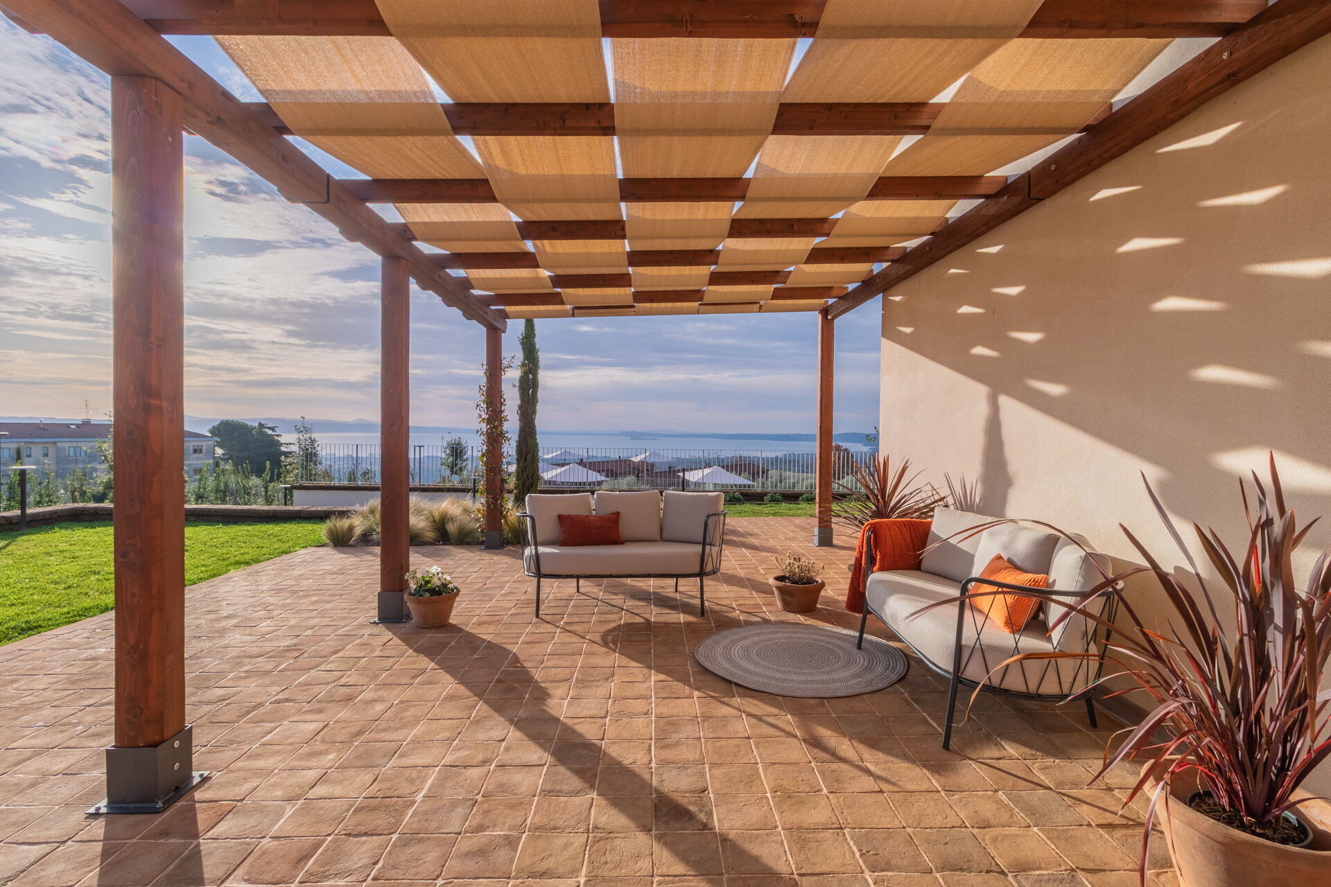 À l’extérieur, Tenuta Poggio Guiano dispose d’un jardin soigneusement entretenu dont la superficie totale est d’environ 2.000 m², accueillant une très belle piscine avec vue sur le lac de Bolsena et réservée à l’usage exclusif des hôtes: la piscine se trouve en position panoramique et avec la véranda équipée pour les repas en plein air elle constitue l’endroit idéal pour passer les journées estivales ensoleillées, se détendre et se rafraîchir en compagnie d’amis et de la famille.