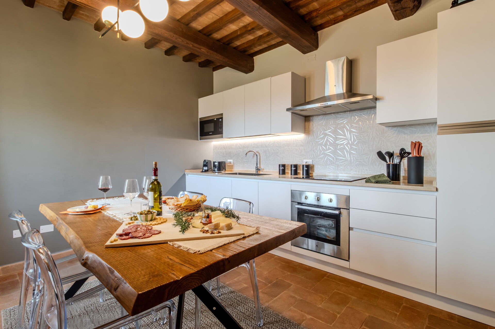 Tenuta Poggio Guiano se compose de 5 unités non reliées intérieurement ainsi que d’une dépendance avec un grand salon où il est possible de passer des moments de détente en compagnie; une salle équipée d’une cuisine et d’un espace repas vous permettra de cuisiner et de manger tous ensemble. Grâce à ses 10 chambres et ses 7 salles de bain, Tenuta Poggio Guiano peut accueillir jusqu’à 20 personnes.