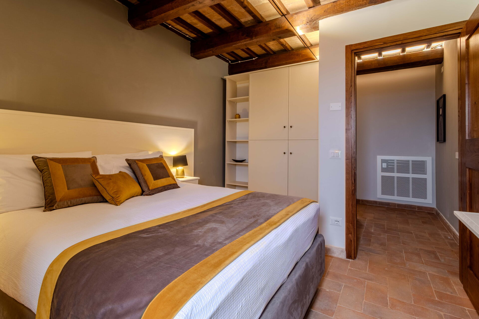 Rez-de-chaussée (non reliée intérieurement aux autres unités): chambre double (lit king-size pouvant être séparé sur demande en 2 lits simples) avec salle de bain privée avec douche à l’italienne (idéale pour les personnes à mobilité réduite et les personnes en situation d’handicap).