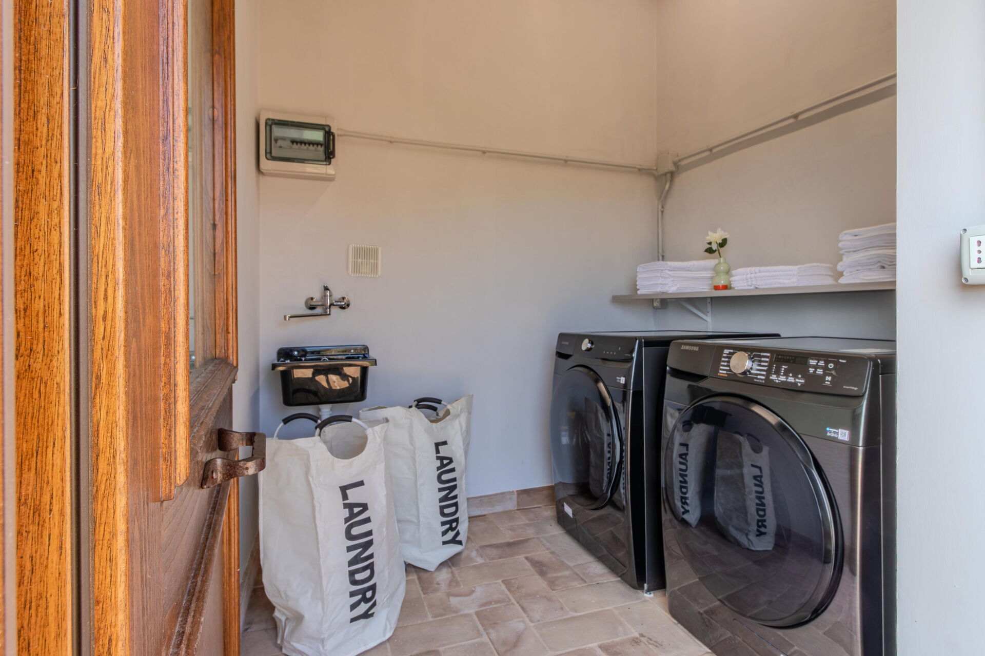 Rez-de-chaussée (accessible depuis le jardin au-dessus de la piscine et non reliée intérieurement aux autres unités): buanderie équipée d’un lave-linge et d’un sèche-linge.