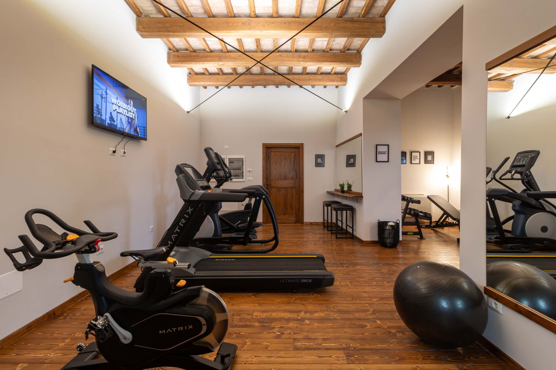 - salle de fitness avec équipement de gymnastique, WC et douche émotionnelles