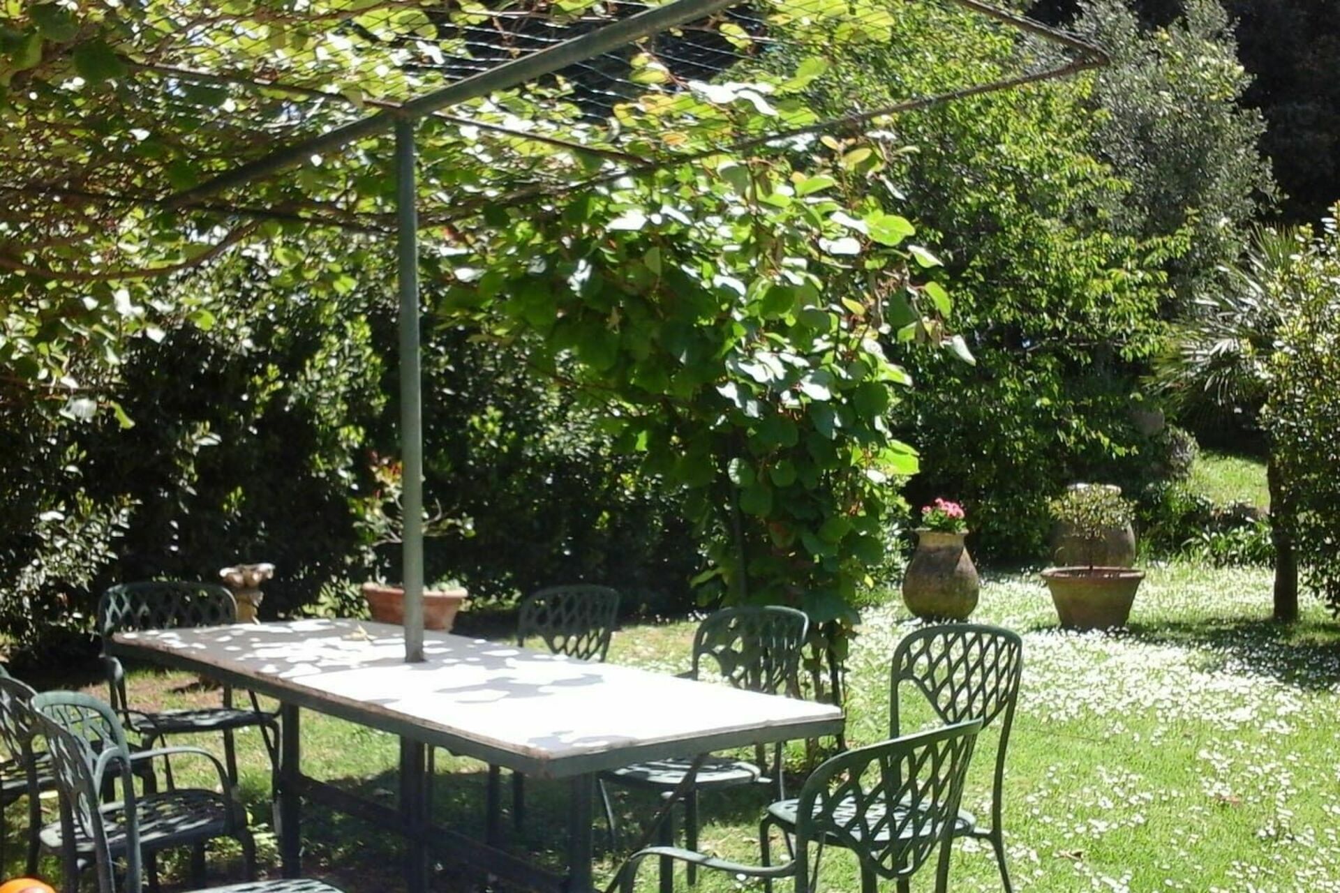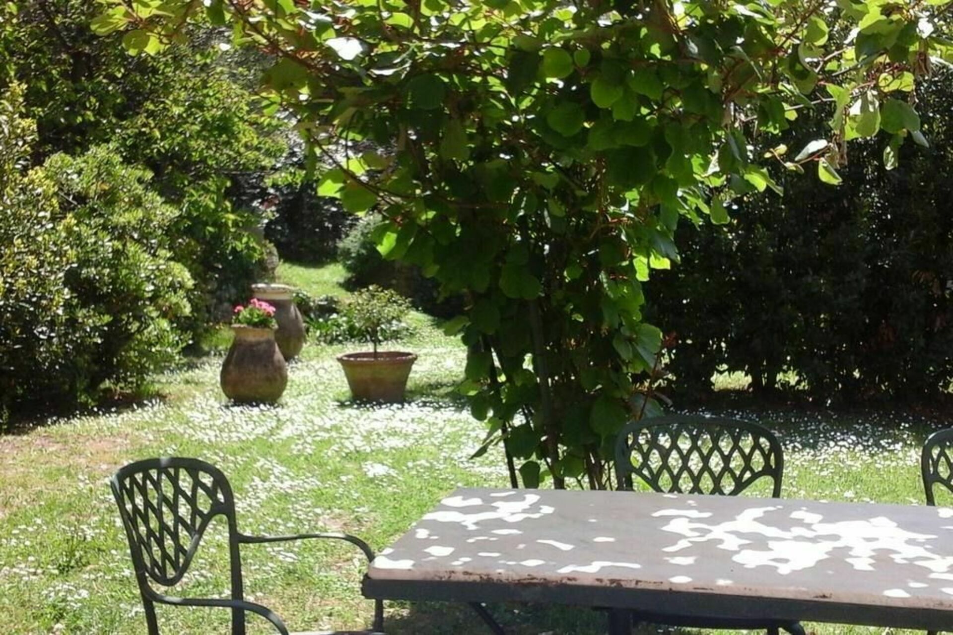 Bien que situé dans un village, cet appartement en location dispose d'un grand jardin avec pergola (table et chaises), barbecue et piscine (hors terre) privée avec chaises longues et parasol où passer agréablement les chaudes journées d’été. Le jardin confine avec un bois de chênes et de chênes verts (même propriété).