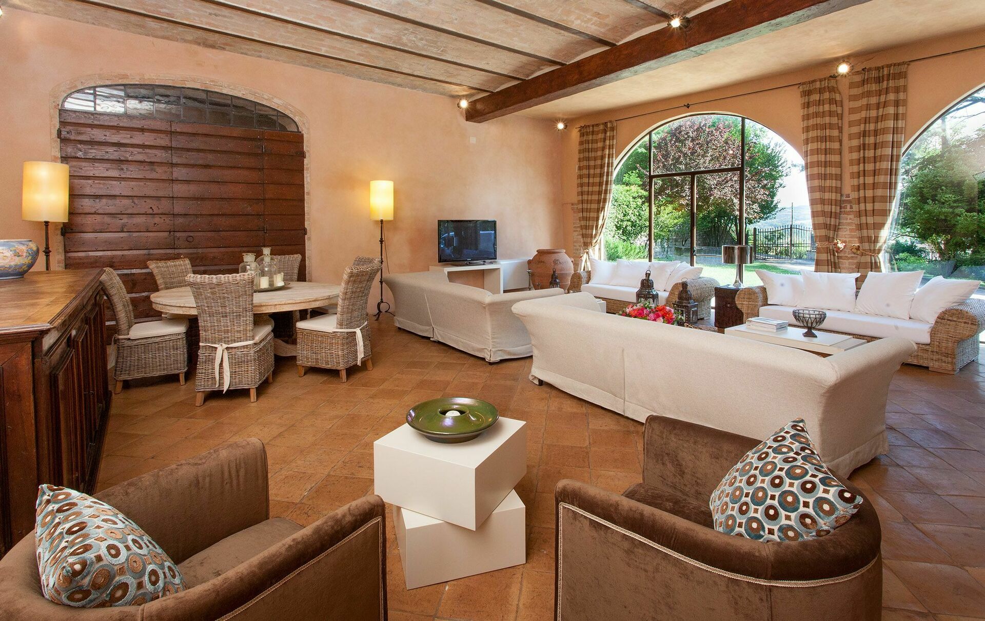 Attention La Villa Gubbio peut être louée en 2 versions différentes: pour 14 personnes (7 chambres) ou pour 20 personnes (10 chambres). Le prix de location de la villa varie en fonction du nombre d'occupants/chambres et en cas de locations à capacité réduite (moins de 20 personnes/10 chambres) certaines chambres seront fermées.