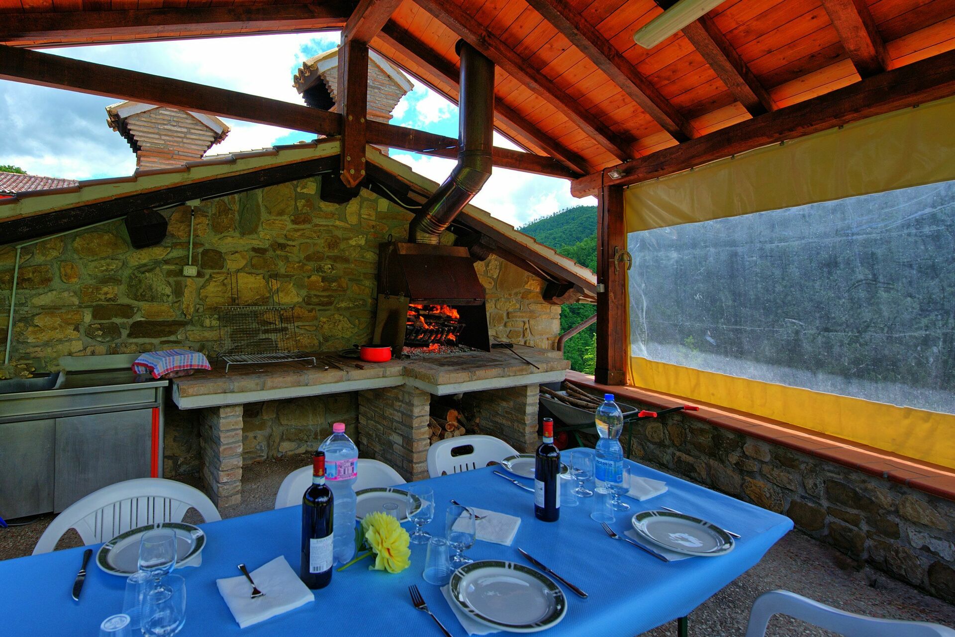• à l’ extérieur il y à une pièce avec cuisine, barbecue et four