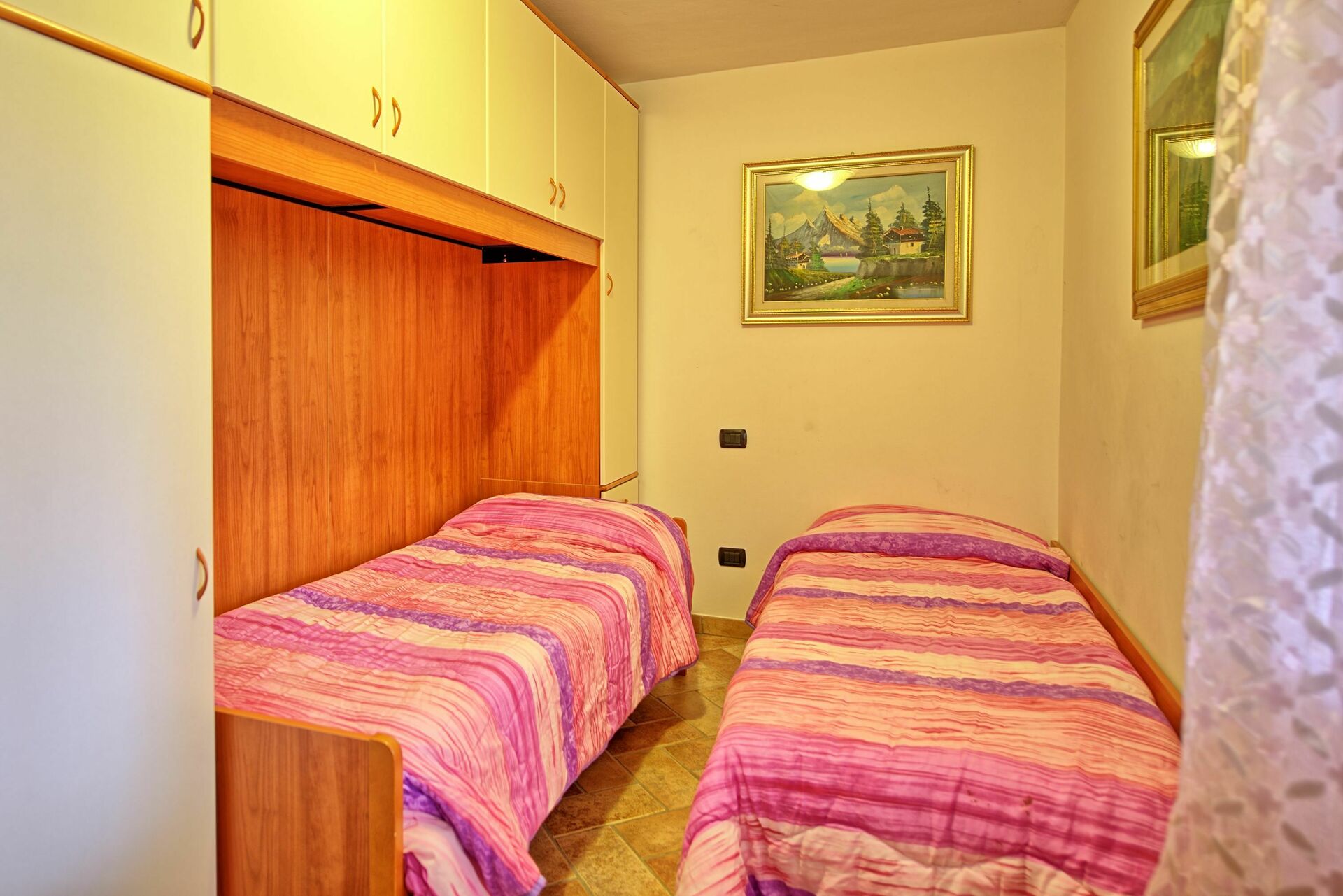 2 marches plus haut: 1 chambre doubles, salle de bains avec baignoire, chambre avec 2 lits à une place.