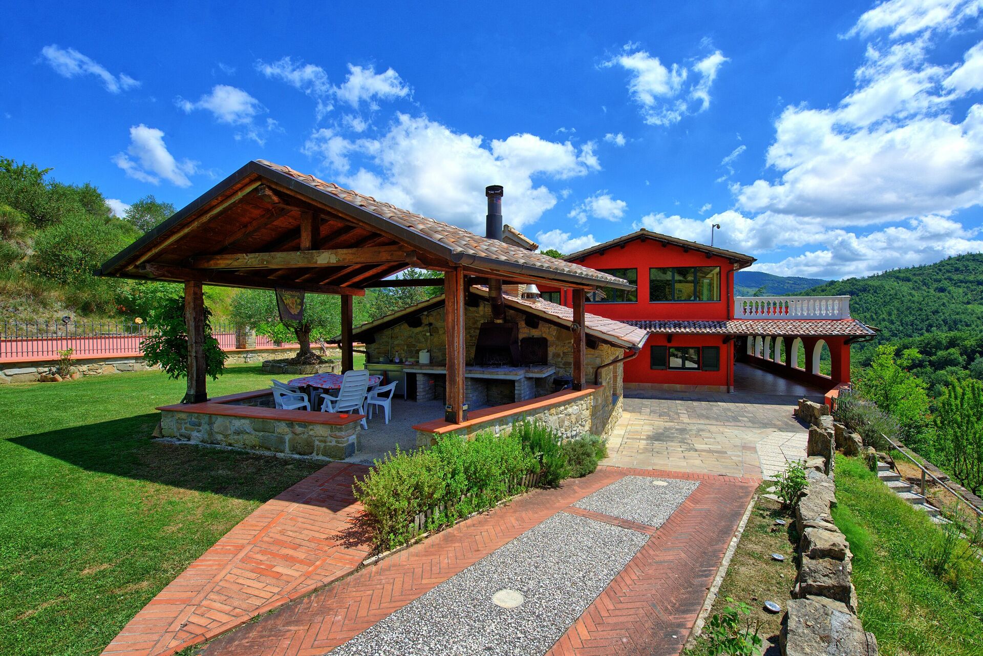 Villa immersa nella natura con un parco molto bello con piscina e un notevole spazio per barbecue. All"interno molto spaziosa arredata con gusto e pulita. Ad accoglierci il proprietario molto simpatico e disponibile .