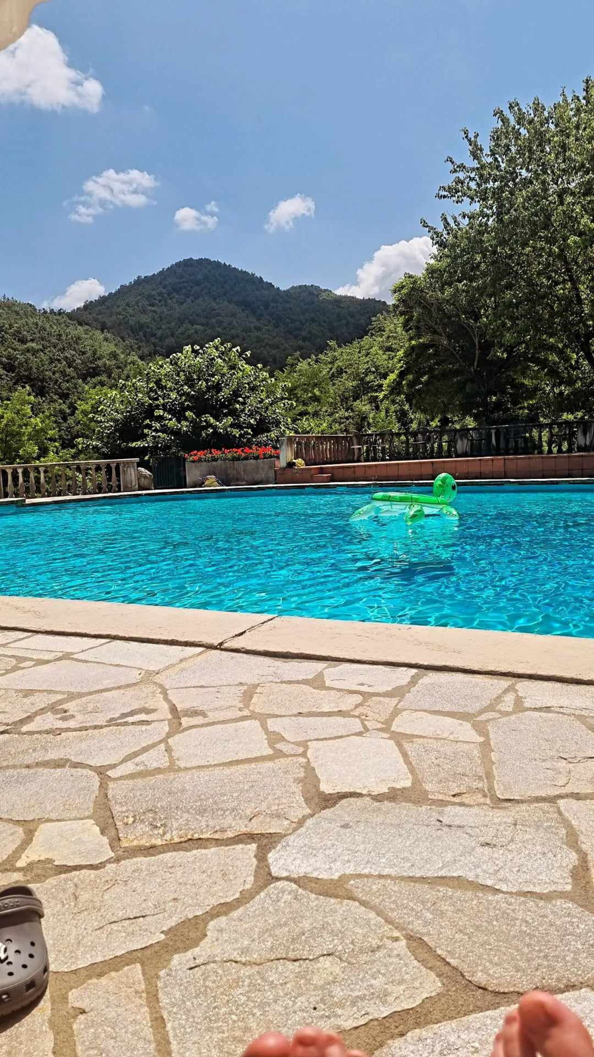 Hier kann man so richtig entspannen, großer Garten und um einen herum die Berge. Zum Haus gehört ein großer Gemüsegarten an dem wir uns immer bedienen durften. Selbst die Hühner haben uns täglich mit Frischen Eiern versorgt. abseits vom Haus befindet sich noch mal ein kleines Häuschen mit Grill Platz und Pizza Ofen, den wir mit dem Gastgeber getestet haben. Leider war der große oder besser gesagte riesengroße Pool schon nicht mehr mit Wasser befüllt, da wir Im Oktober da waren.