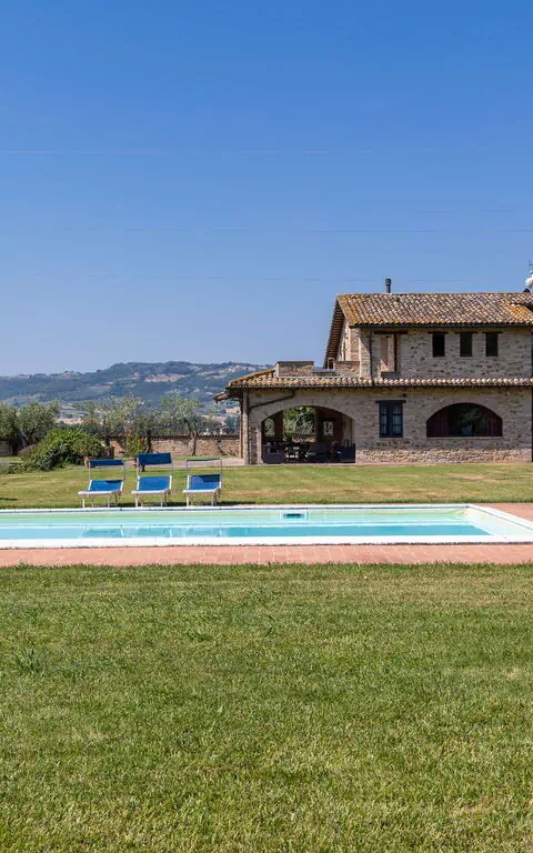 Villa avec piscine privée en location dans la région de l’Ombrie en Italie. La propriété jouit d’une belle vue sur la fameuse cité d’Assise.