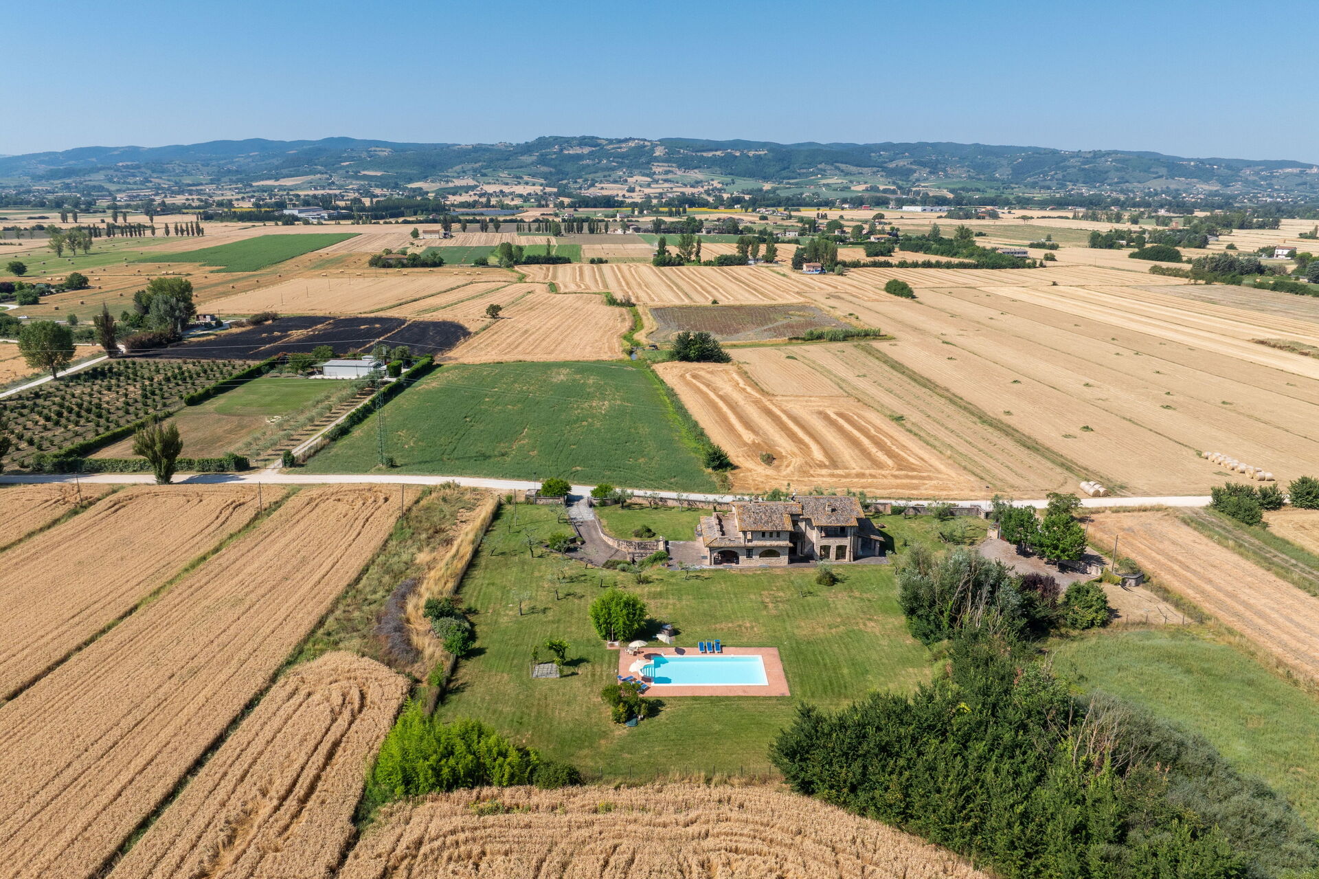 Distances : Santa Maria degli Angeli avec magasins variés à 5km, Assise à 10km, Pérouse à 26km, le Lac Trasimène à 45km, Spolète à 49km, Cortona à 71km, Orvieto à 80km, Sienne à 125km, Rome et Florence à 180km.