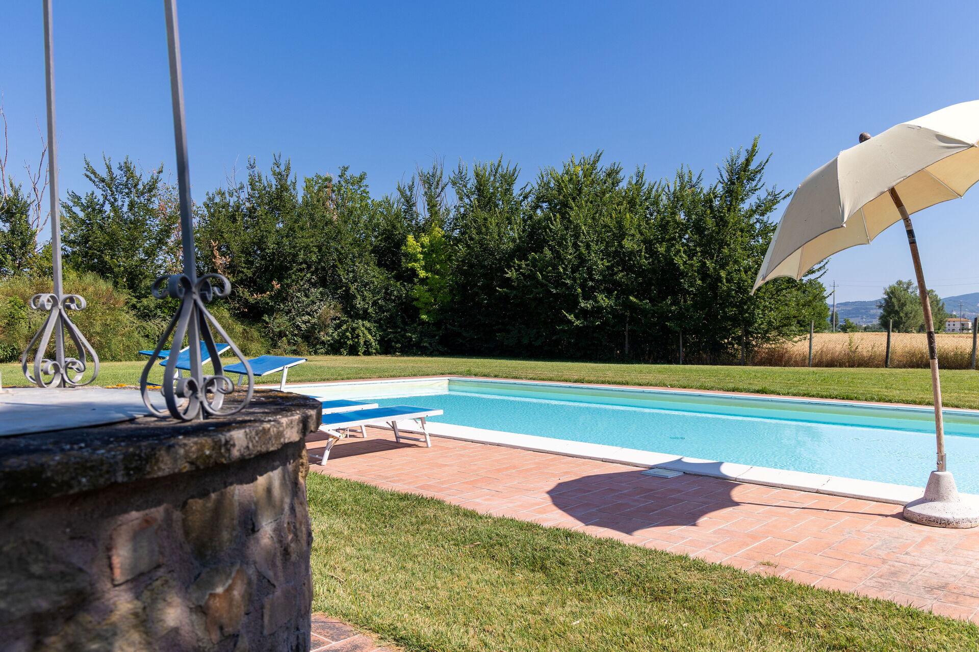 I would like to have given a 5 star review but this isn't possible due to issues which could be improved on. The owners staff were helpful but promises to clean the pool weren't kept. The villa is in a perfect location for visiting all the Umbrian hill towns as well as being near to food shops, restaurants and supermarkets. The provision of a kettle and some mugs for English tea drinkers would be useful. As the house is quite dark, a few replacement light bulbs would be of benefit especially if you are staying out of season as we were. If we were visiting this area again I would be happy to return to this villa providing the suggestions above are implemented.