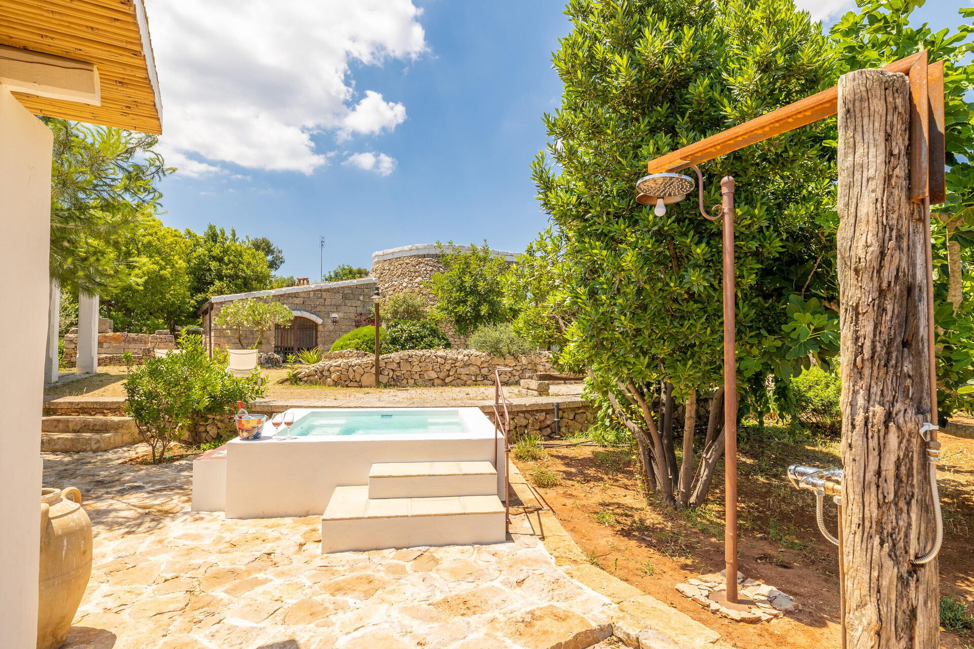 WC et salle de bains avec douche extérieur. Jacuzzi à usage privé.