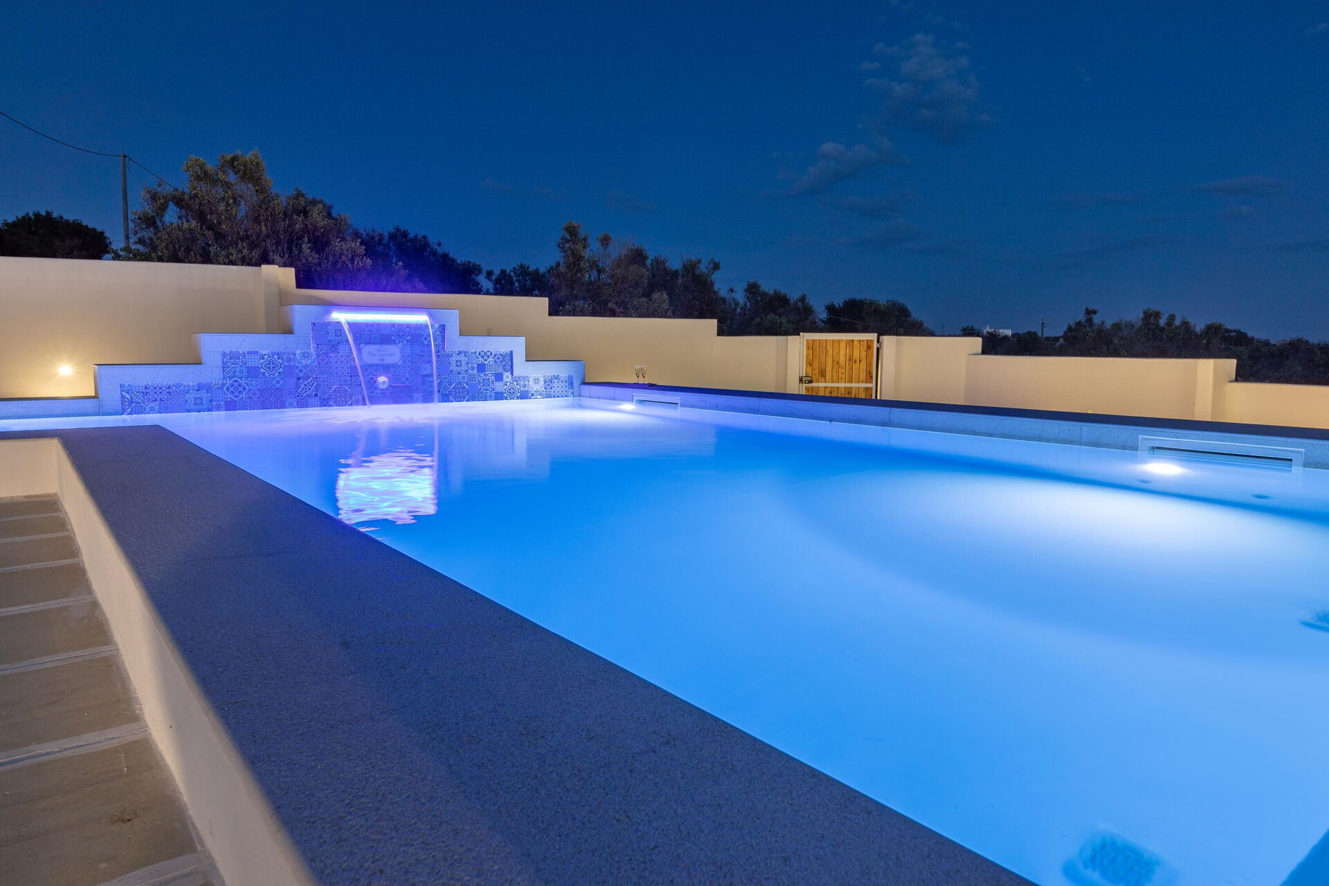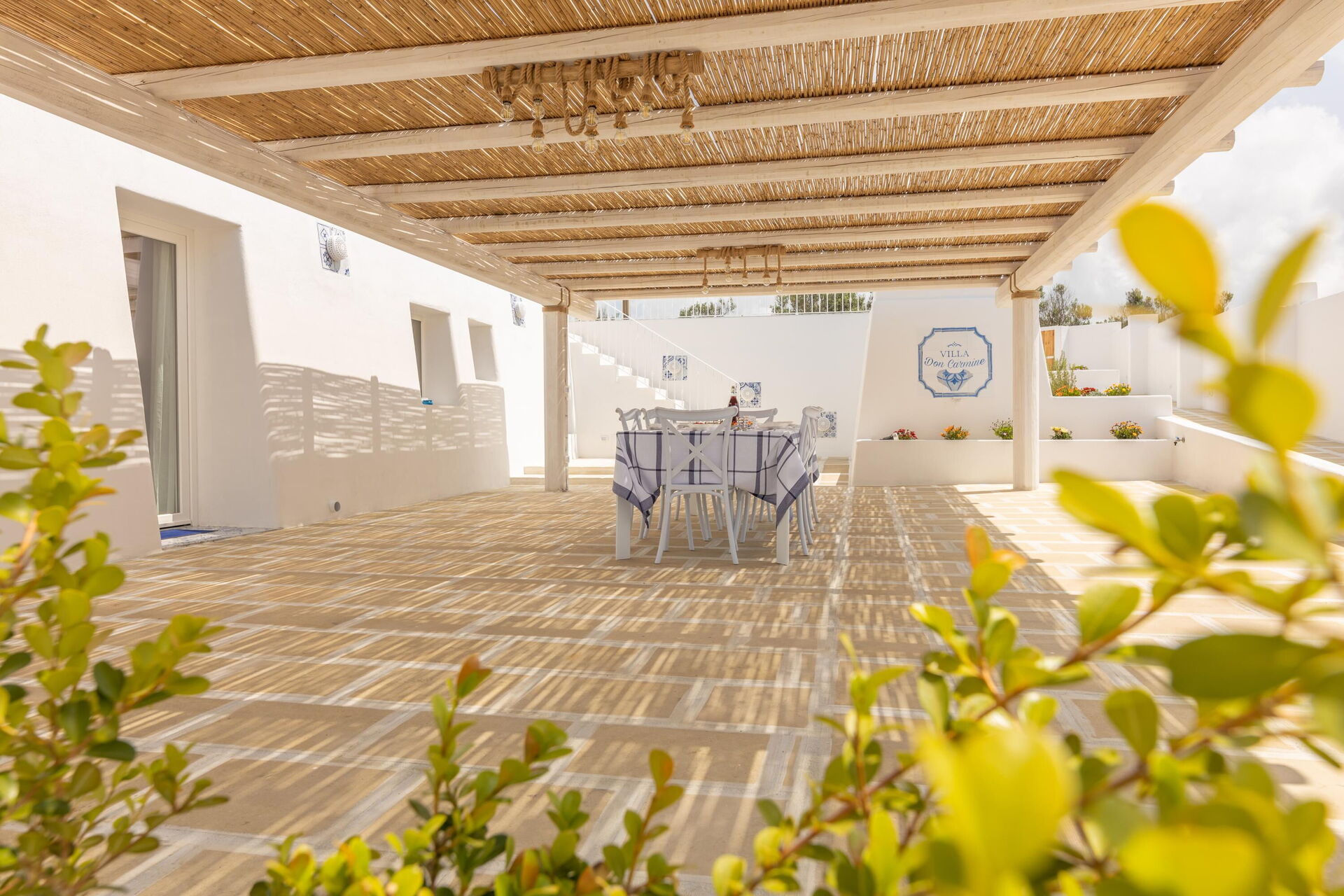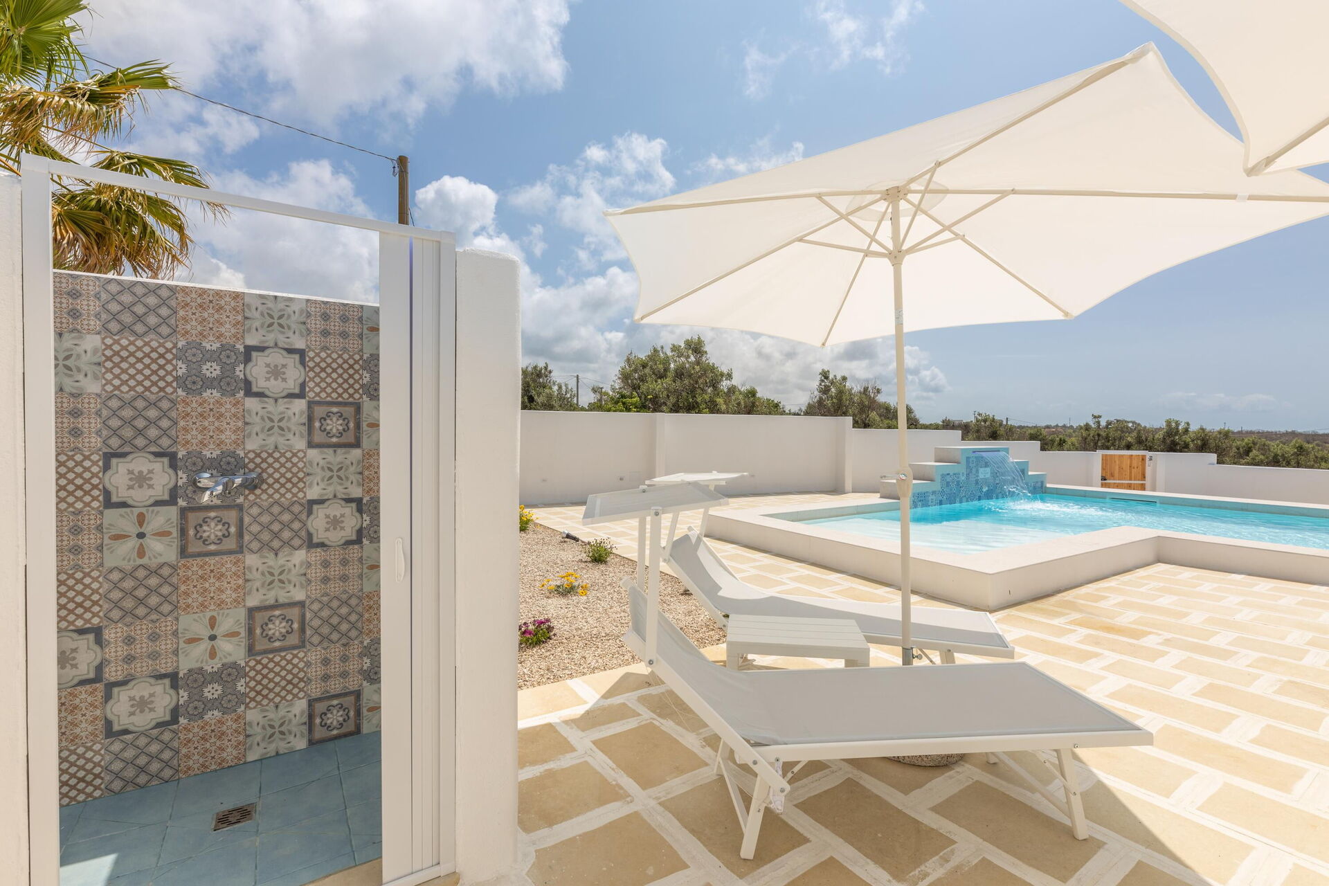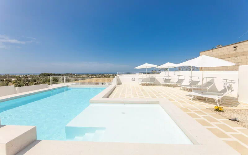 Les vastes espaces extérieurs offrent de nombreuses zones communes qui permettent aux hôtes de passer un séjour agréable en famille ou entre amis, en se relaxant sur la véranda équipée pour les repas en plein air ou dans la grande piscine avec solarium, idéale pour passer des moments inoubliables sous le soleil des Pouilles.