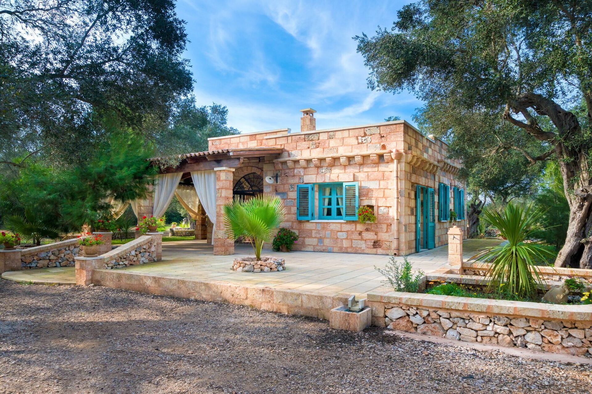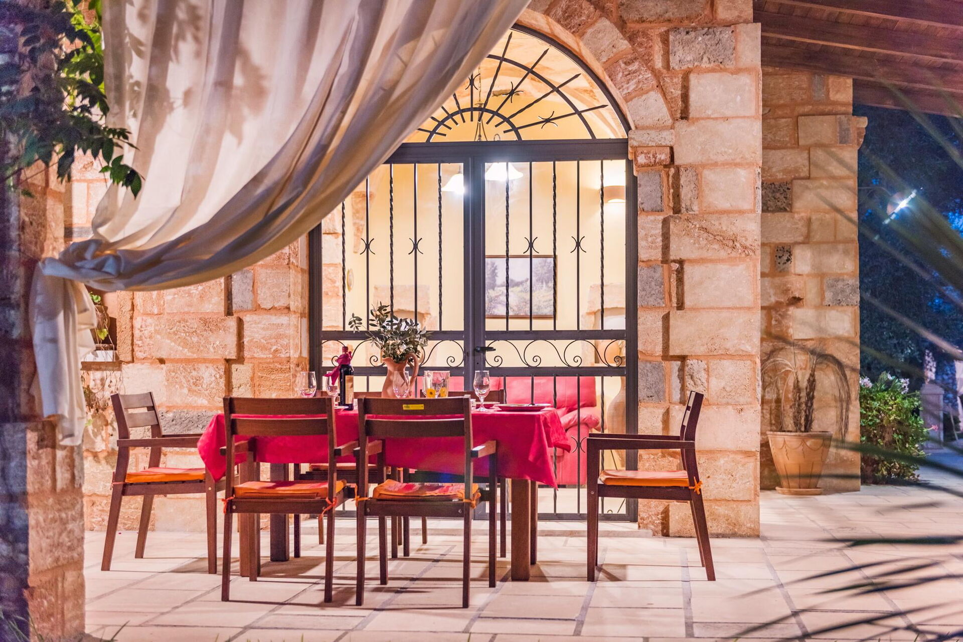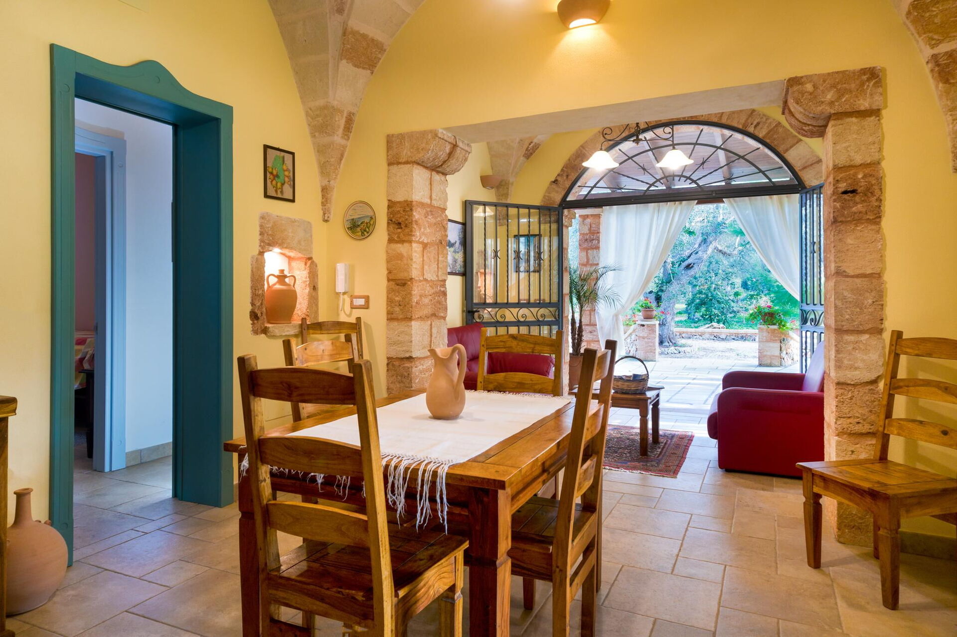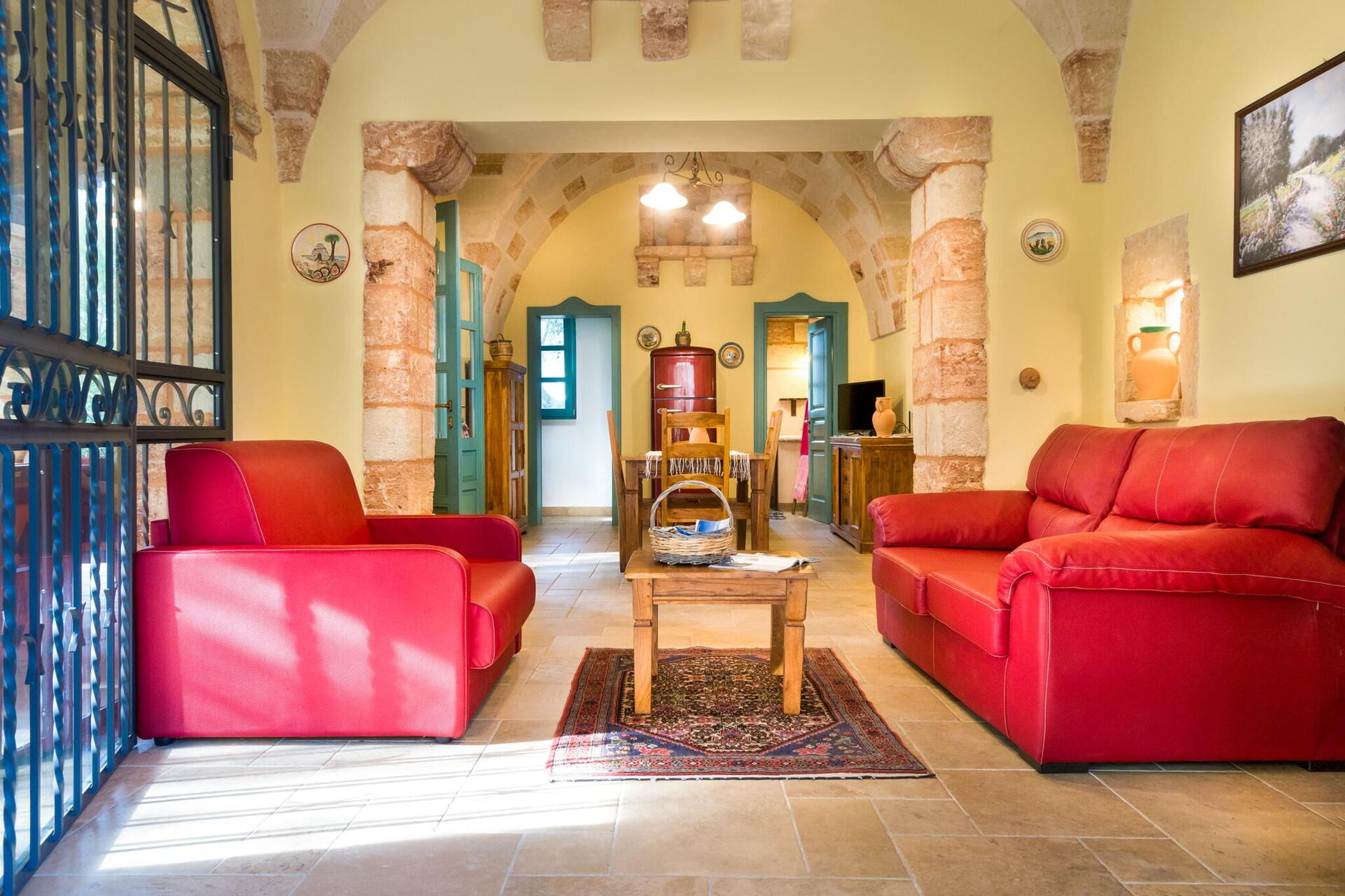 Meublée avec goût, cette belle maison se distingue par ses plafonds voûtés et ses briques caractéristiques de tuf, laissées en évidence dans les différentes pièces.