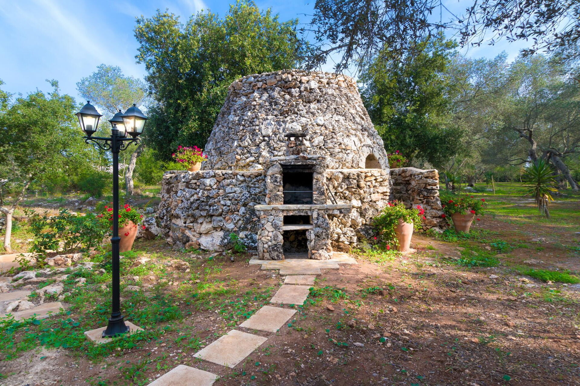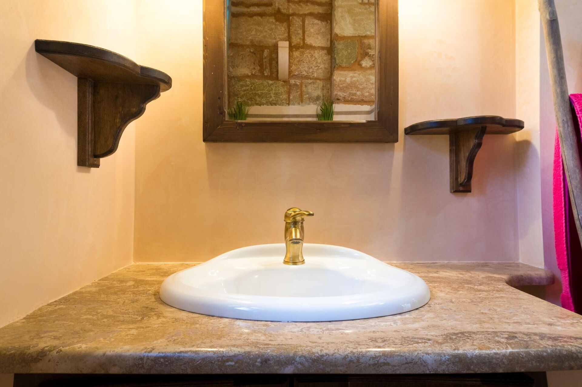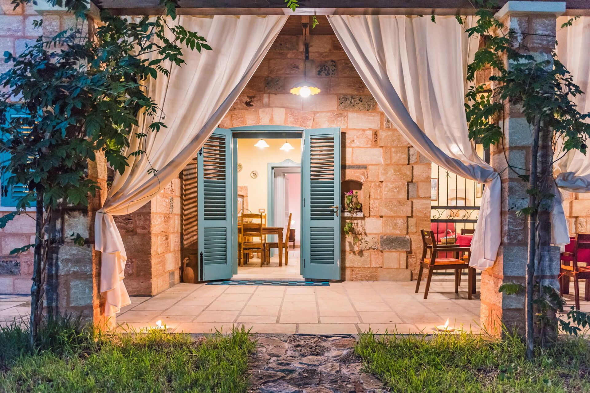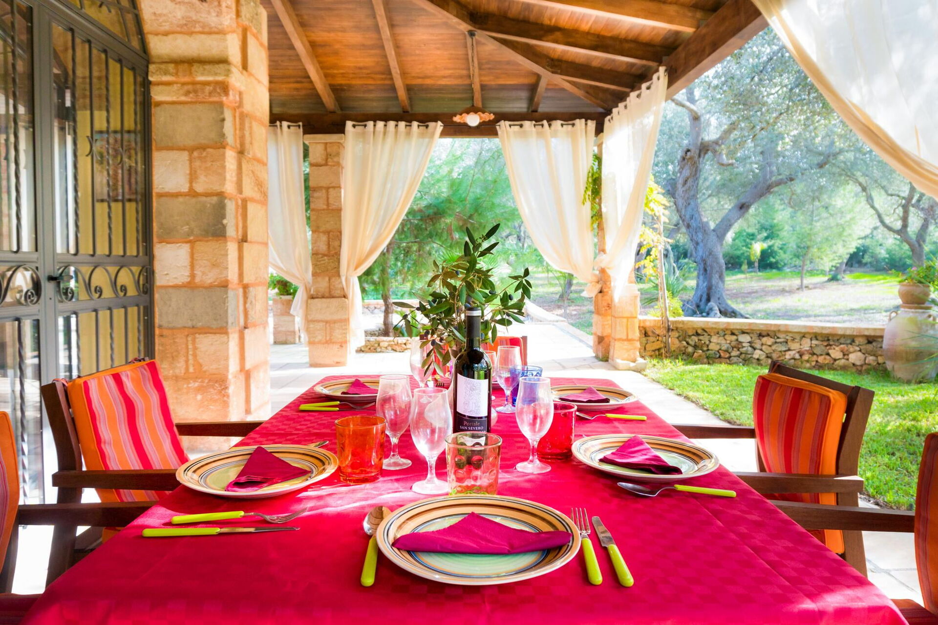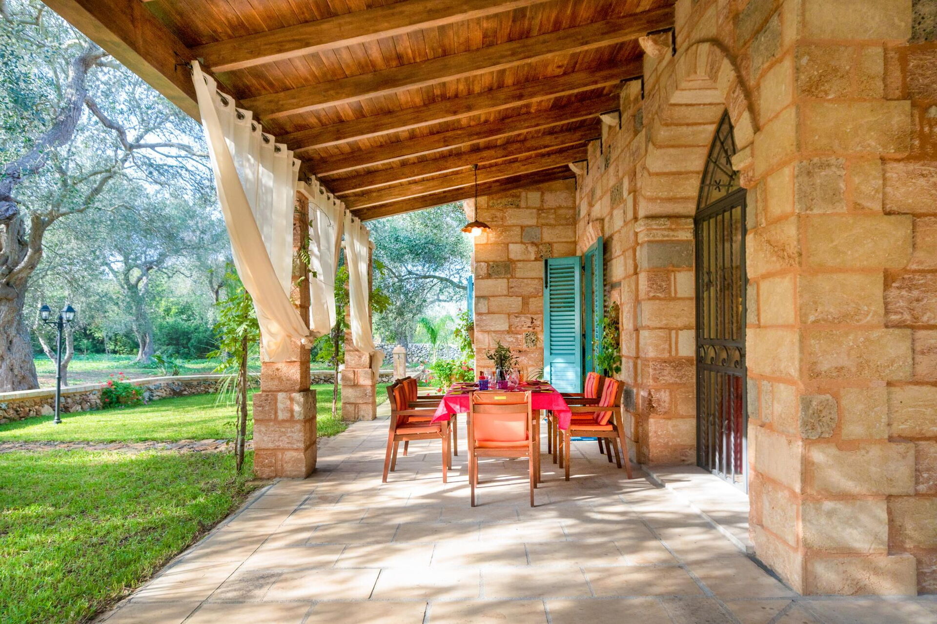 Meublée avec goût, cette belle maison se distingue par ses plafonds voûtés et ses briques caractéristiques de tuf, laissées en évidence dans les différentes pièces.