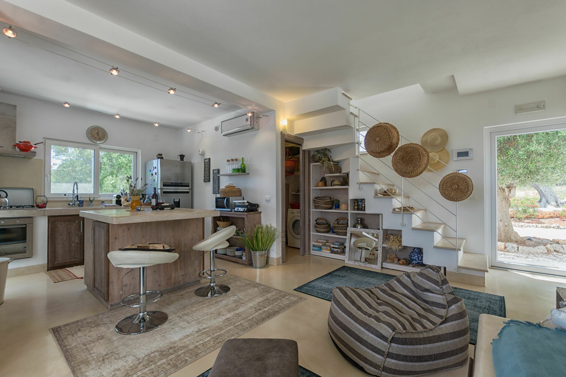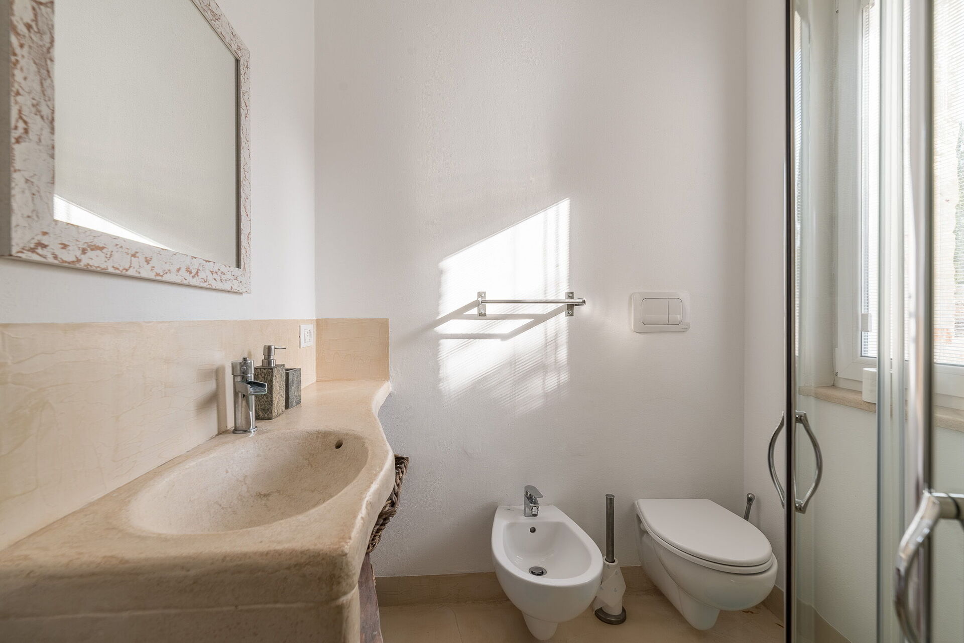 Grand jardin clôturé avec oliviers séculaires et plantes typiques du maquis méditerranéen. Au centre du jardin, une belle piscine privée. Grâce à la véranda à côté de la villa et la pergola à proximité de la piscine, vous pourrez profiter de chaque instant de la journée en plein air grâce aux zones repas et détente. Au premier étage de la villa, avec accès de la romantique chambre double, deux terrasses d’où admirer les magnifiques couchers de soleil sur la mer.