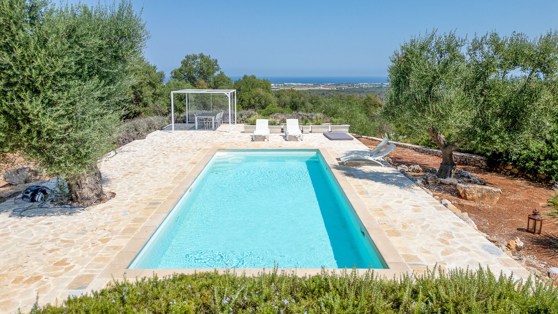Villa Butterfly est une magnifique villa avec piscine privée en location vacances dans les Pouilles, aux environs de Carovigno. De la piscine, vue fantastique sur la mer.