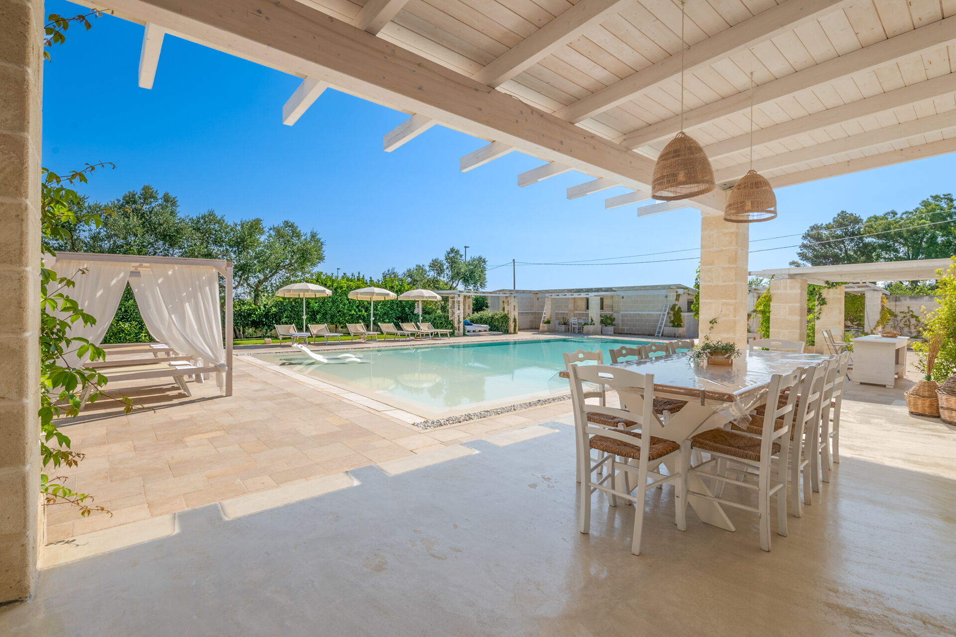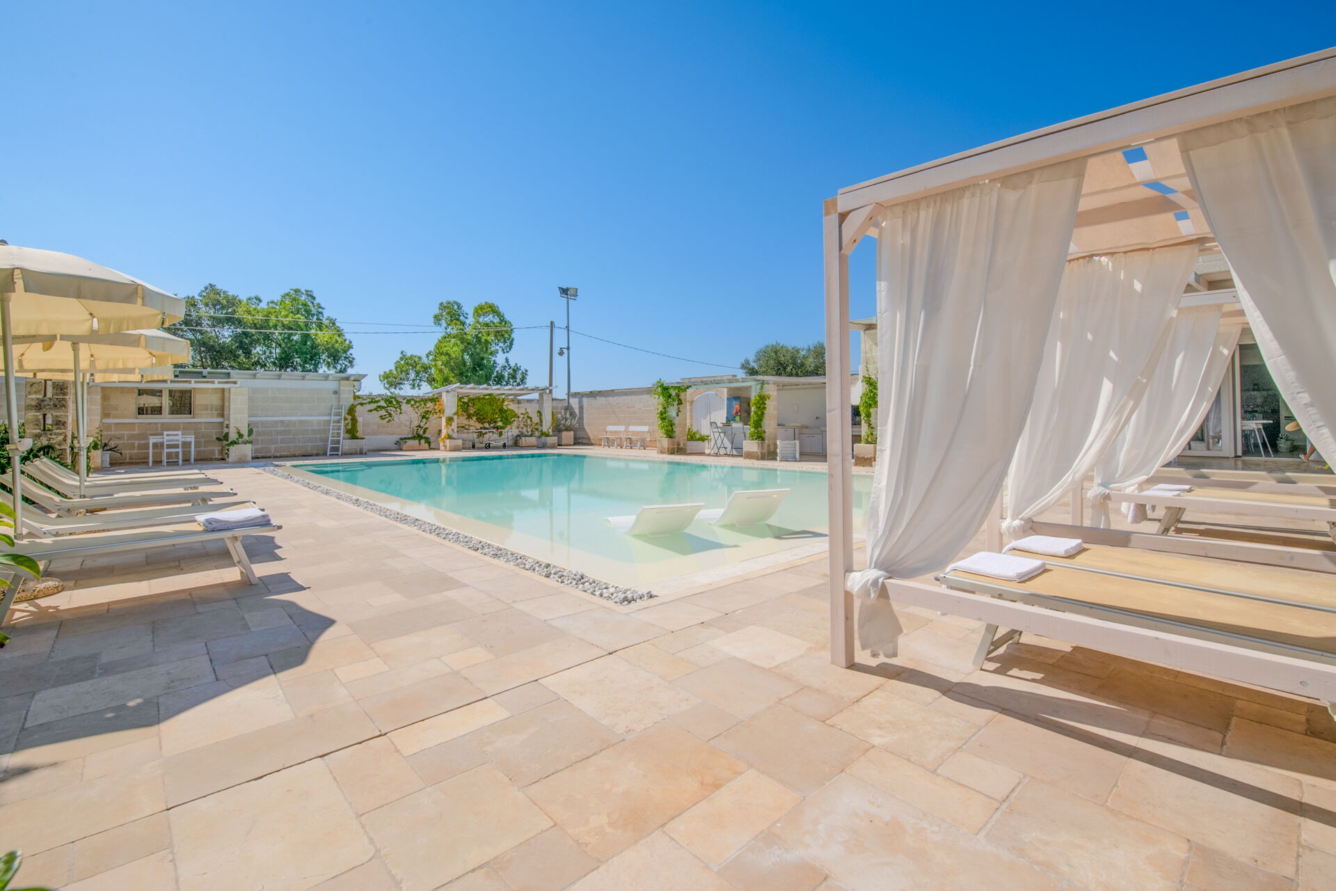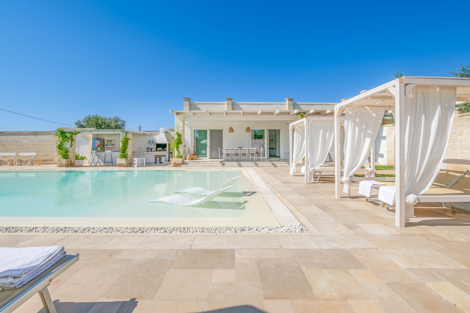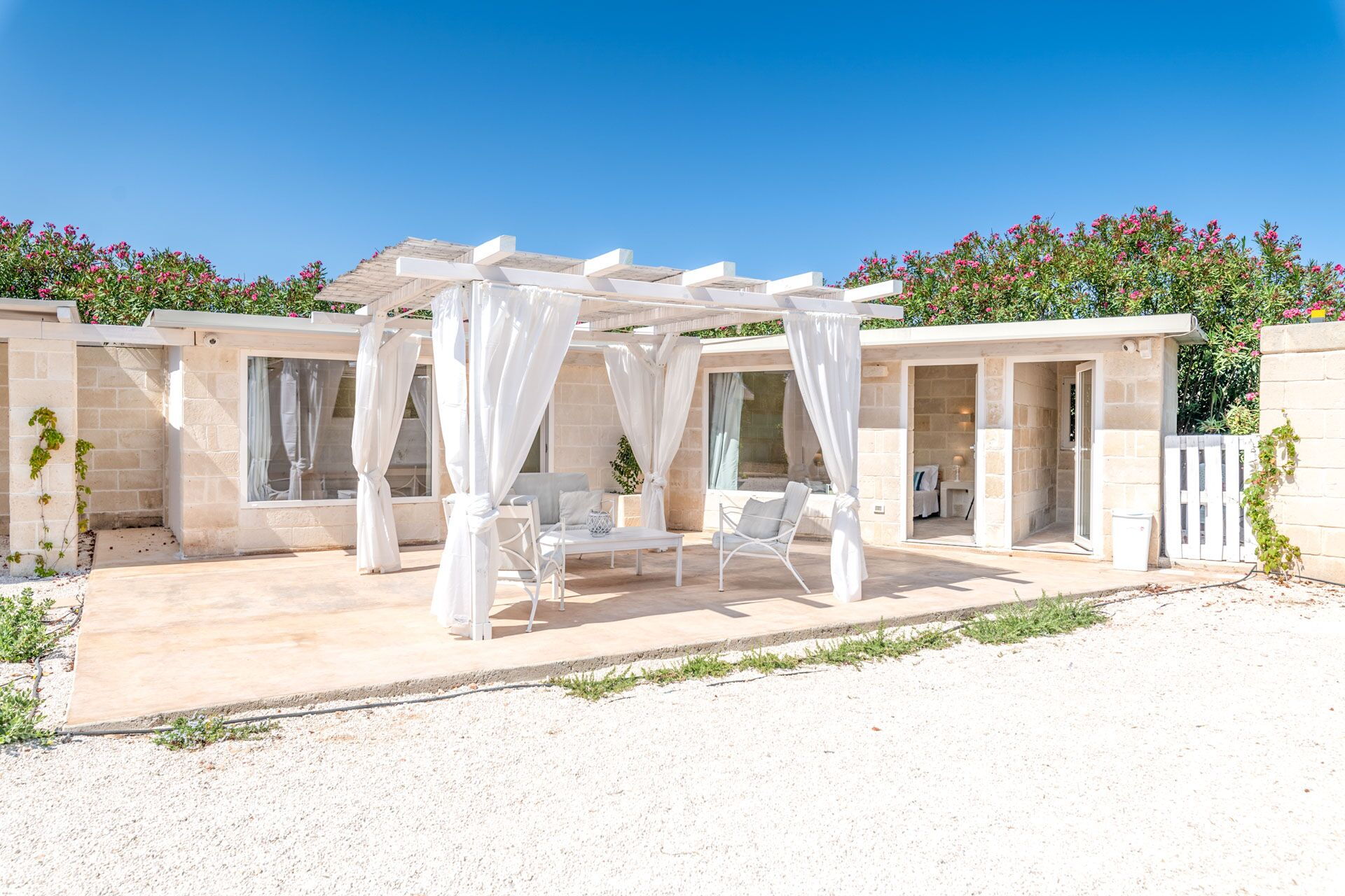 Si vous cherchez une caractéristique demeure des Pouilles aux façades pierres apparentes et peinte dans les tons neutres, Villa Niraclo est la solution idéale pour vos vacances en bord de mer.