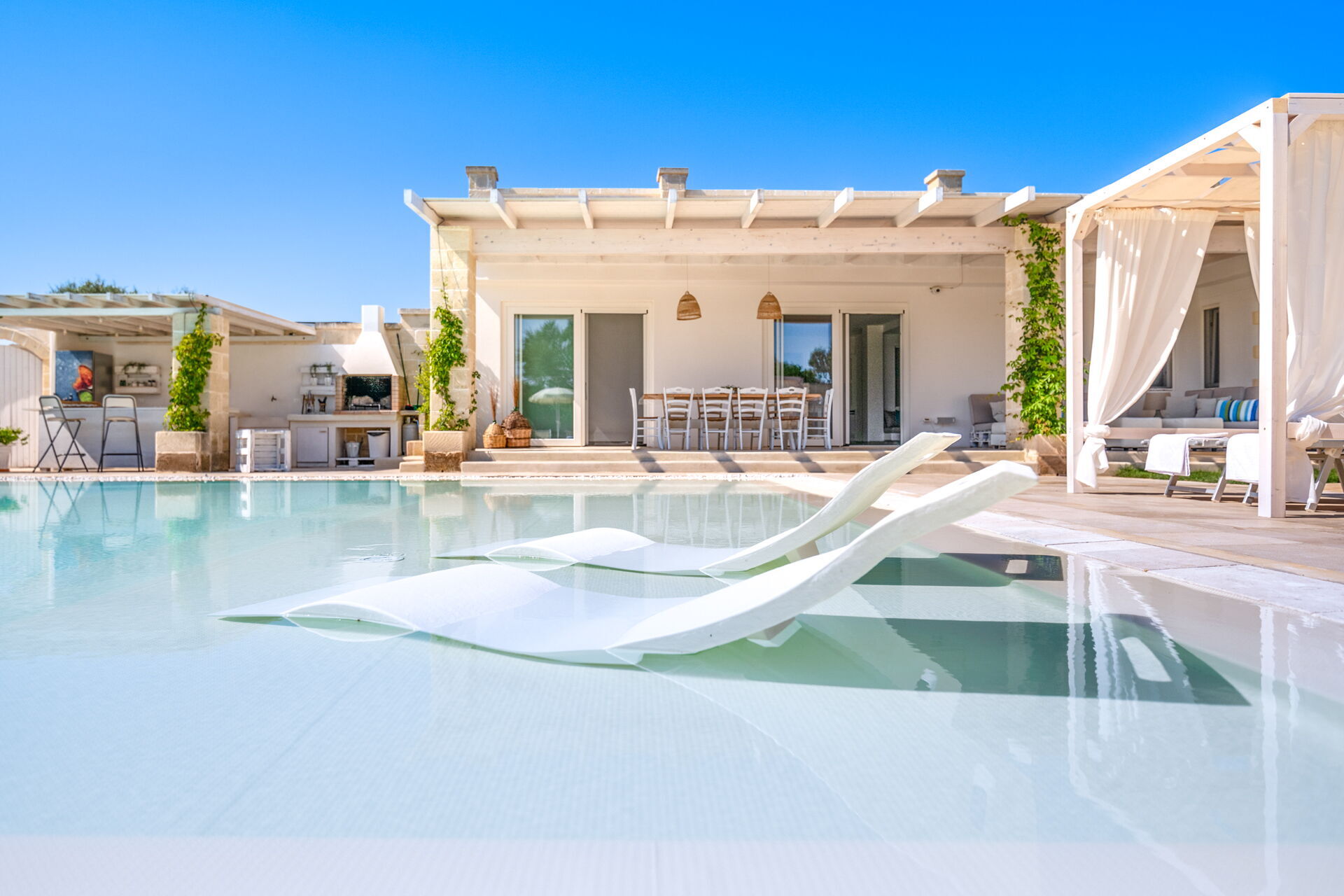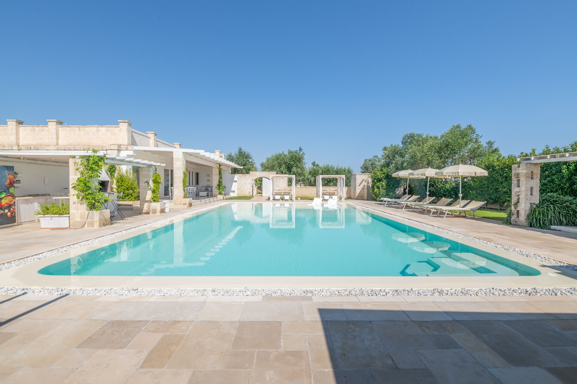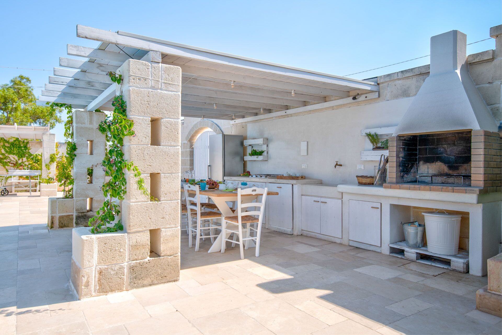 Si vous cherchez une caractéristique demeure des Pouilles aux façades pierres apparentes et peinte dans les tons neutres, Villa Niraclo est la solution idéale pour vos vacances en bord de mer.