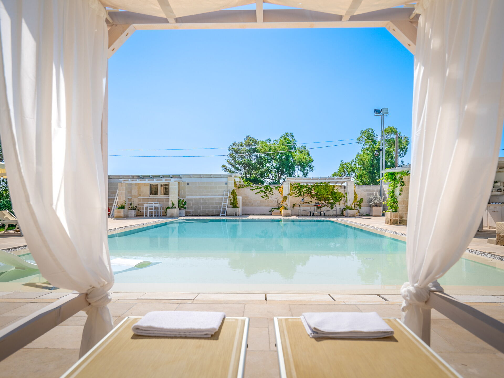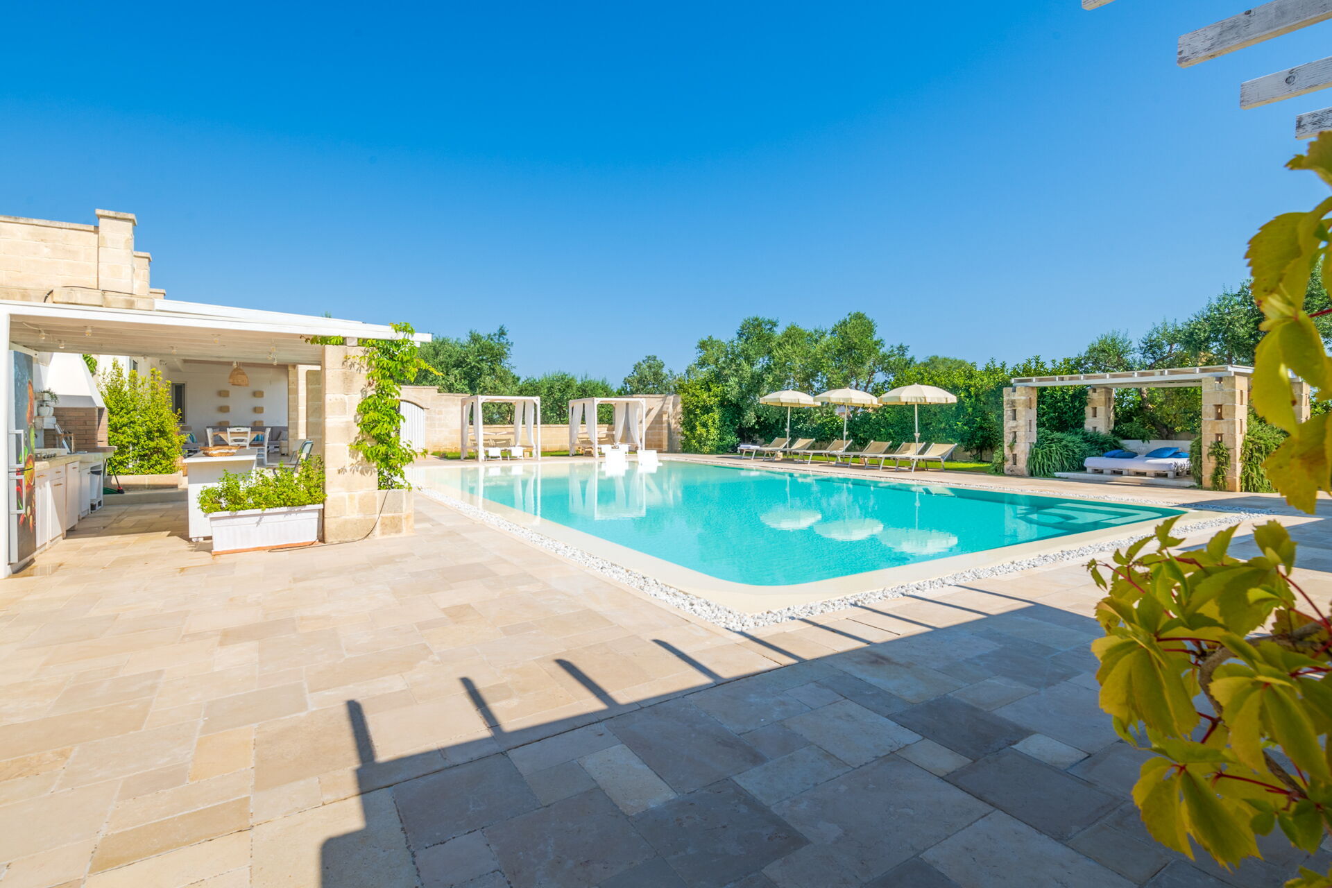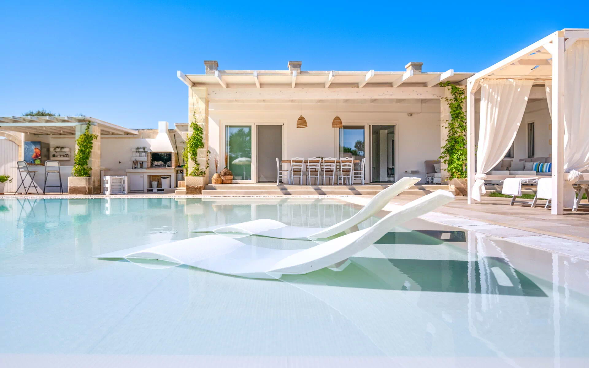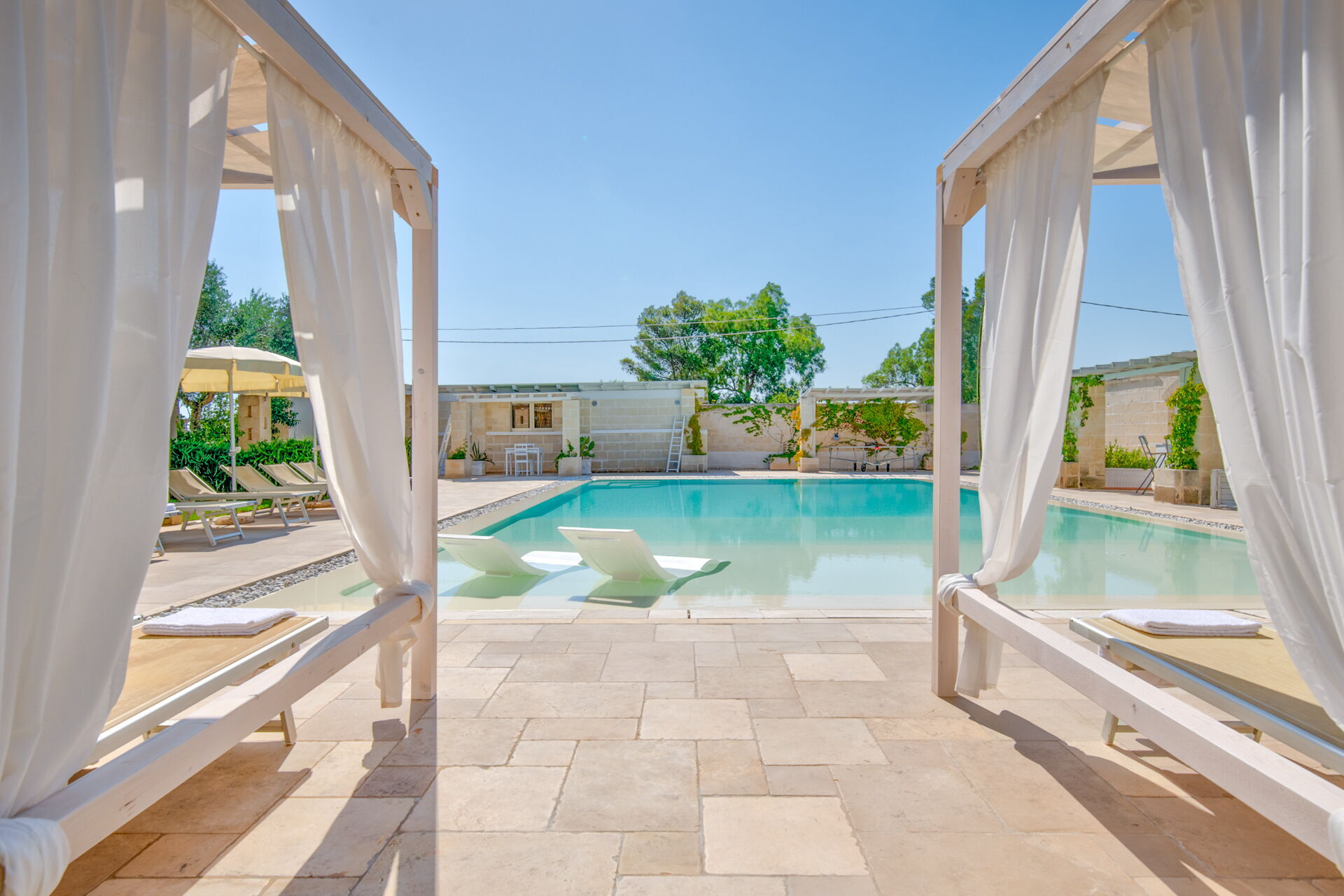 Si vous cherchez une caractéristique demeure des Pouilles aux façades pierres apparentes et peinte dans les tons neutres, Villa Niraclo est la solution idéale pour vos vacances en bord de mer.
