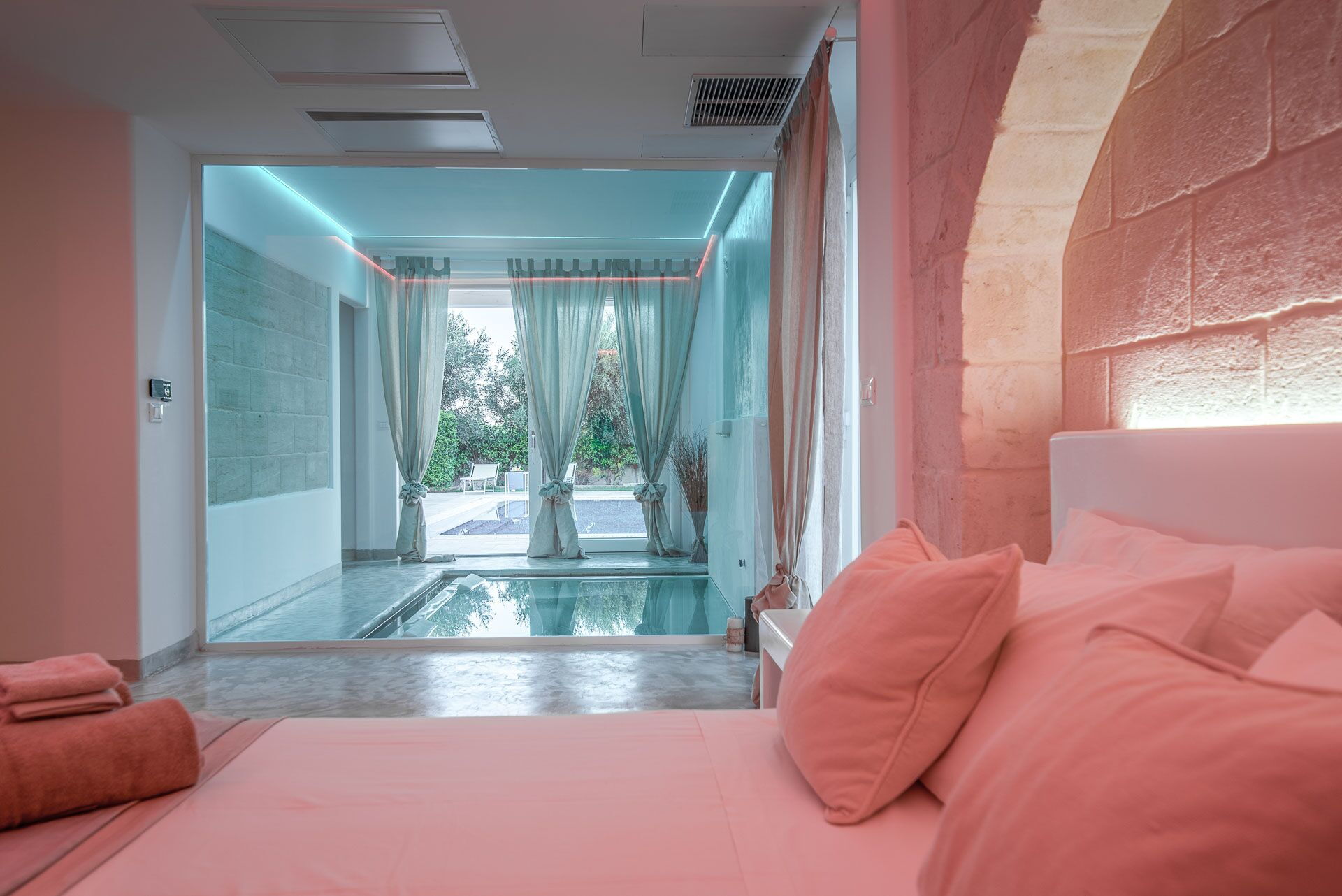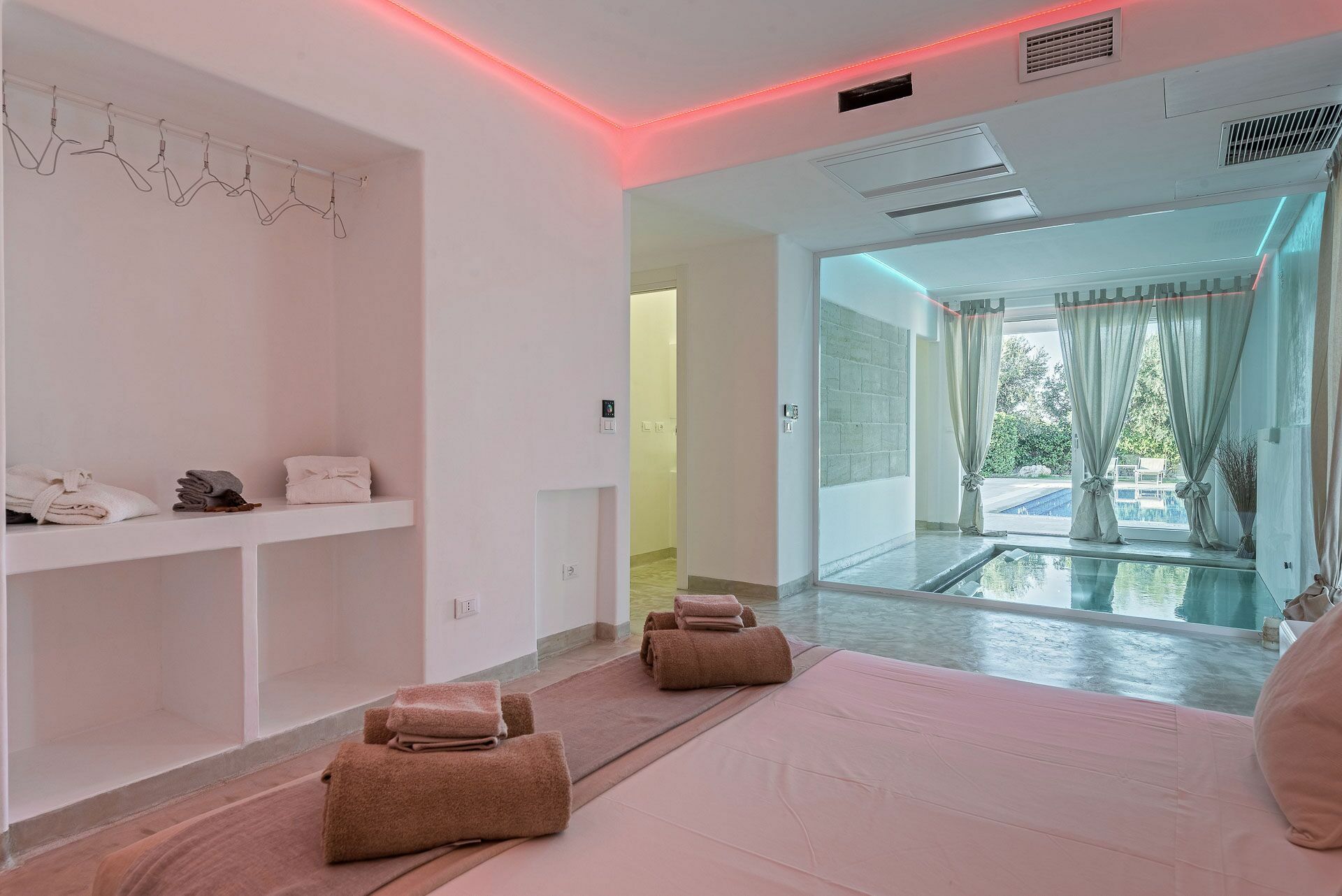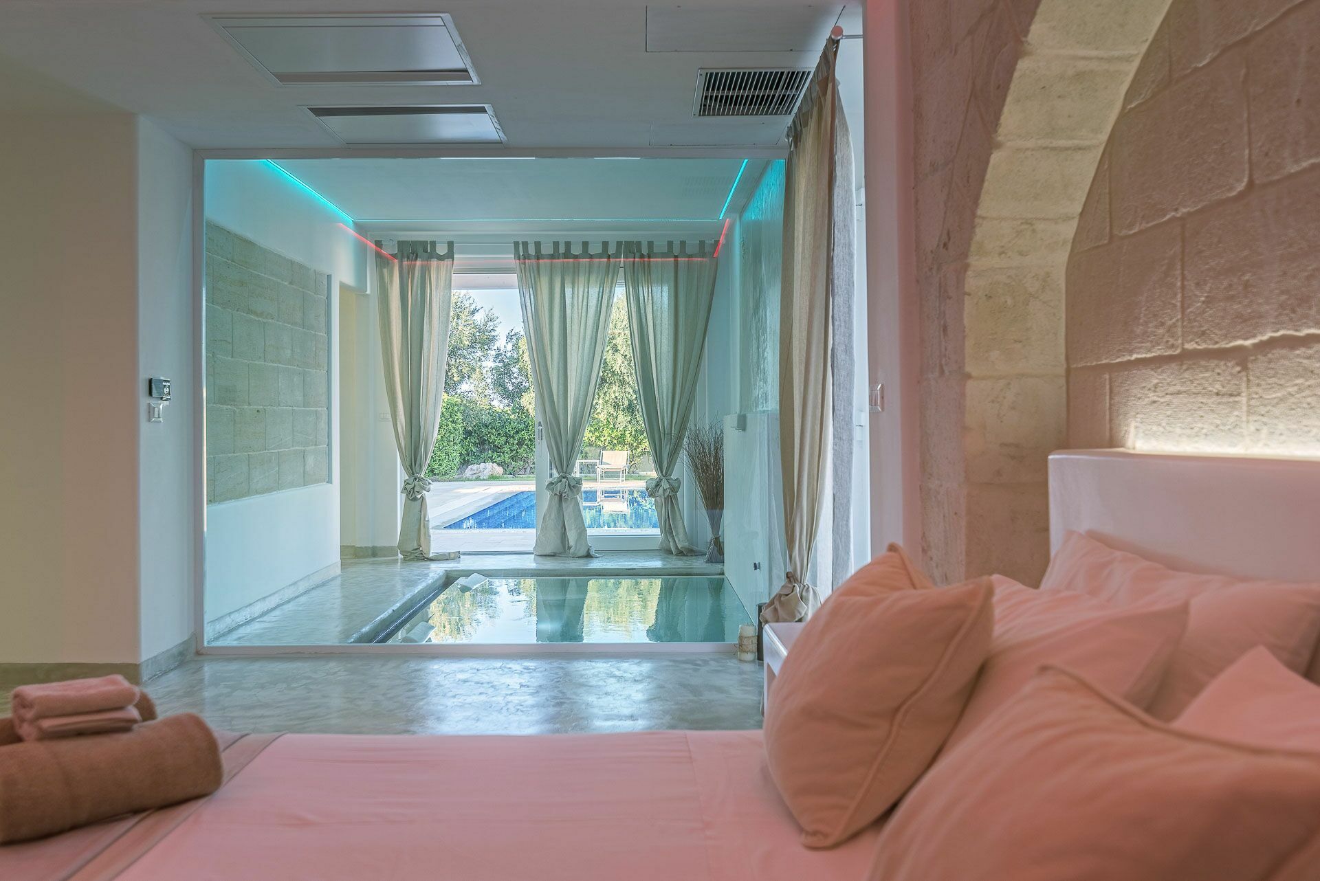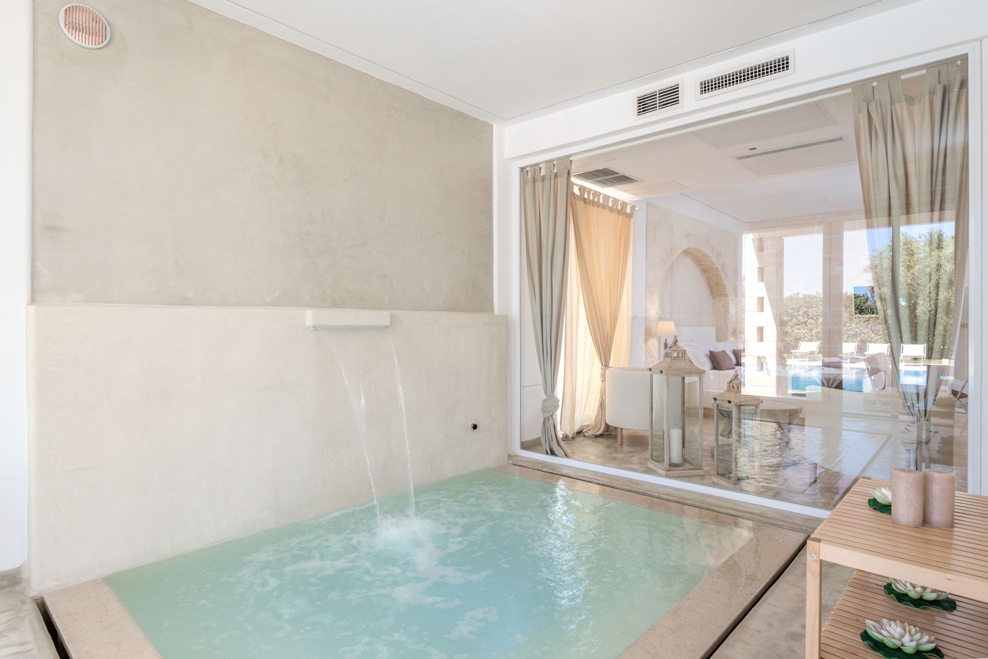 - Piscine couverte (chauffée sur demande) avec jets massants et cascade
