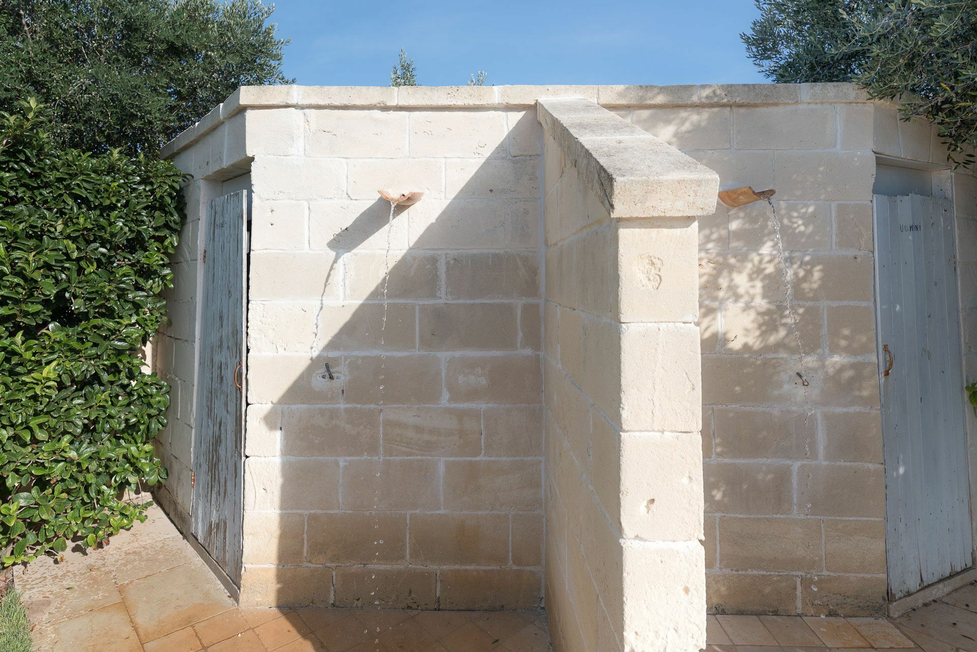 Toujours à l’extérieur, deux bains de service et douches.