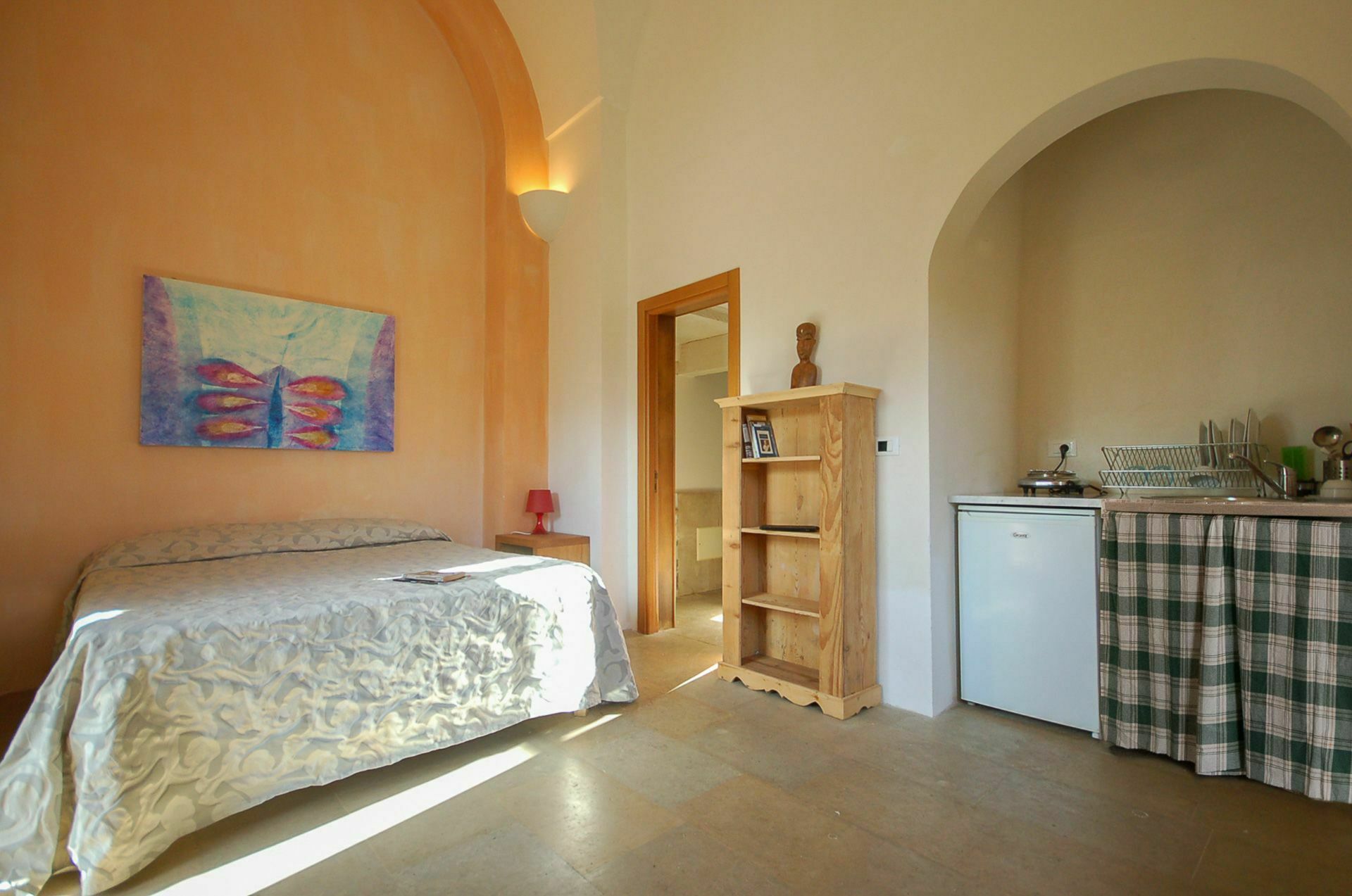 APPARTEMENT E: une chambre double, salle de bains avec douche, frigo, cuisine externe.