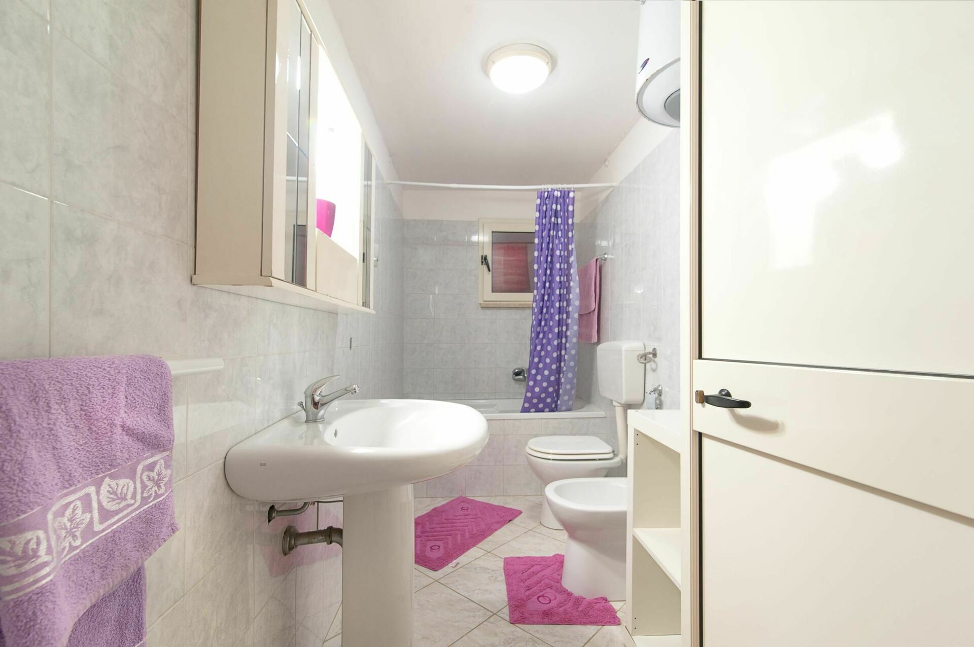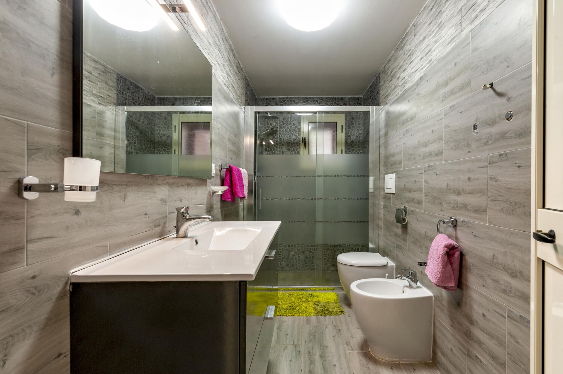 Rez-de-chaussée: séjour avec 1 canapés-lit à une place (supplémentaire sur demande) et 1 canapé lit double, cuisine équipée, une chambre double, une chambre avec 2 lits simples, salle de bains avec douche.