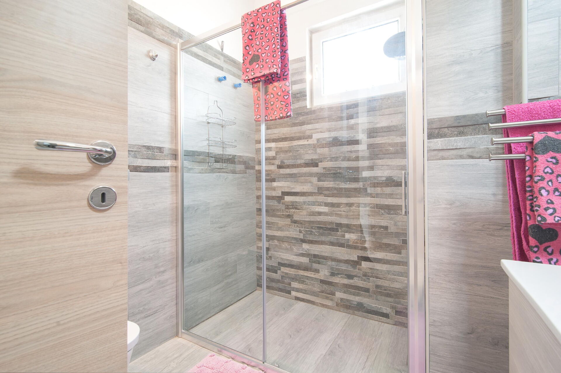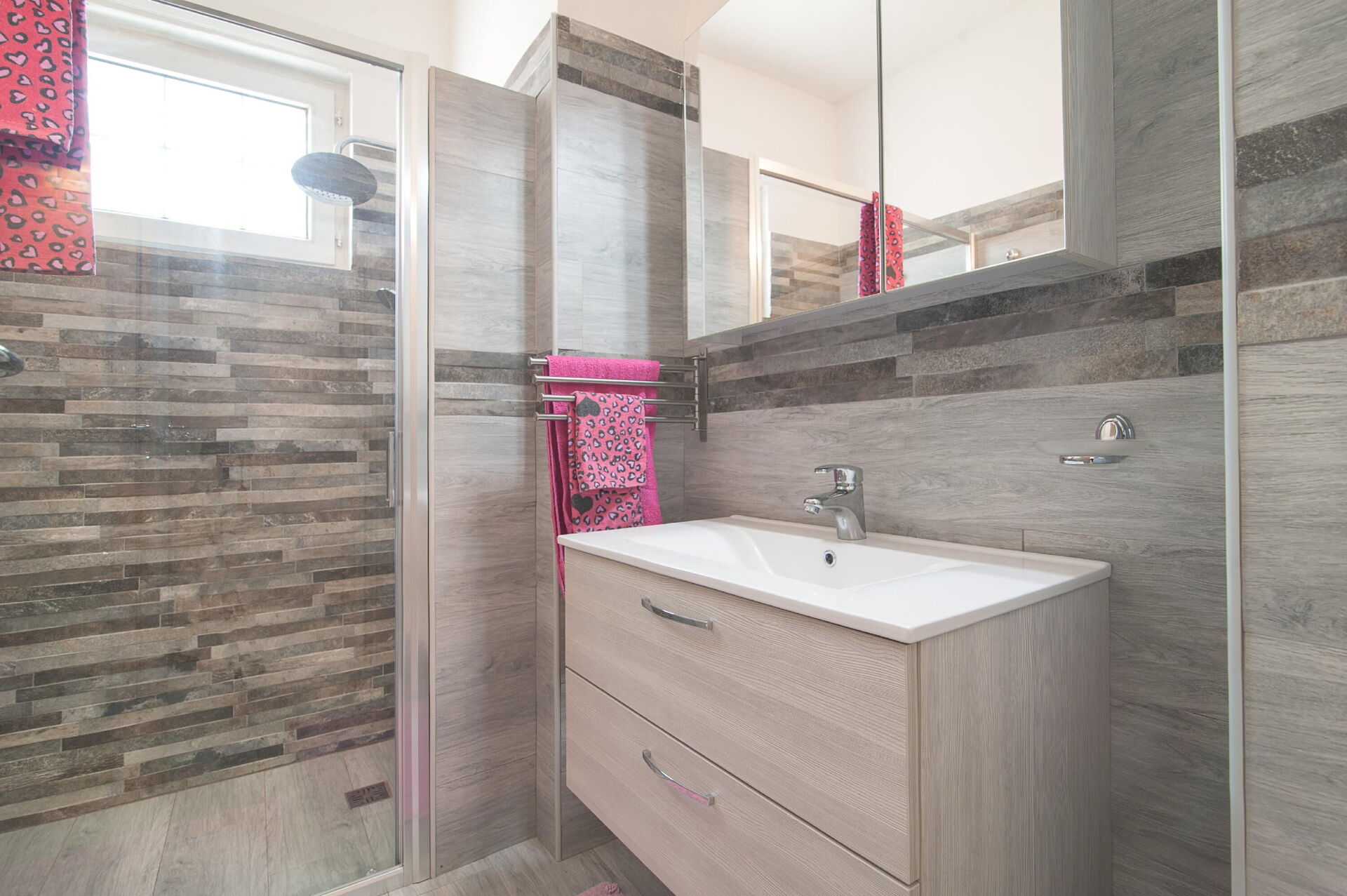 Rez-de-chaussée: séjour avec un canapé-lit double (supplémentaire sur demande), cuisine équipée, 2 chambres doubles, une chambre double avec canapé-lit à une place (supplémentaire sur demande), 2 salles de bains avec douche. Salle de bains extérieure avec douche.