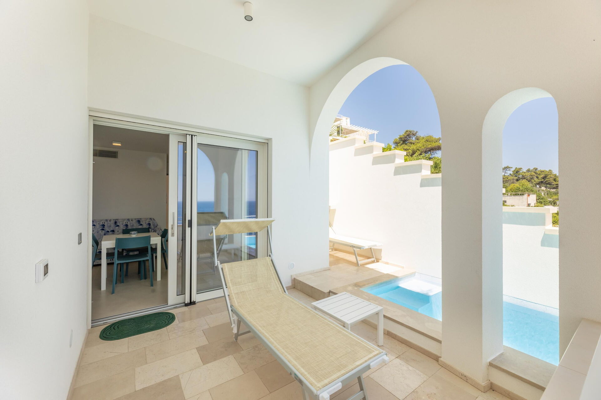 Marinaia Archi est un bel appartement avec piscine privée à louer pour des vacances, situé au cœur du Salento sur la côte orientale des Pouilles, à Marina di Marittima.
