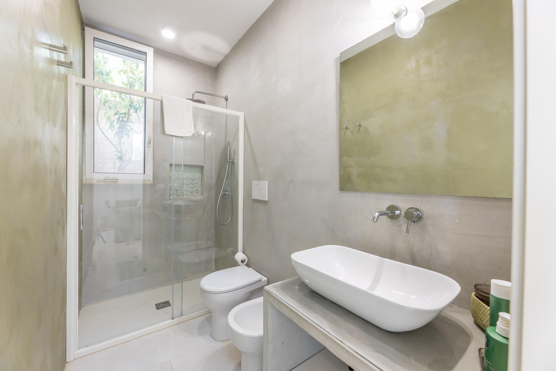 Troisième étage (par rapport au niveau de la rue): salon (air conditionné, TV) avec canapé-lit double, coin cuisine (plaque de cuisson, four, congélateur, réfrigérateur, lave-vaisselle, cafetière) et coin repas avec sortie sur la véranda, chambre double (air conditionné, moustiquaire), salle de bain avec douche.