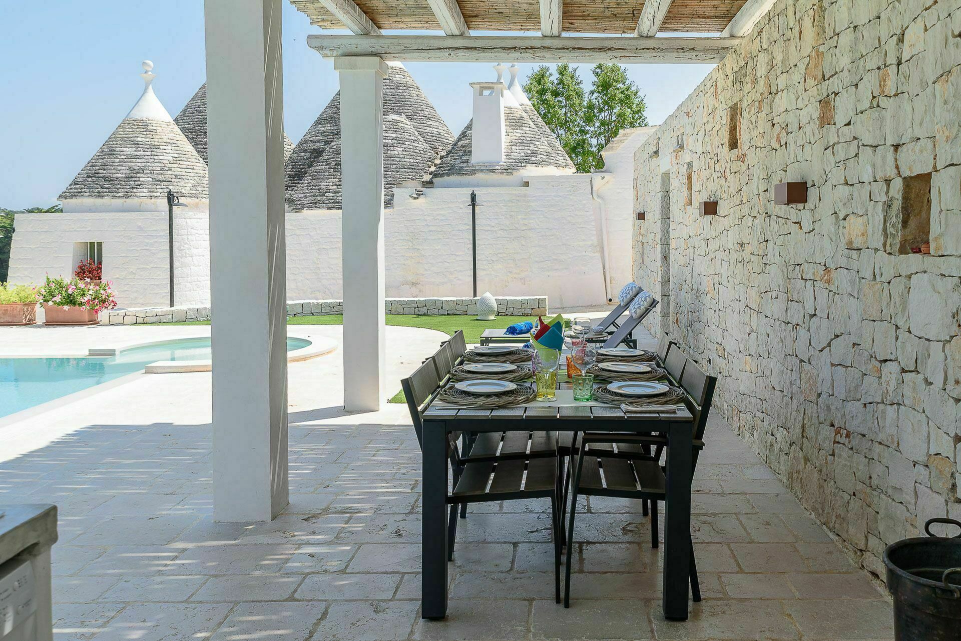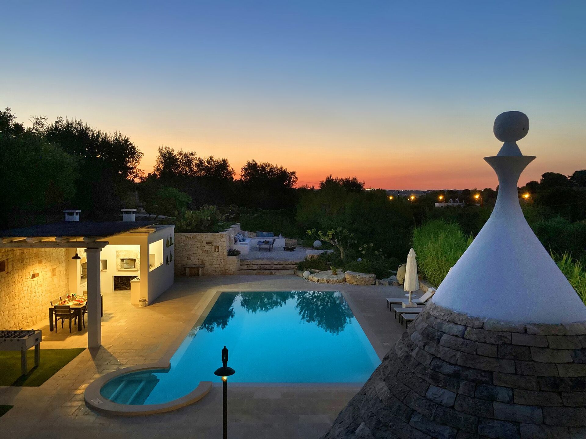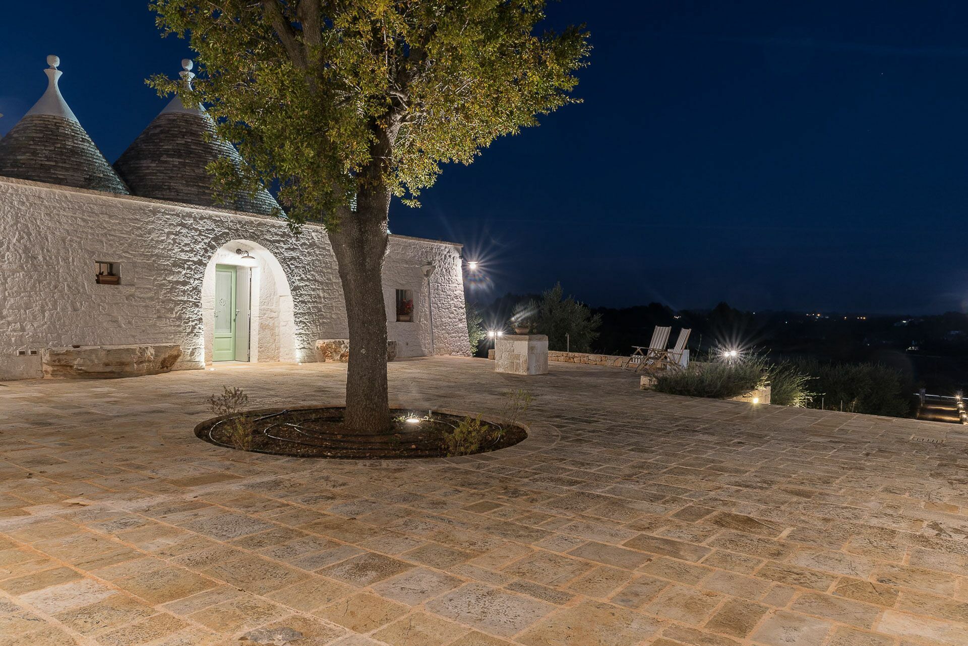 Trullo Oak est une magnifique villa en location vacances dans les Pouilles. Position dominante au cœur de la campagne des alentours de la ville de Martina Franca.