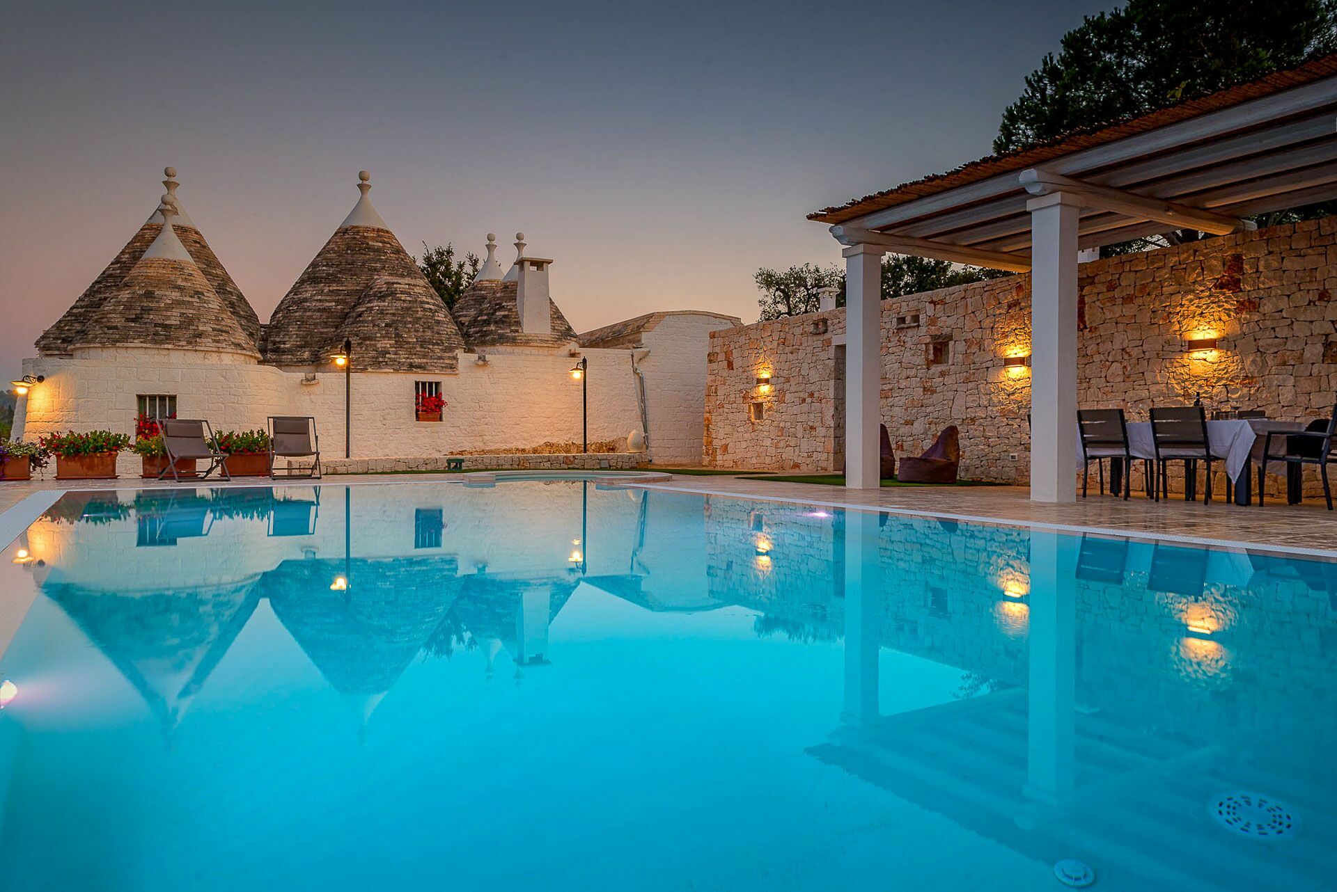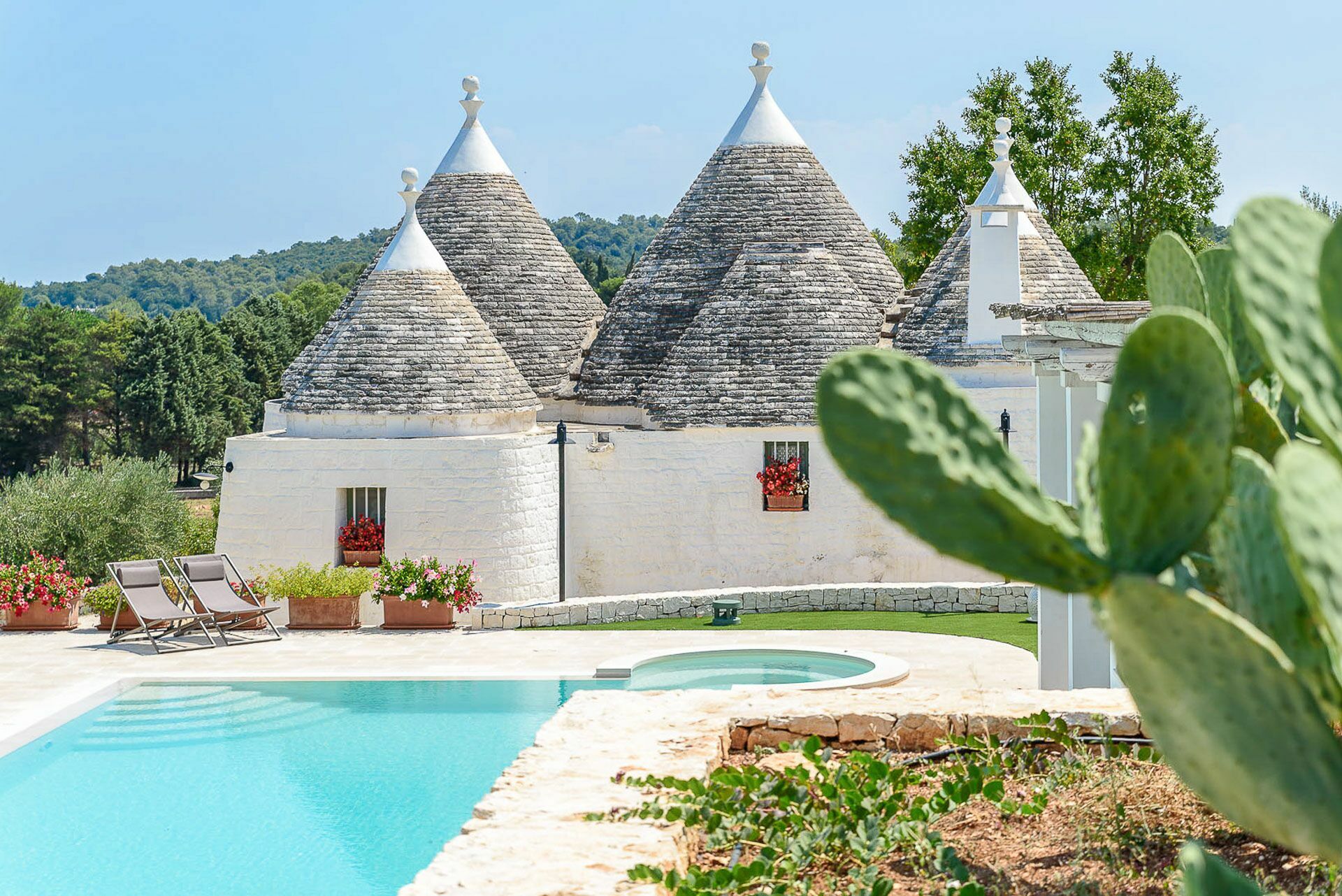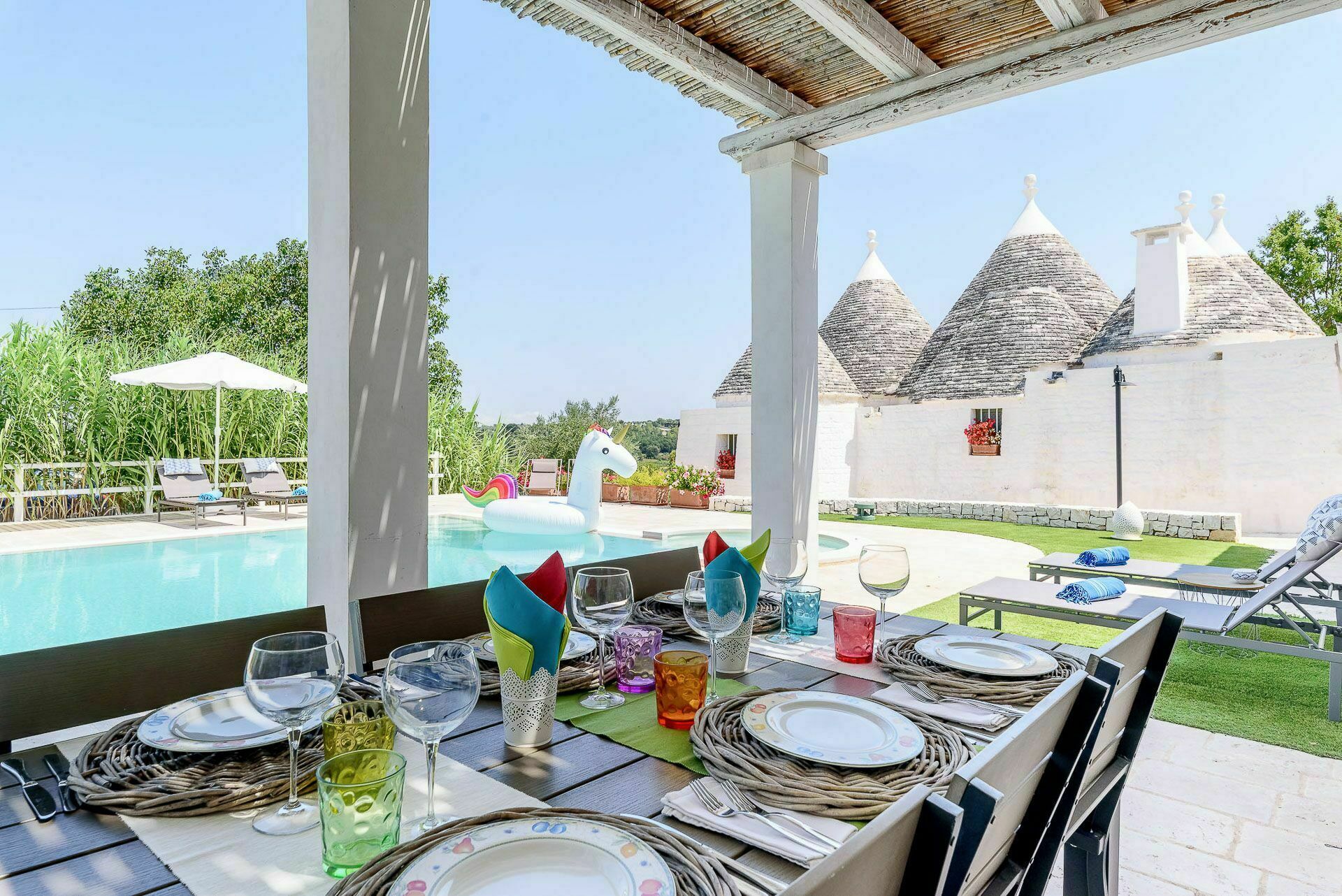 Trullo Oak est une magnifique villa en location vacances dans les Pouilles. Position dominante au cœur de la campagne des alentours de la ville de Martina Franca.