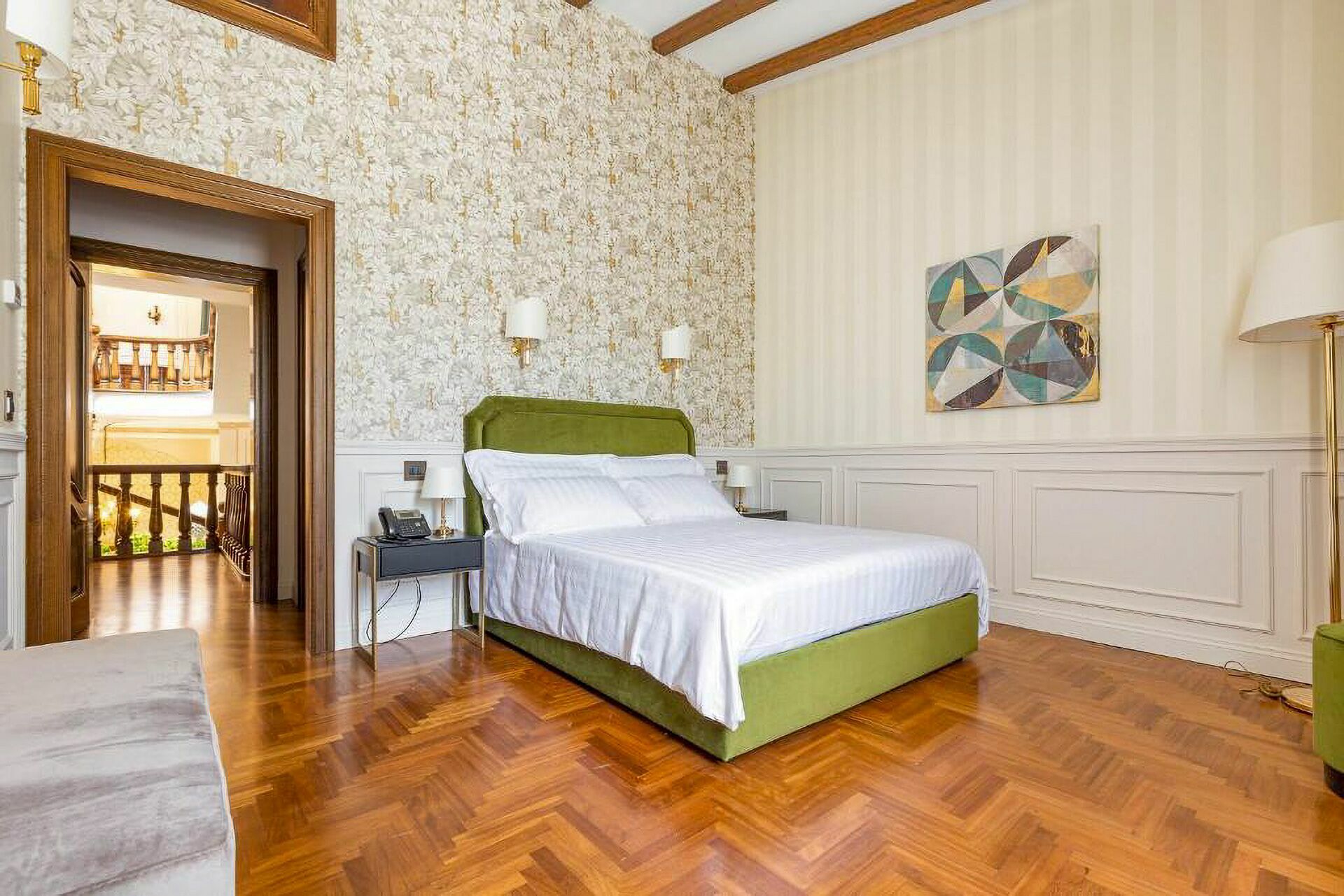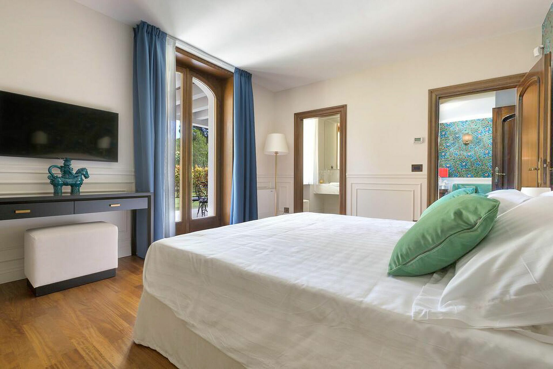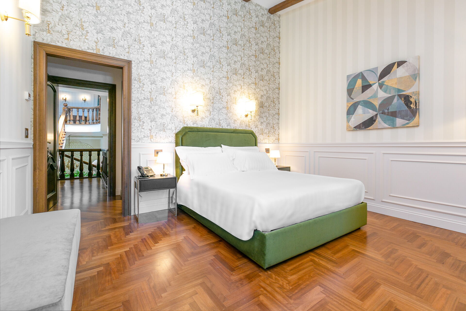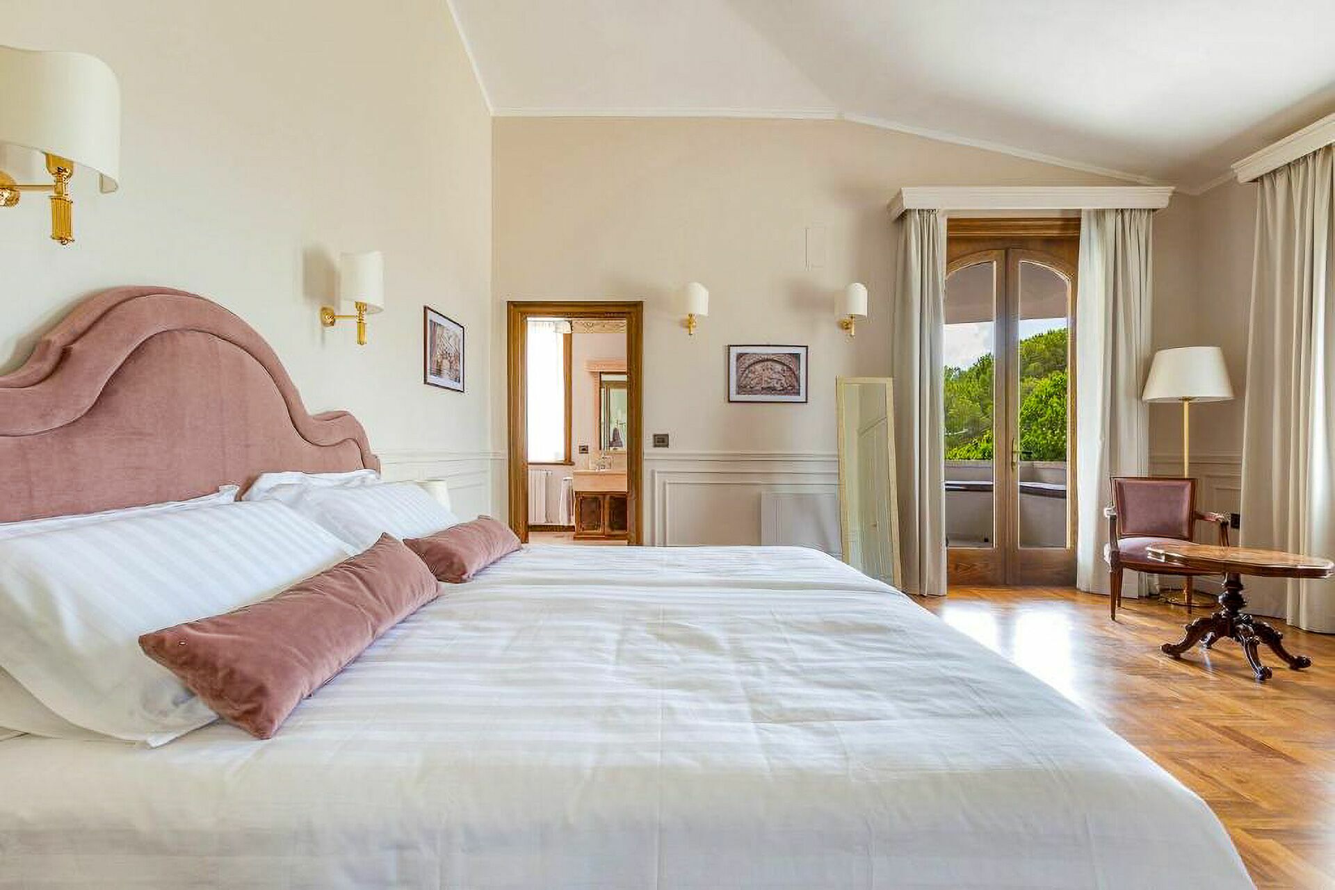Premier étage: une chambre double (lit super king size) avec salle de bains privée avec baignoire hydromassage et douche et accès à une terrasse privée, une chambre double (lit king size) avec salle de bains privée avec douche, une chambre double (lit king size) avec salle de bains privée avec douche et accès à une terrasse privée, une chambre double (lit super king size) avec salle de bains privée avec douche et accès à une terrasse privée.