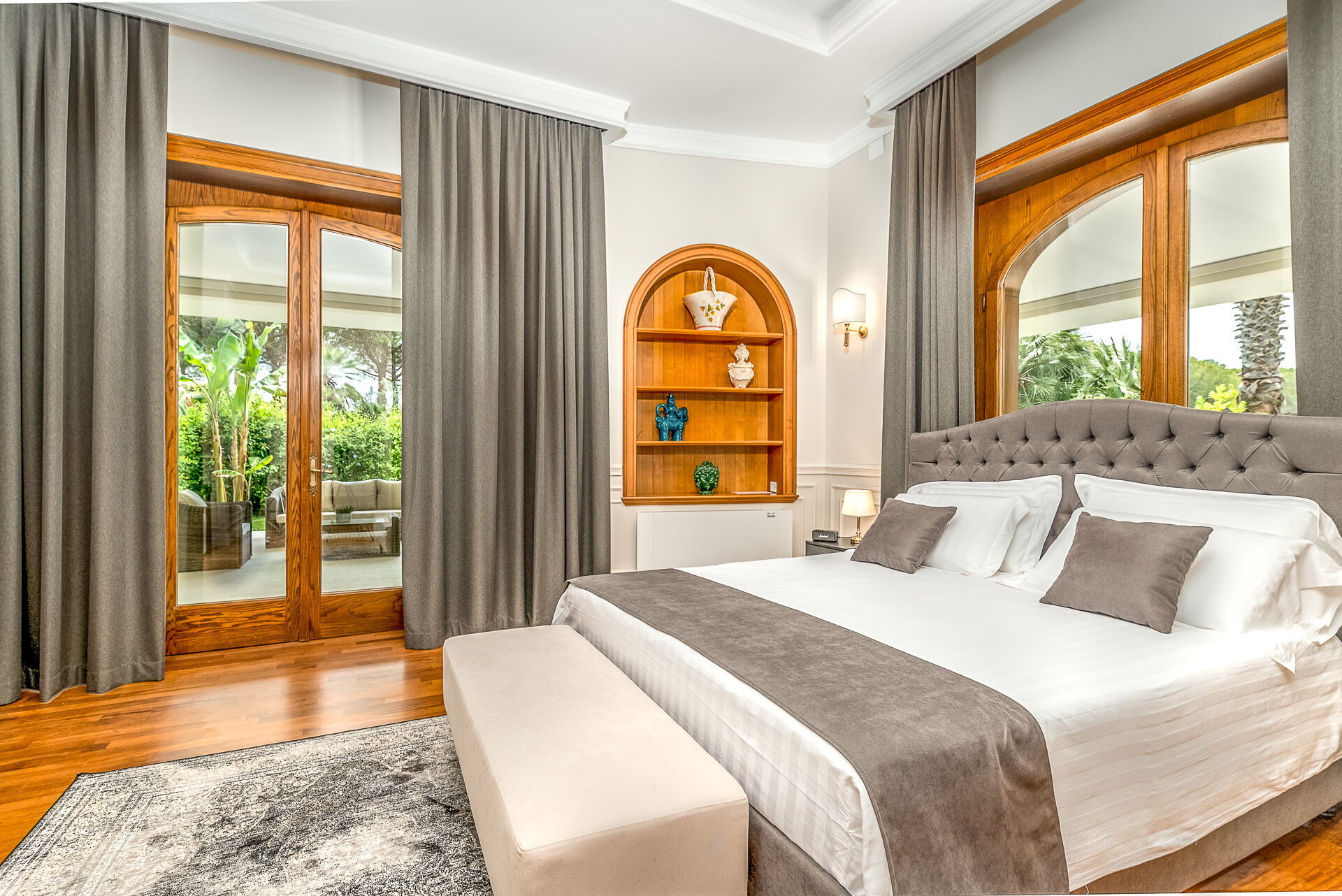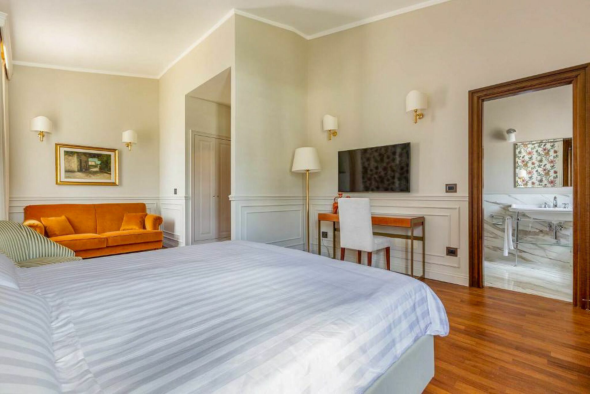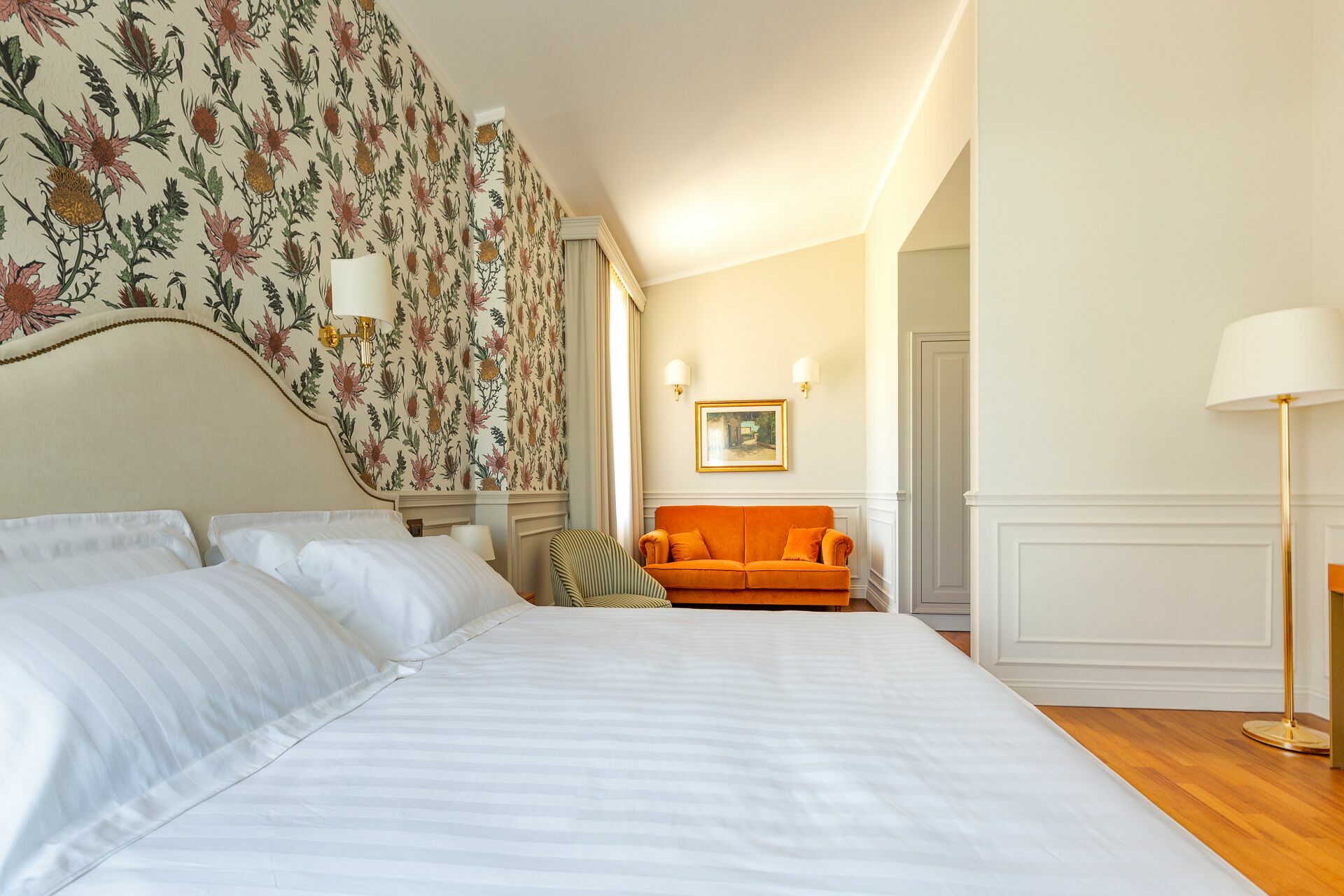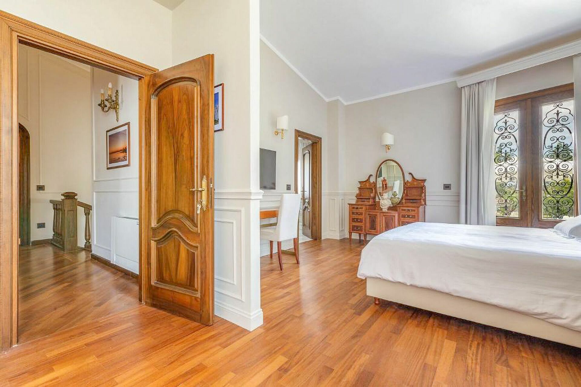 Premier étage: une chambre double (lit super king size) avec salle de bains privée avec baignoire hydromassage et douche et accès à une terrasse privée, une chambre double (lit king size) avec salle de bains privée avec douche, une chambre double (lit king size) avec salle de bains privée avec douche et accès à une terrasse privée, une chambre double (lit super king size) avec salle de bains privée avec douche et accès à une terrasse privée.