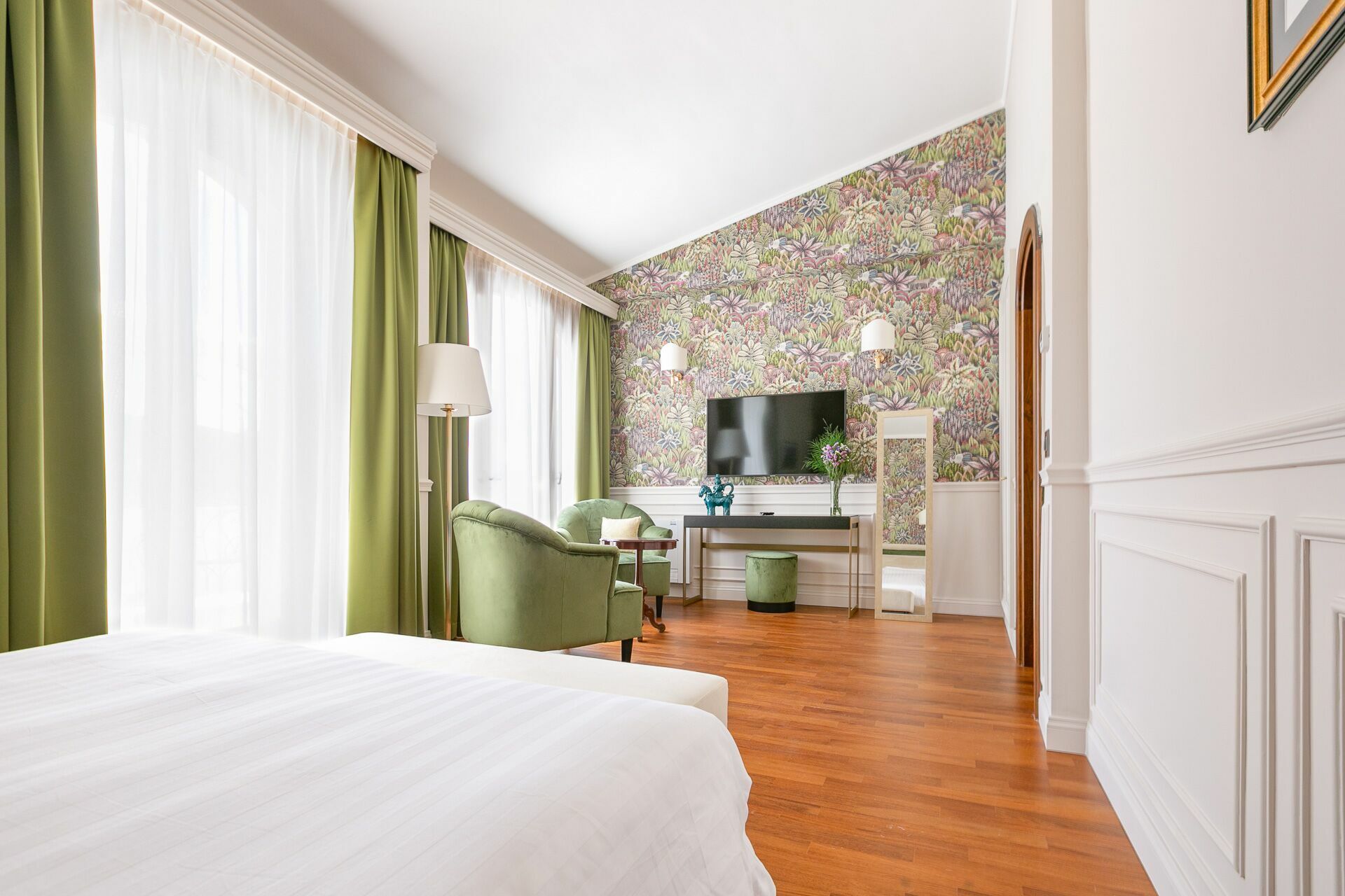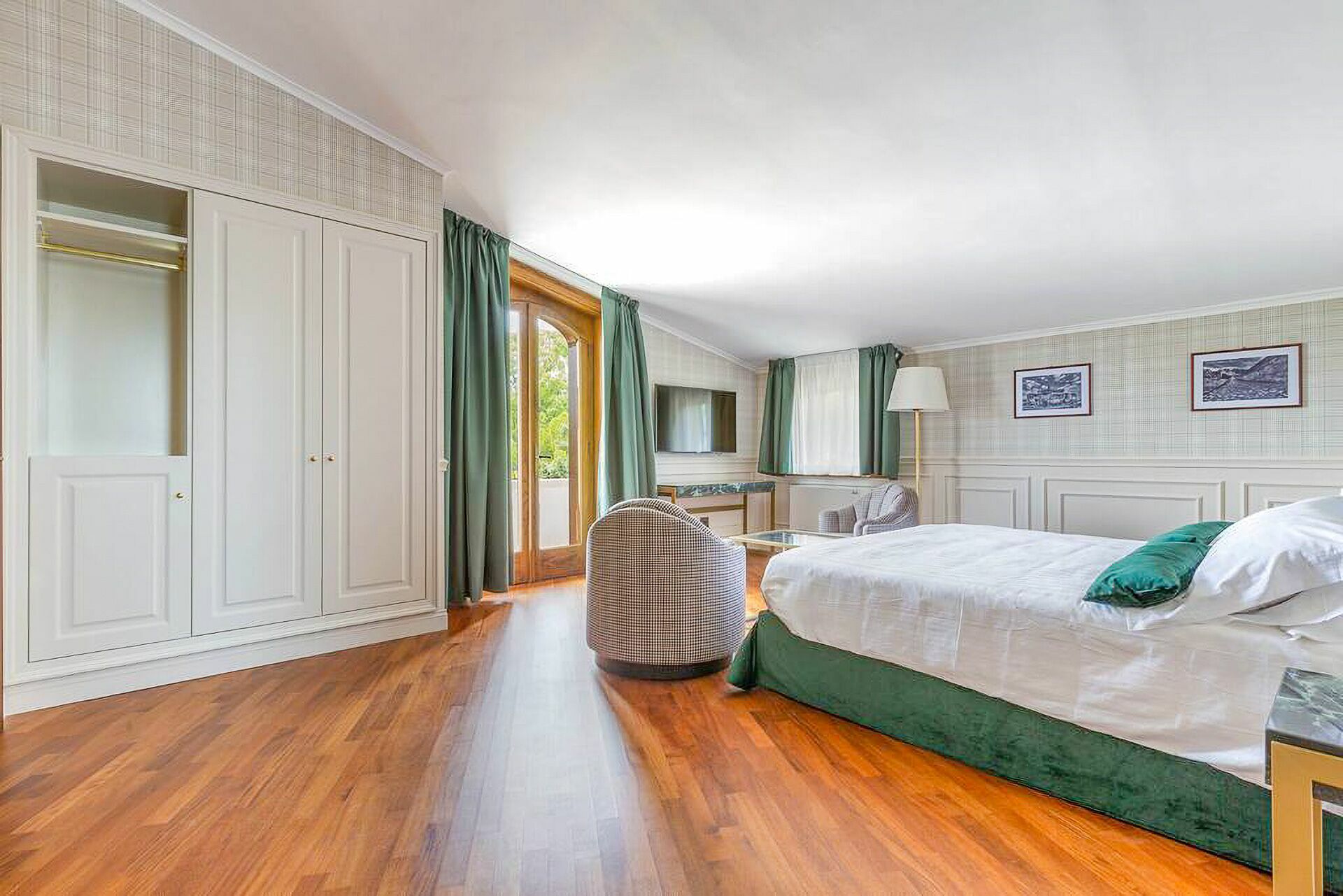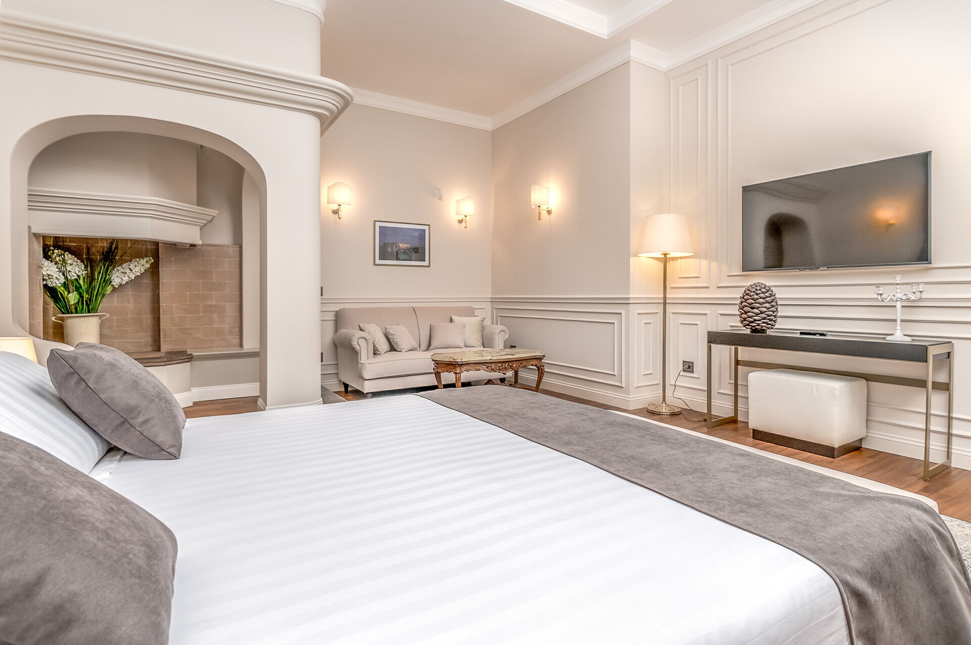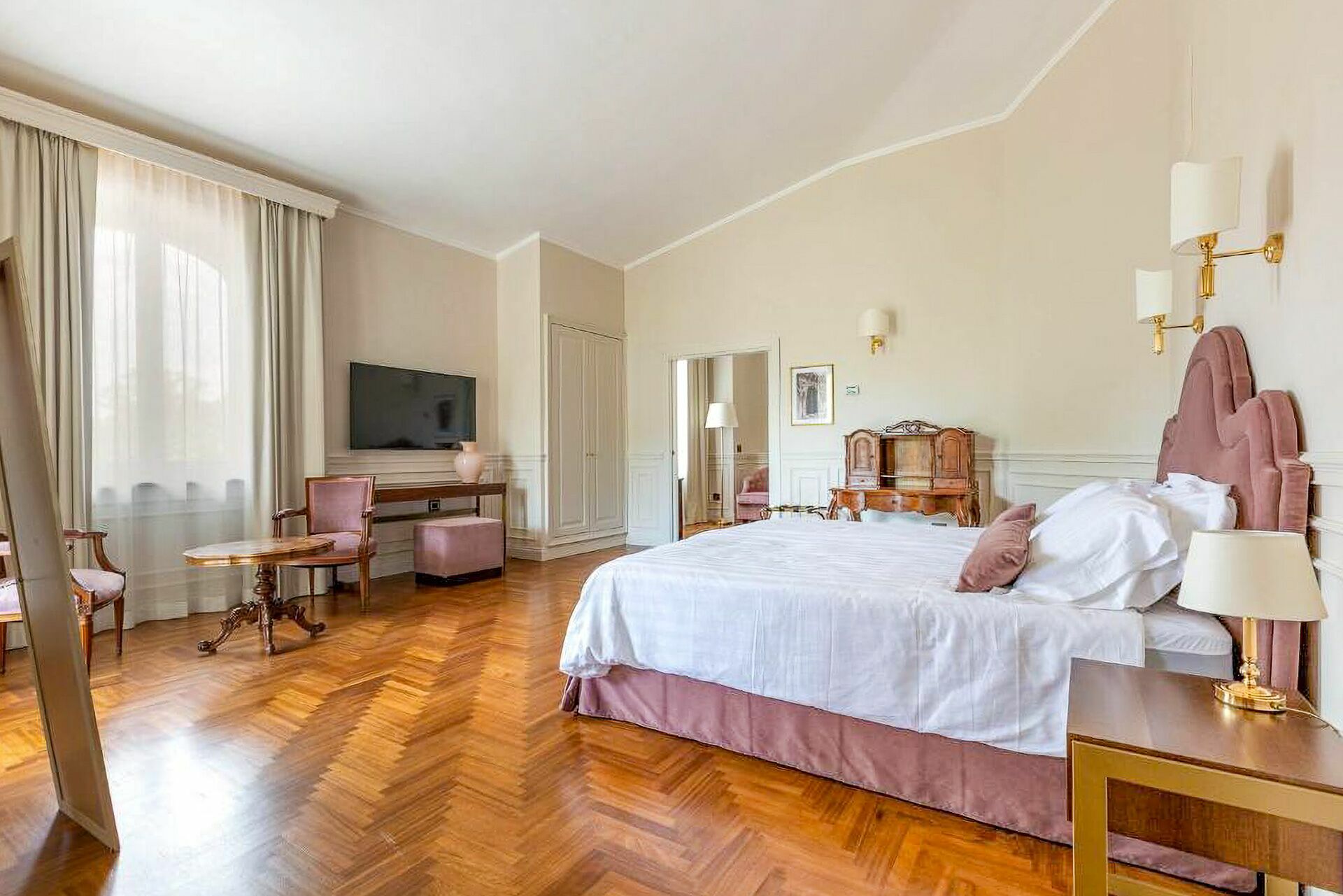 Premier étage: une chambre double (lit super king size) avec salle de bains privée avec baignoire hydromassage et douche et accès à une terrasse privée, une chambre double (lit king size) avec salle de bains privée avec douche, une chambre double (lit king size) avec salle de bains privée avec douche et accès à une terrasse privée, une chambre double (lit super king size) avec salle de bains privée avec douche et accès à une terrasse privée.