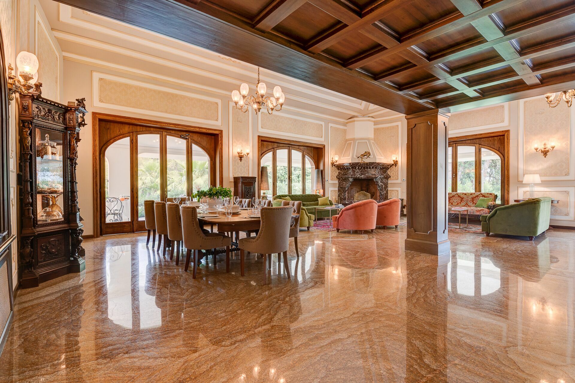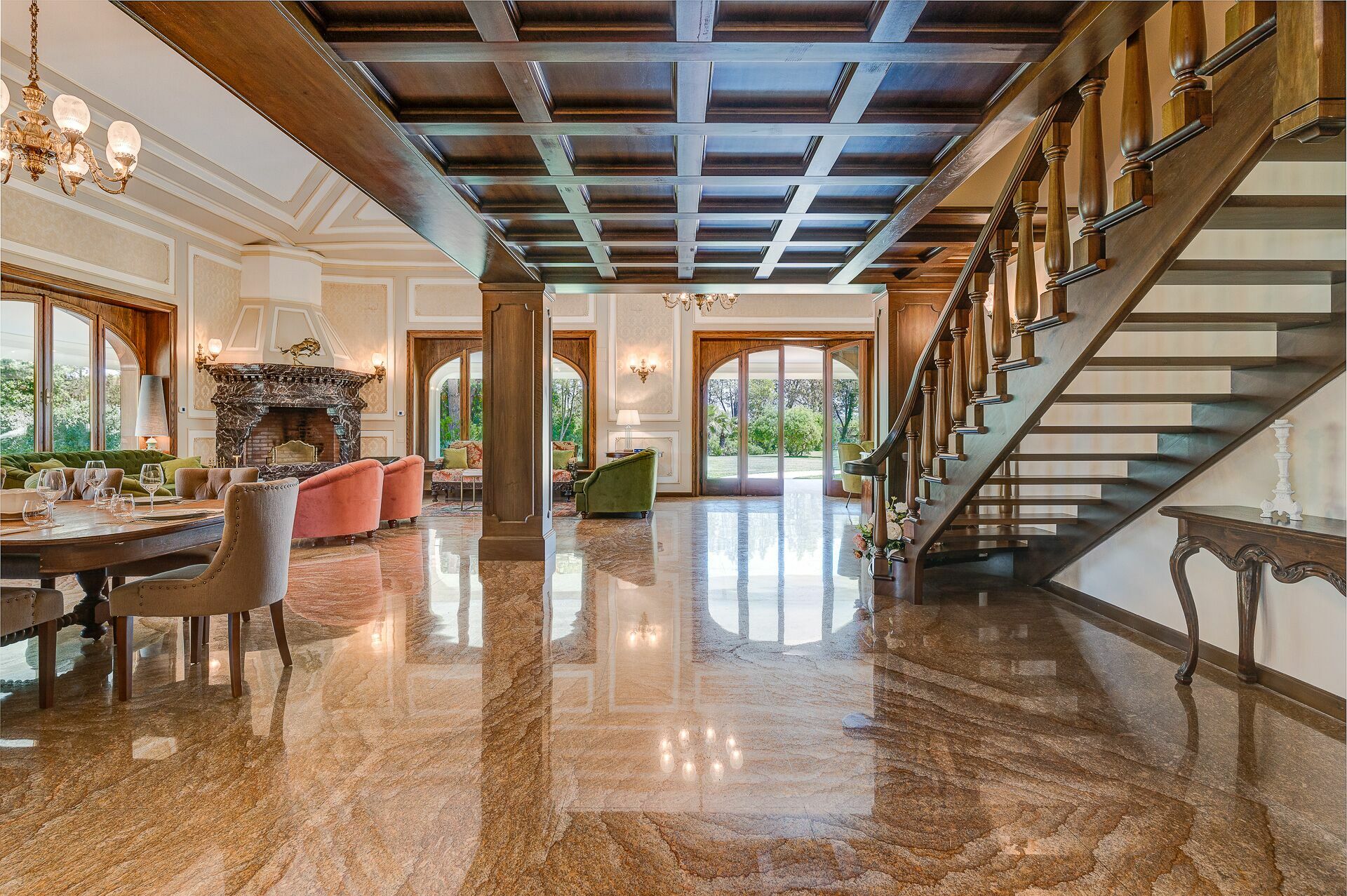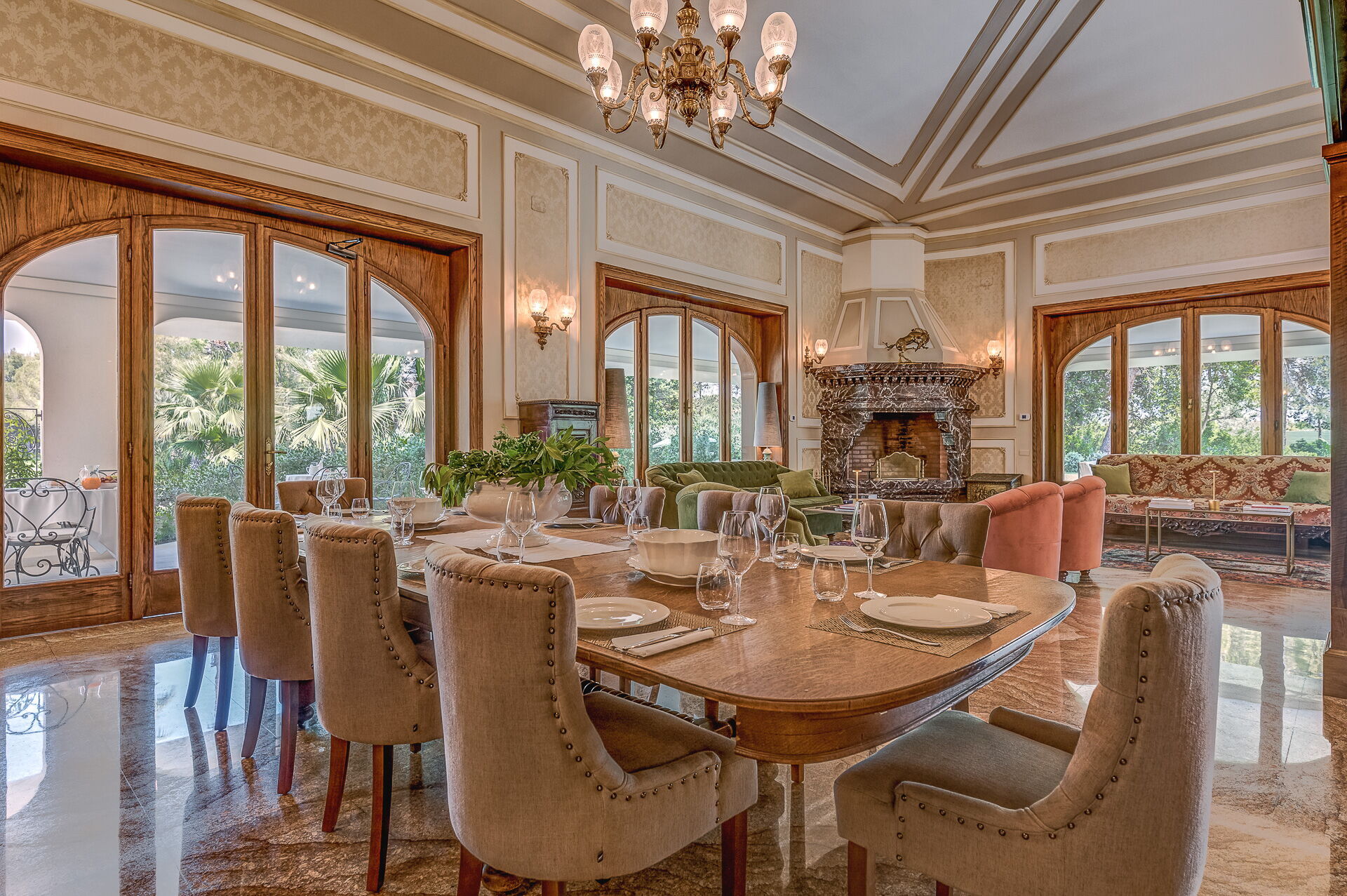 Grâce à 7 magnifiques chambres avec salle de bains, cette grande villa en location peut accueillir jusqu'à 14 personnes. Sur demande, 3 canapés-lits sont disponibles (seulement pour enfants de moins de 12 ans). Cette villa de prestige se développe sur 3 étages plus un sous-sol avec zone bien-être, salle gymnastique, taverne et salle billard.