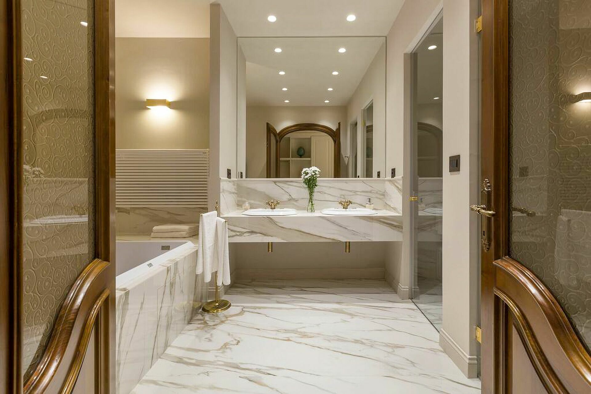 Rez-de-chaussée: entrée, grand séjour avec cheminée, cuisine principale, deuxième cuisine avec accès direct sur l'extérieur, une chambre double (lit king size) avec salle de bains privée avec douche et accès à une véranda privée avec accès au jardin privé, une chambre double (lit king size) avec salle de bains privée avec douche et baignoire hydromassage et accès à une véranda privée avec accès au jardin privé.