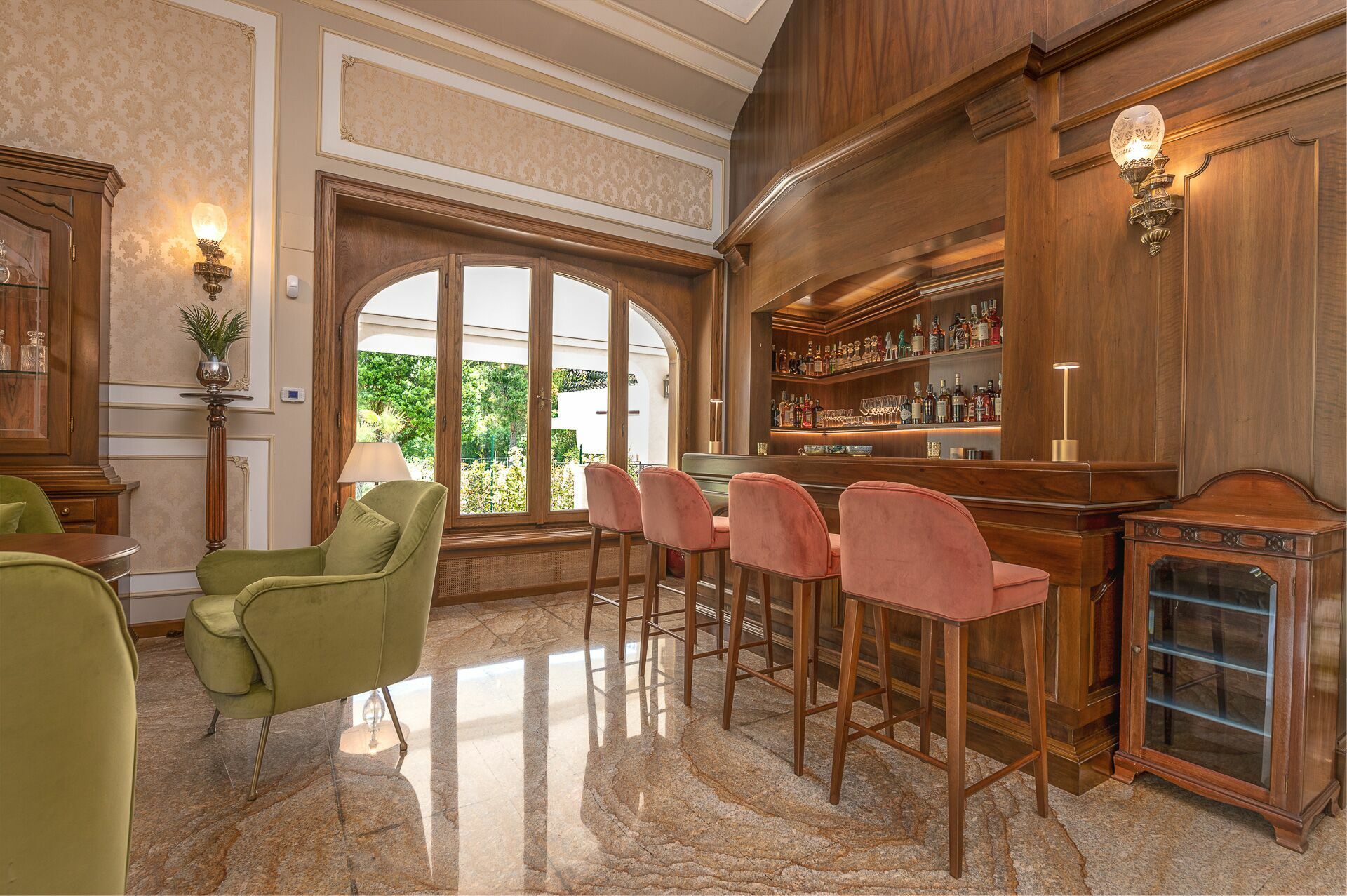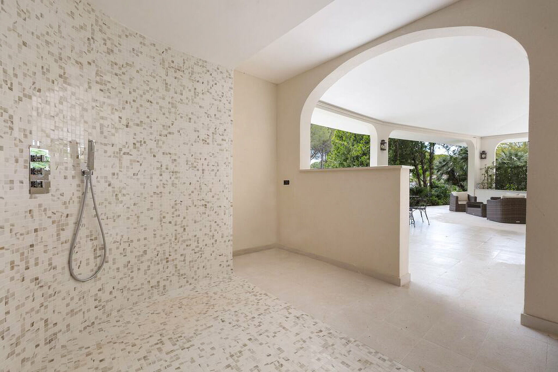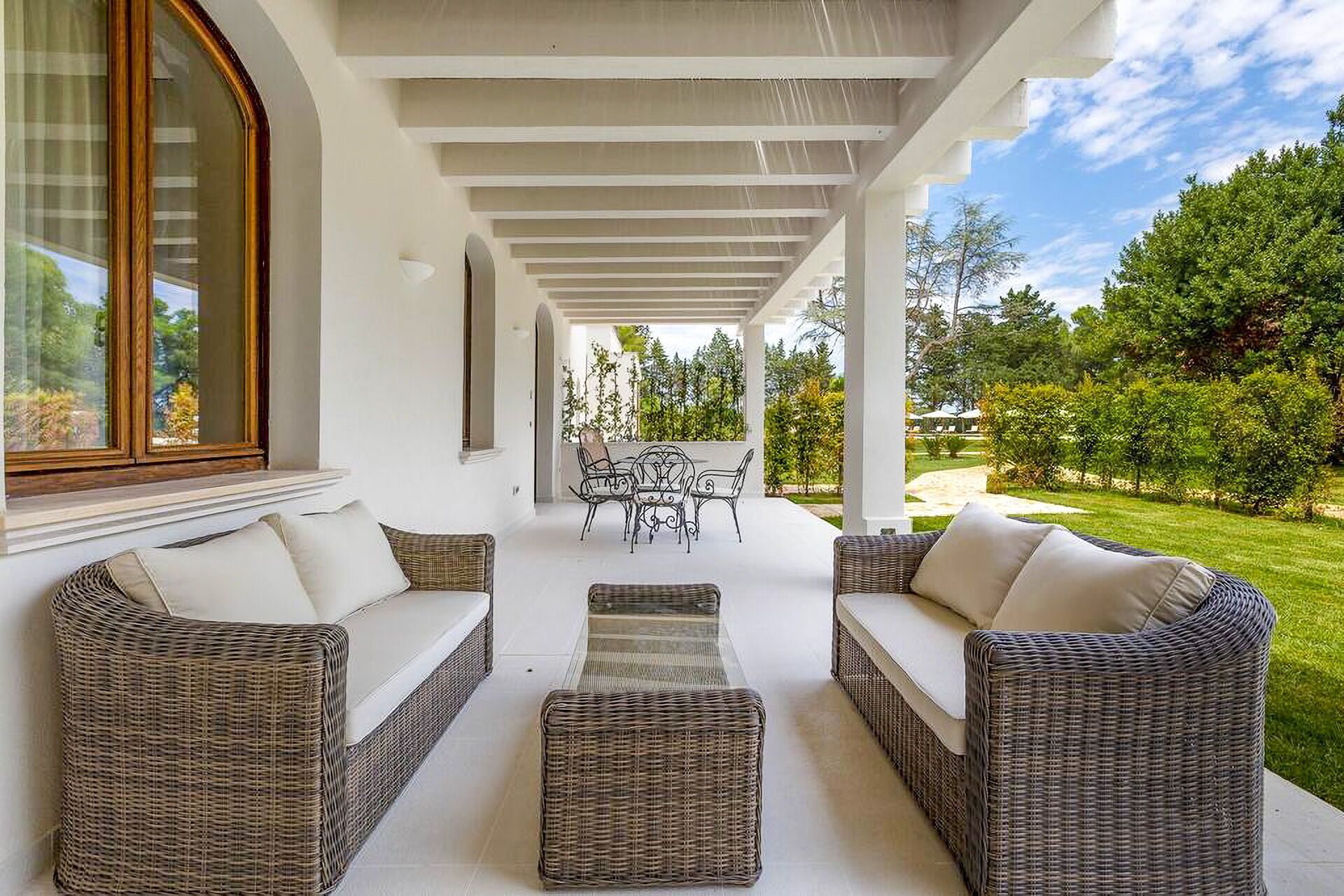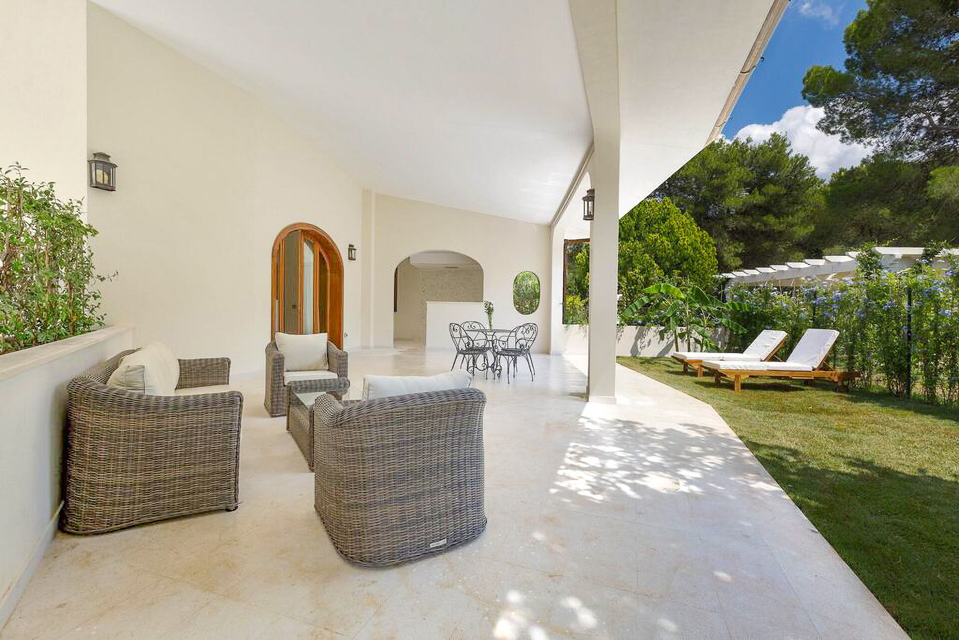 Ameublement intérieur recherché et pièces très spacieuses et lumineuses. Un grand jardin (env. 8000m2) clôturé entoure toute la propriété avec une beau gazon à l'anglaise, des arbres et plantes typiques du maquis méditerranéen. Un chemin conduit à une spectaculaire piscine privée. Différentes zones détente et zones repas sont disséminées dans le jardin, sous d'élégantes pergolas ou dans les vérandas aux côtés de la villa
