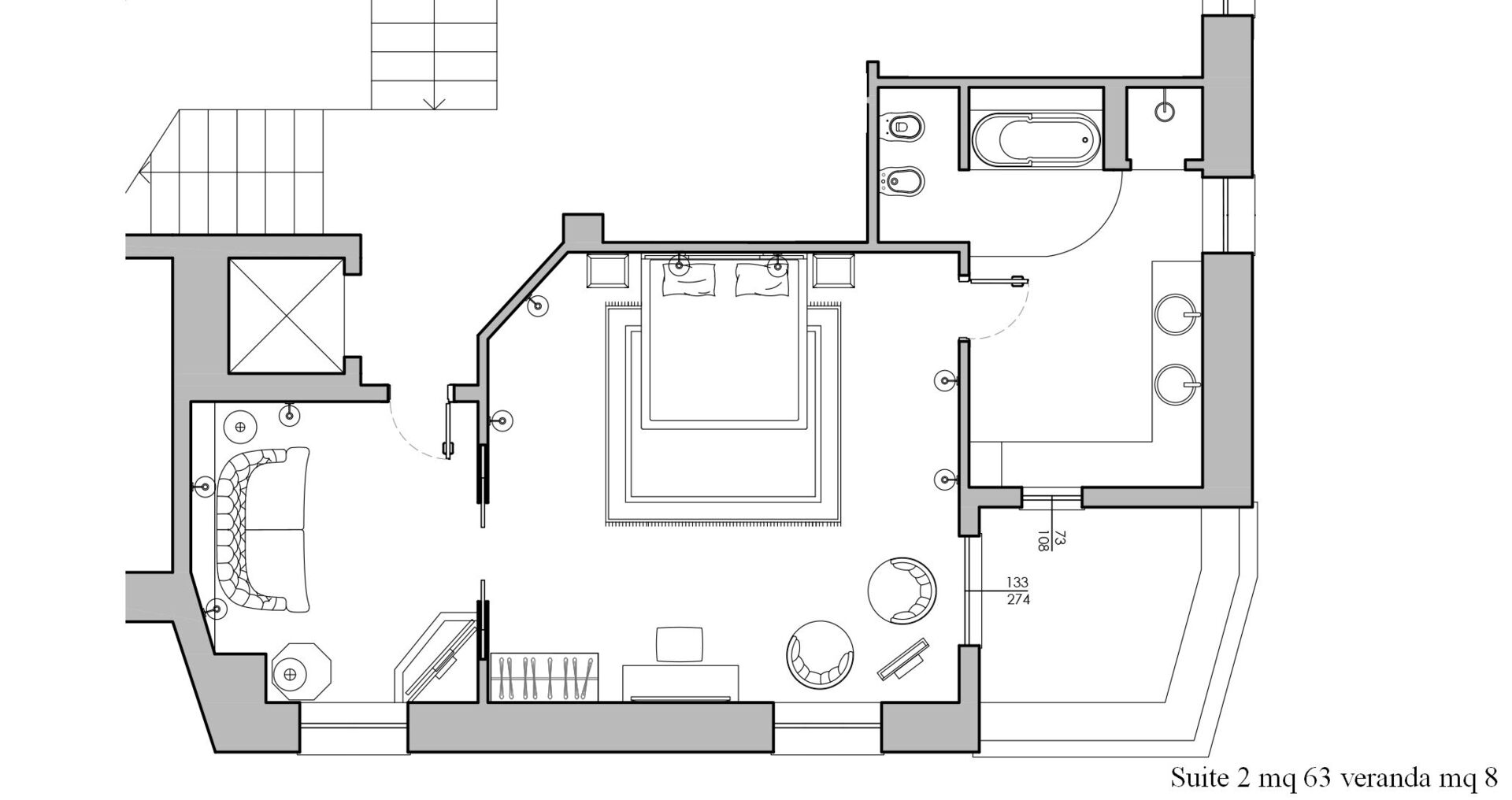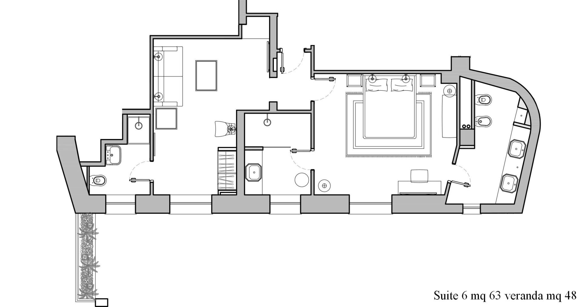 - 7 chambres à coucher avec salle de bains privée et une salle de bains de service