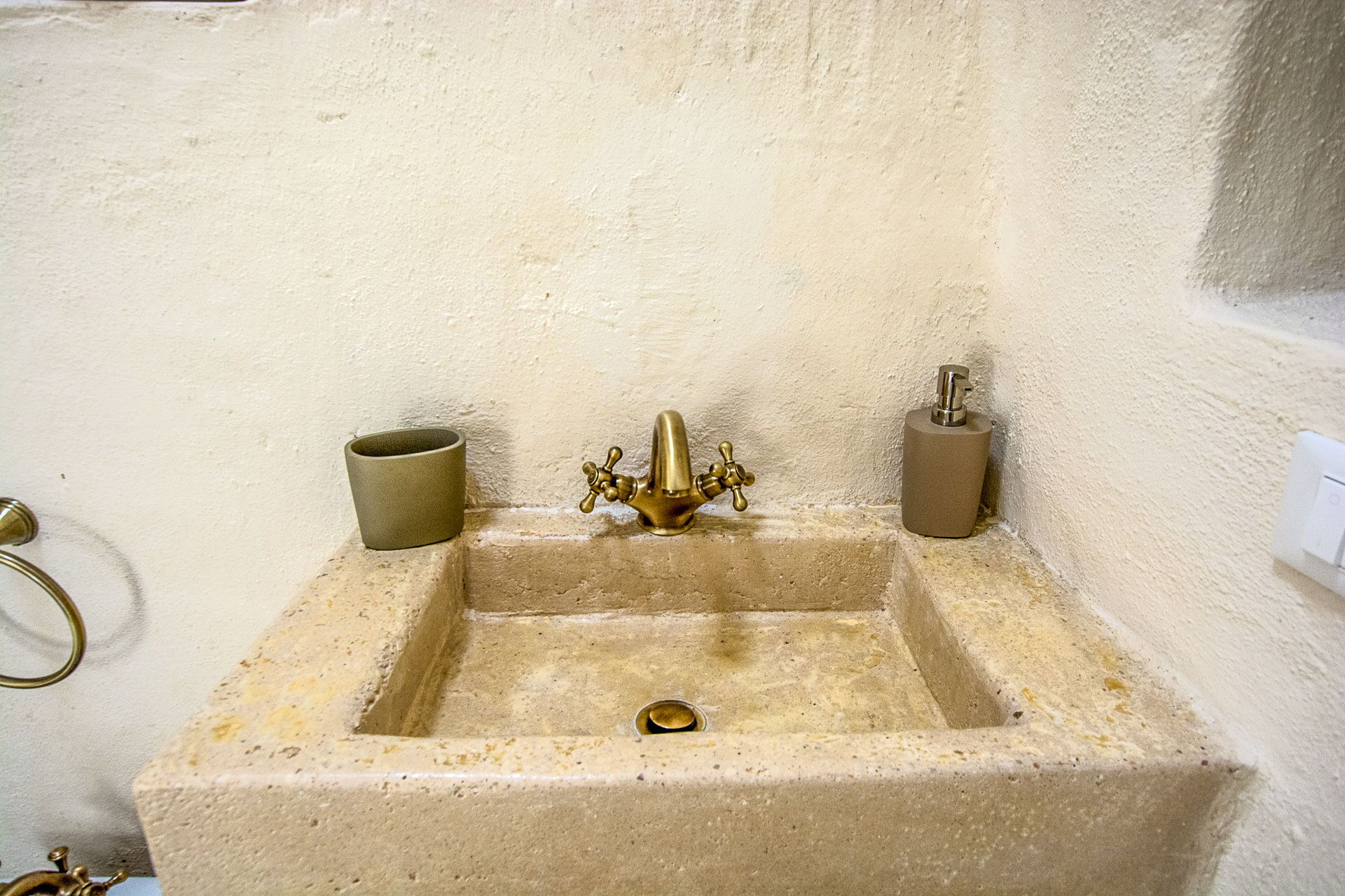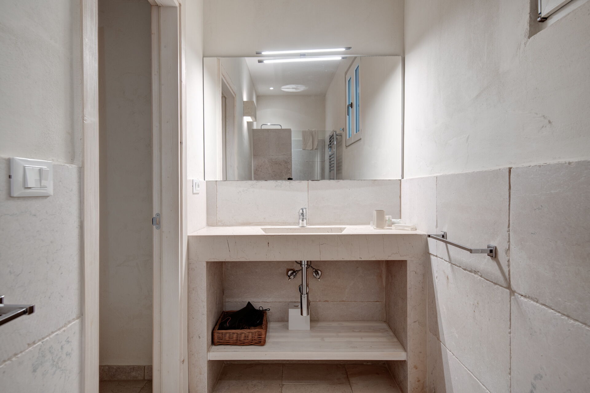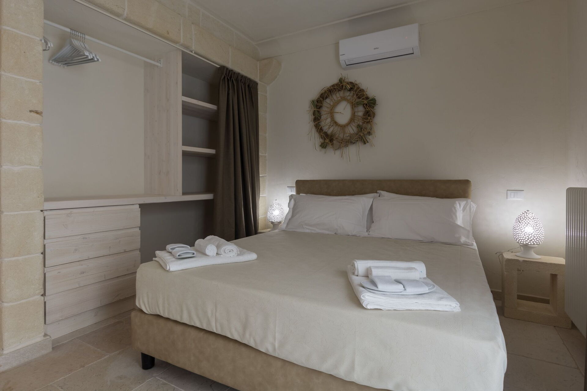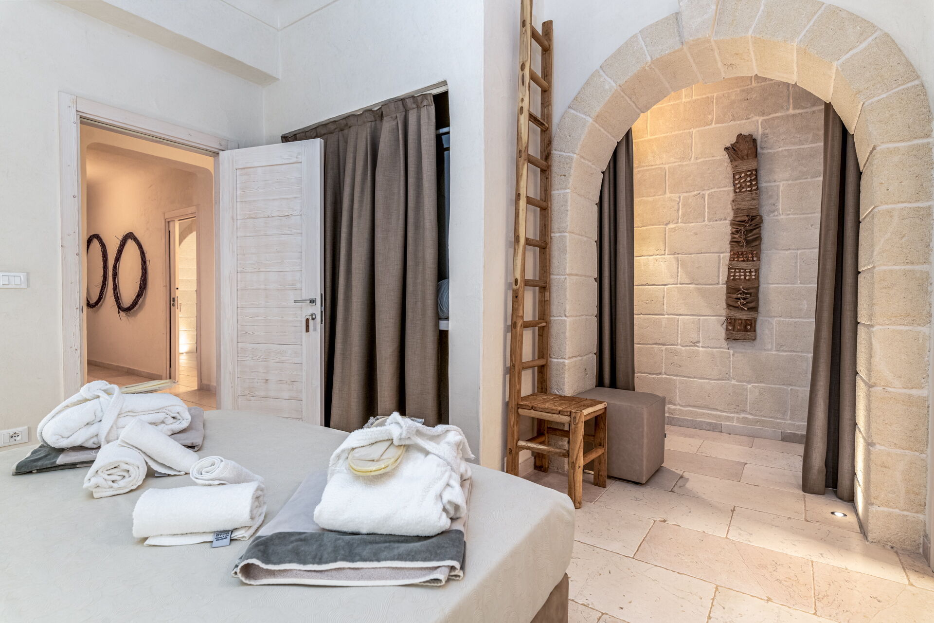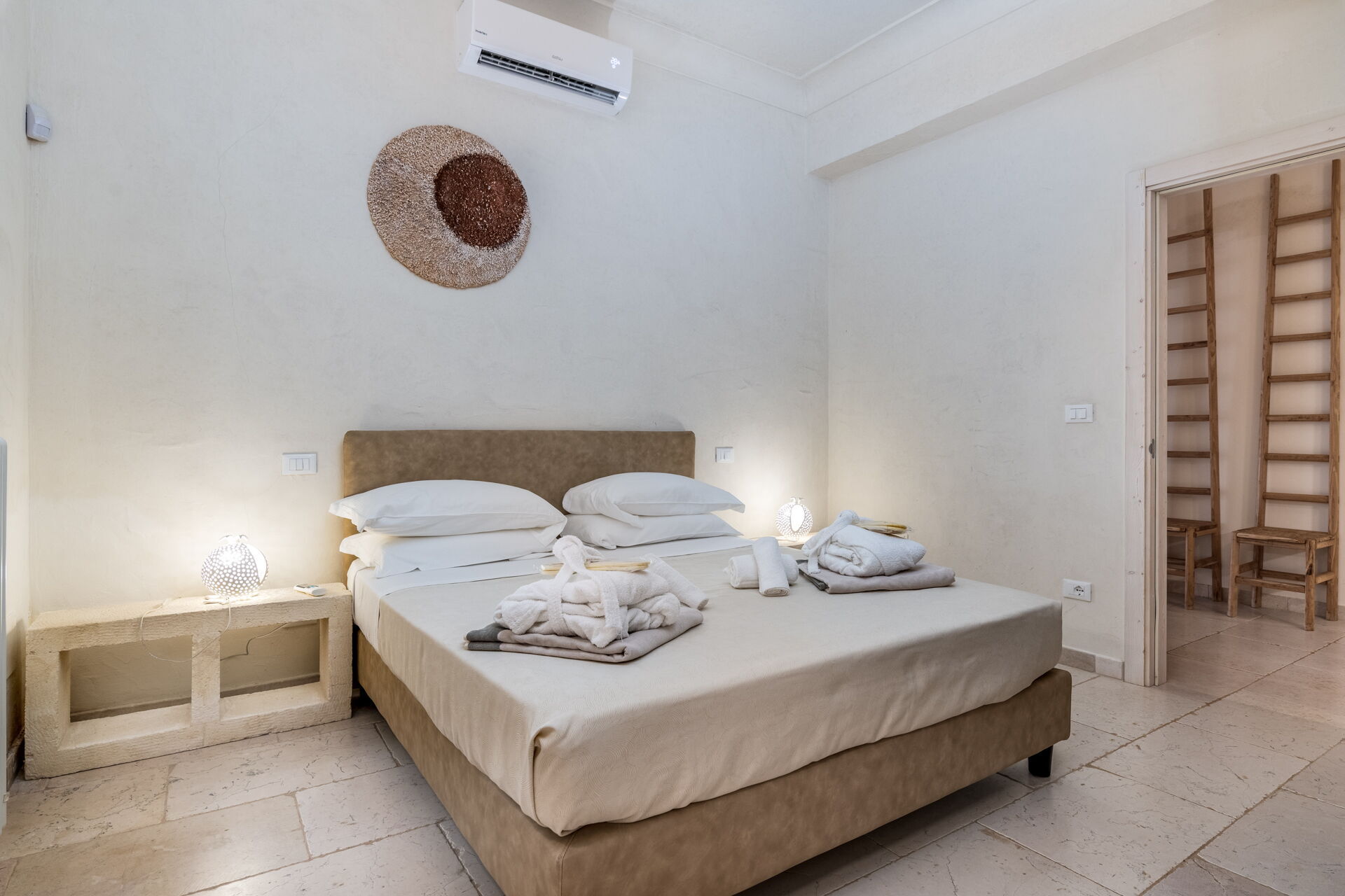 Grâce aux 7 chambres situées dans le corps principal de cette majestueuse villa ainsi qu’aux chambres situées dans les trulli en pierre adjacents, la résidence Corte dei Messapi peut accueillir jusqu'à 16 personnes. Les intérieurs sont conçus dans le style typique des Pouilles: un mélange de pierres, d'arches, de couleurs douces et de mobilier artisanal permettra aux hôtes de vivre une expérience inoubliable.